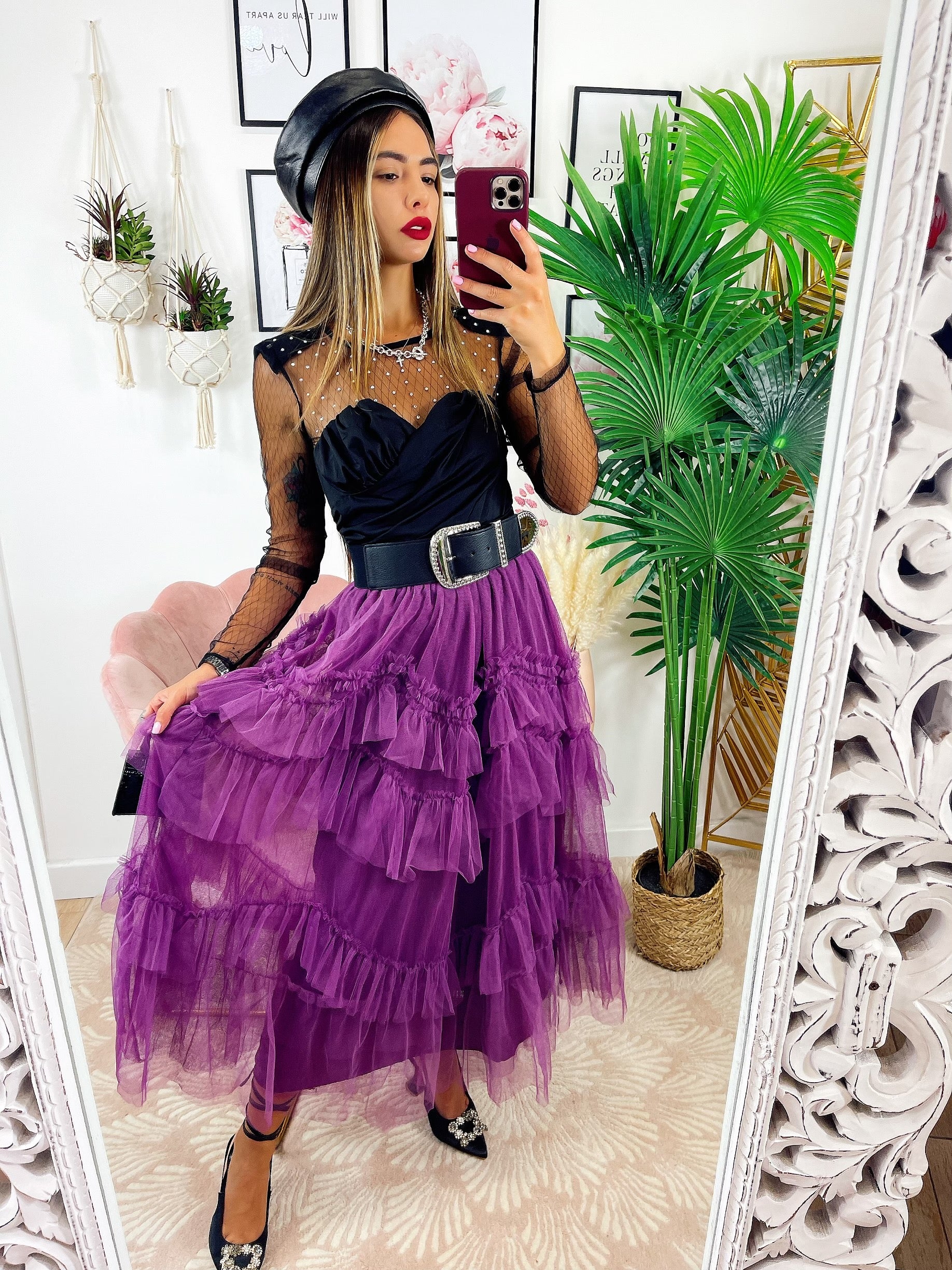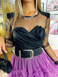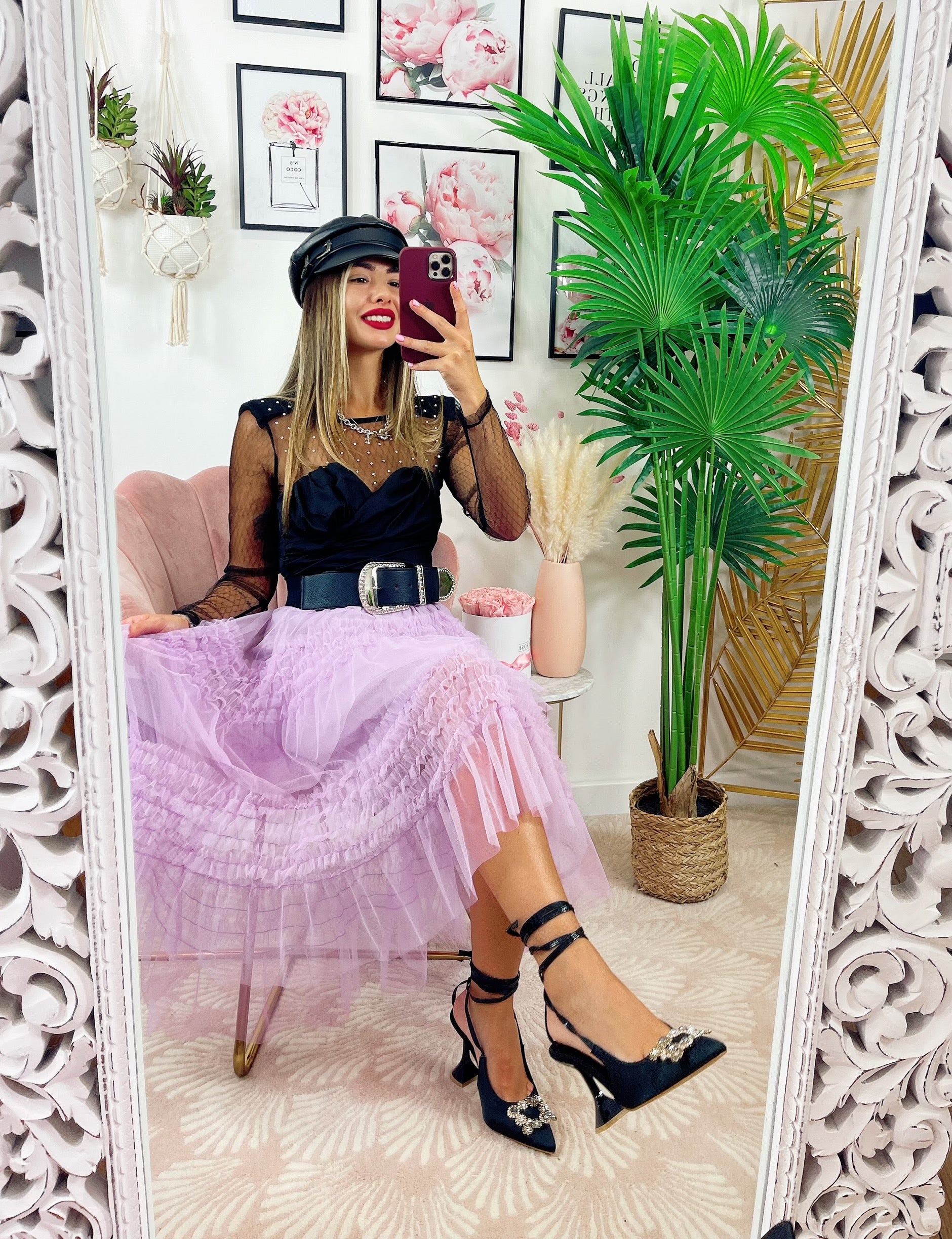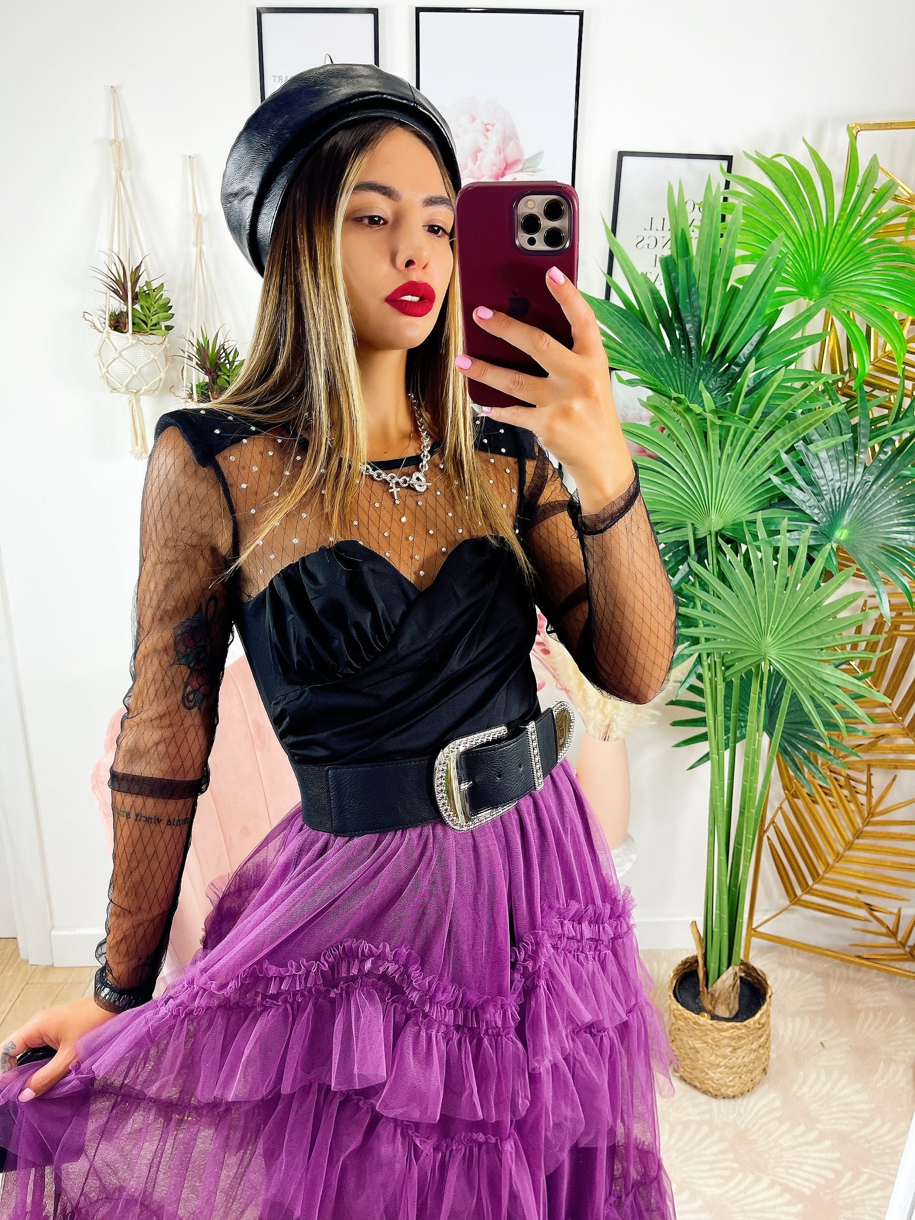 Body z siateczki i bardzo delikatnego brokatu z elastycznej tkaniny bez miseczek.