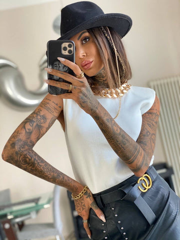Tank top z łańcuszkiem ORAZ zaokrąglonymi ramiączkami, długość do paska.