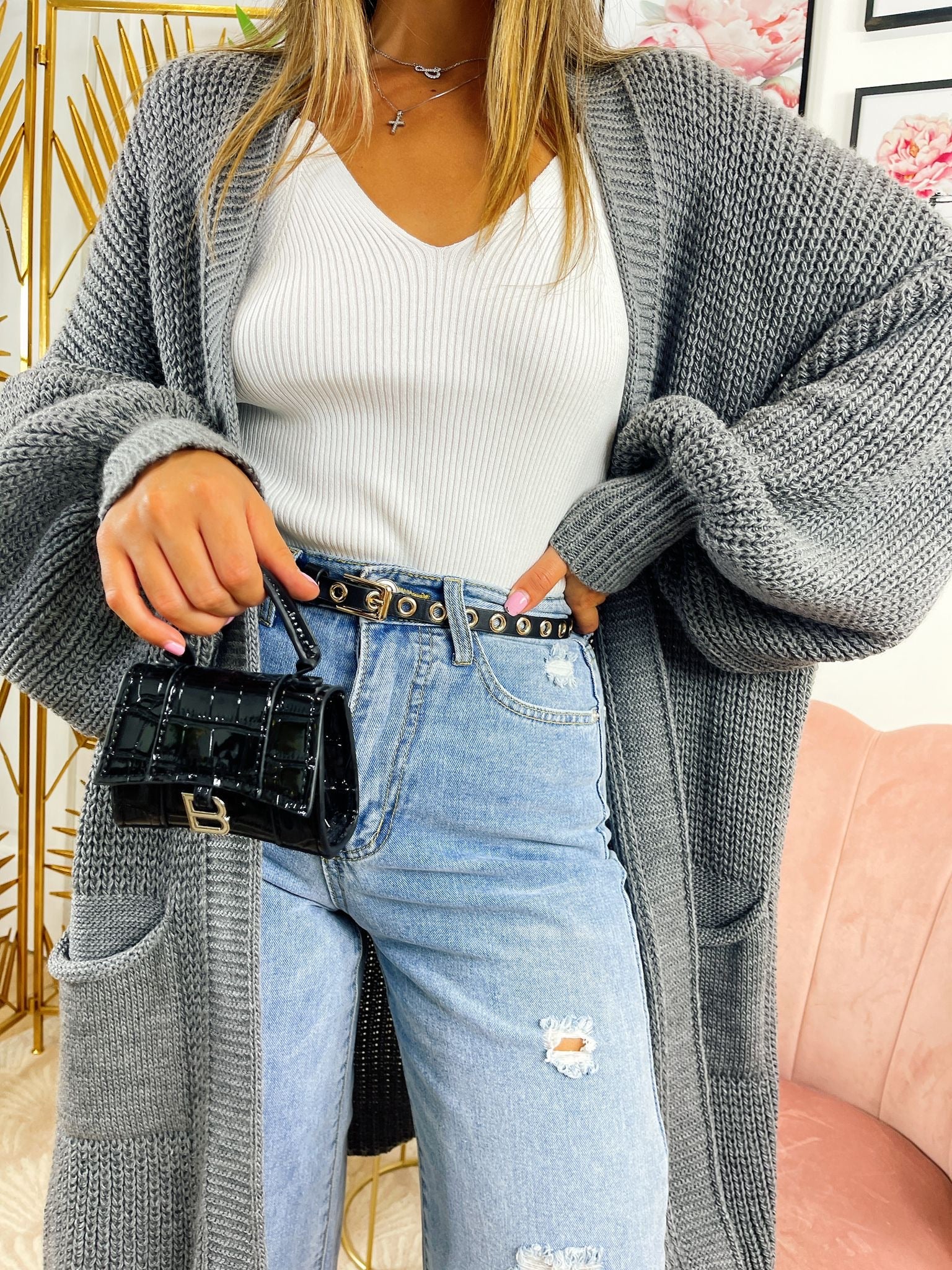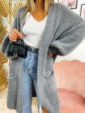 Szary długi kardigan