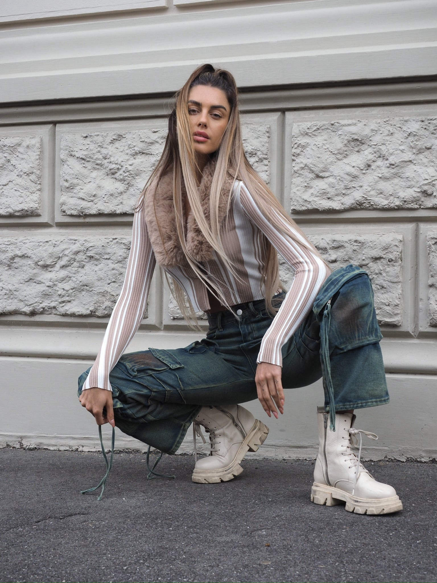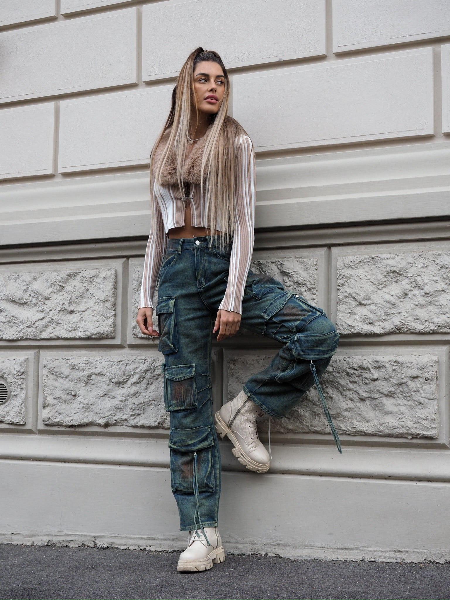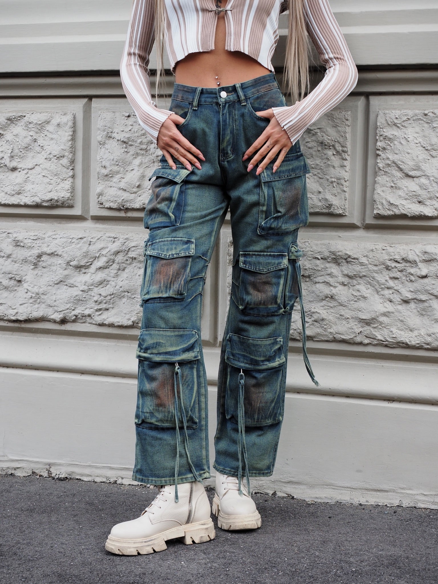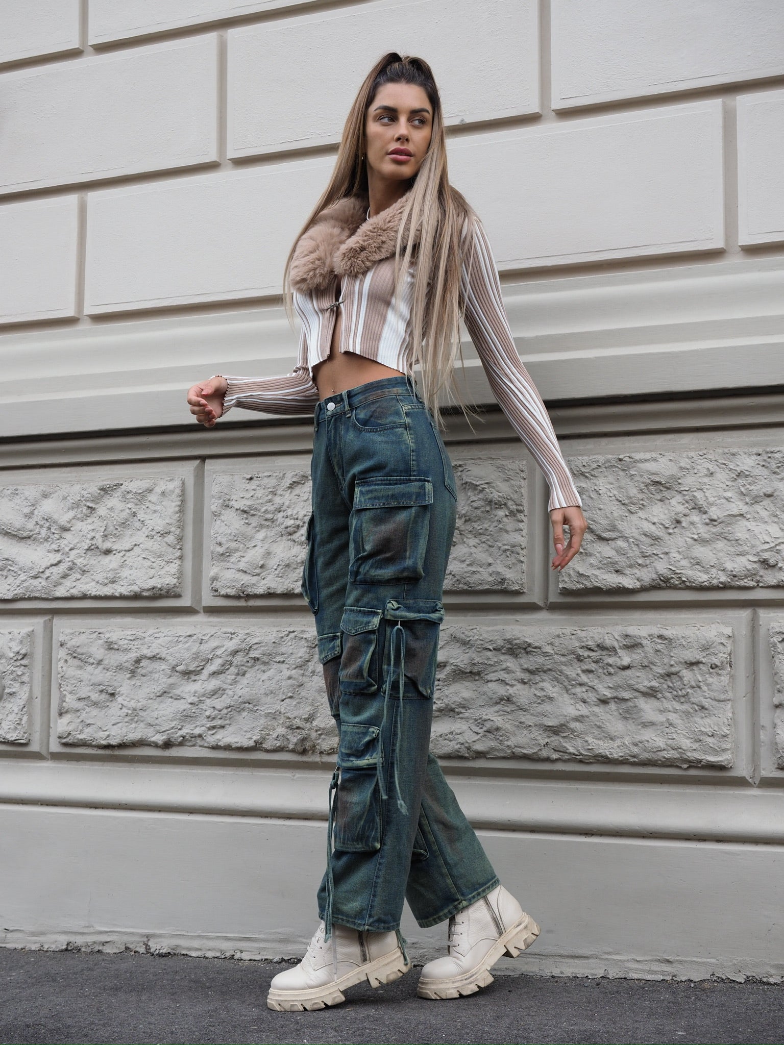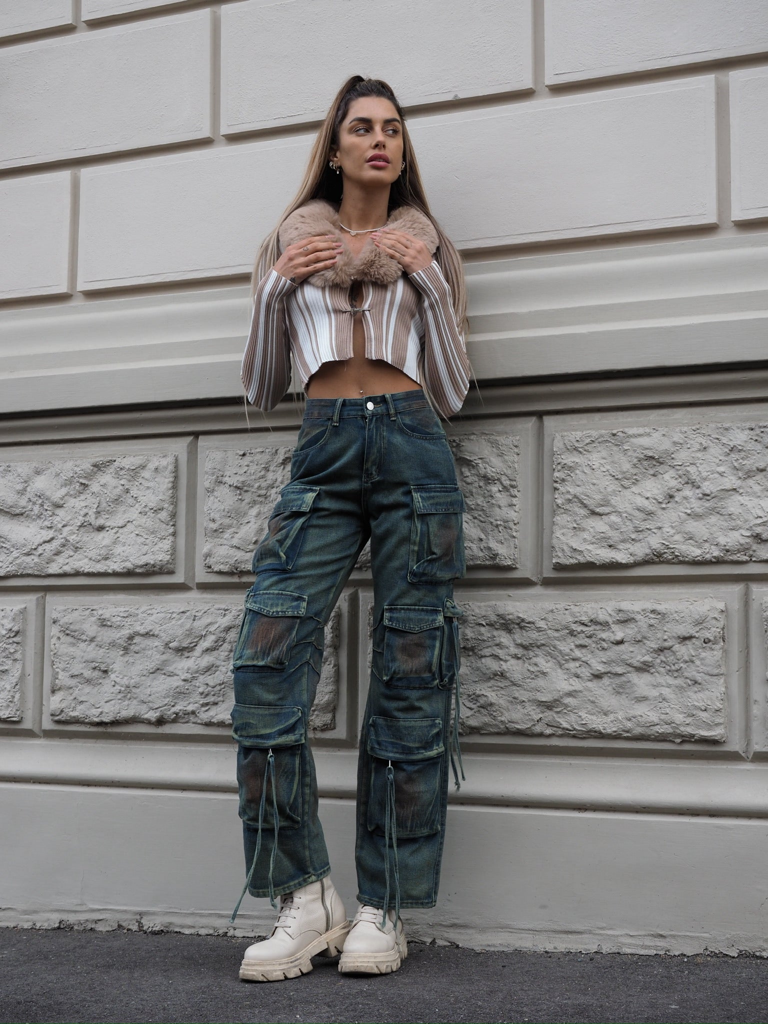 Cargo in tessuto non elasticizzato. Maxi tasconi e gamba ampia.