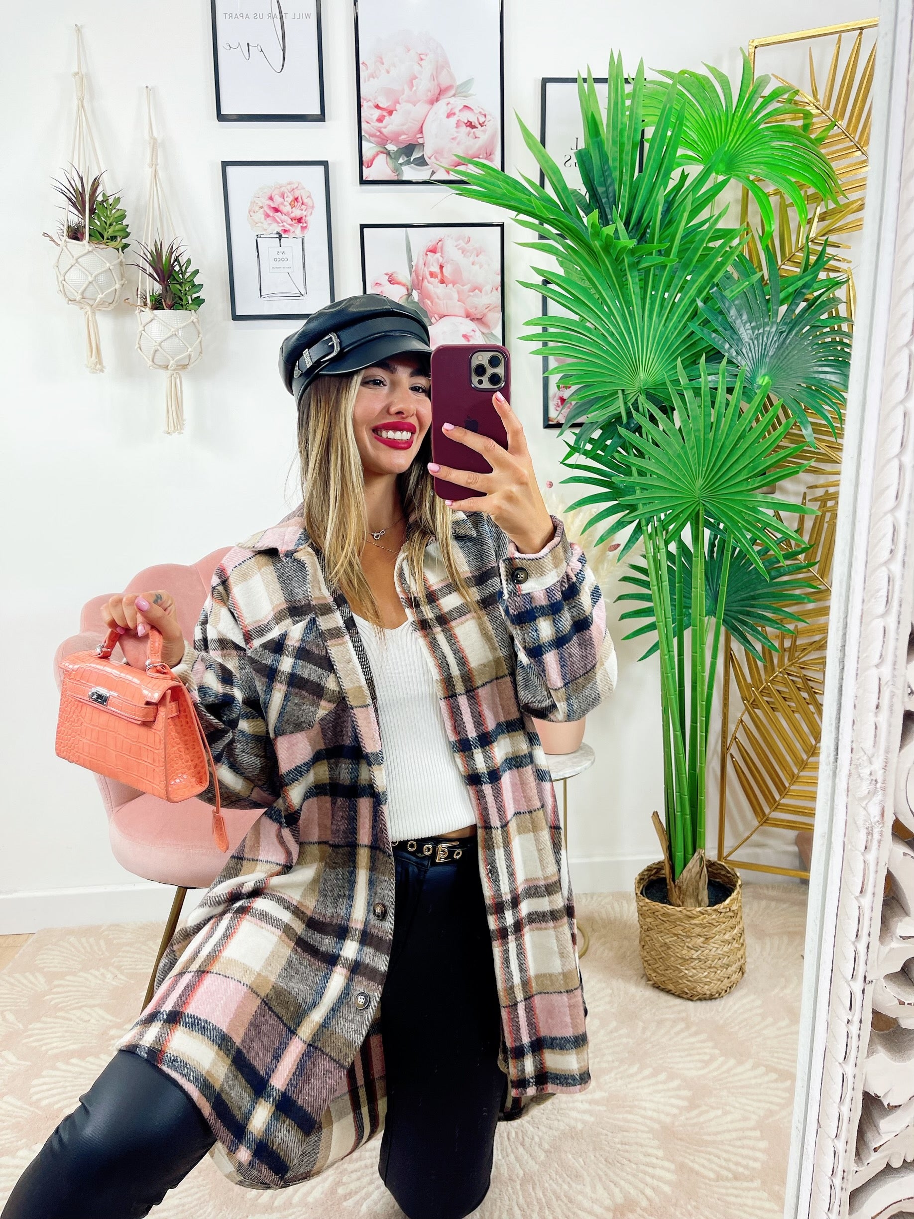 Kurtka w kratę ze średniej grubości materiału z detalami w różyczki.
