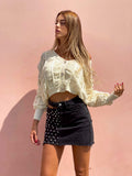 Czarna dżinsowa spódnica z ćwiekami i prześwitami