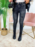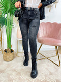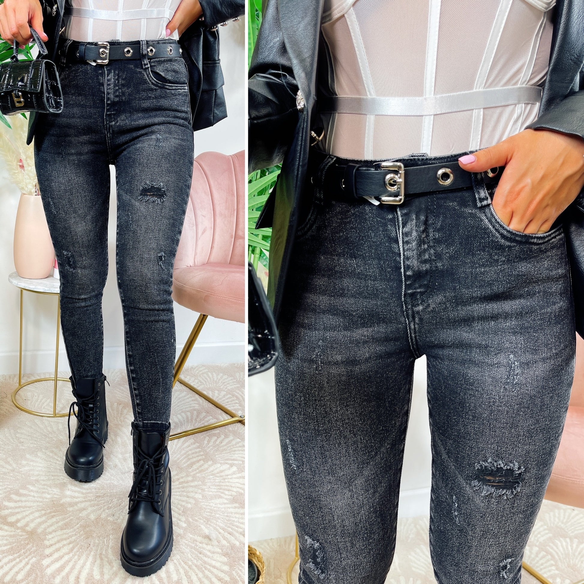 czarno/szare jeansy z przetarciami Dopasowany model.