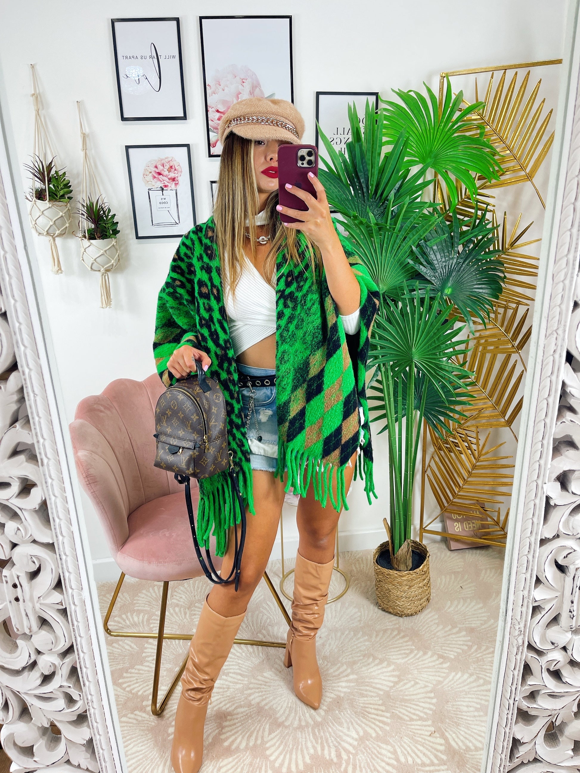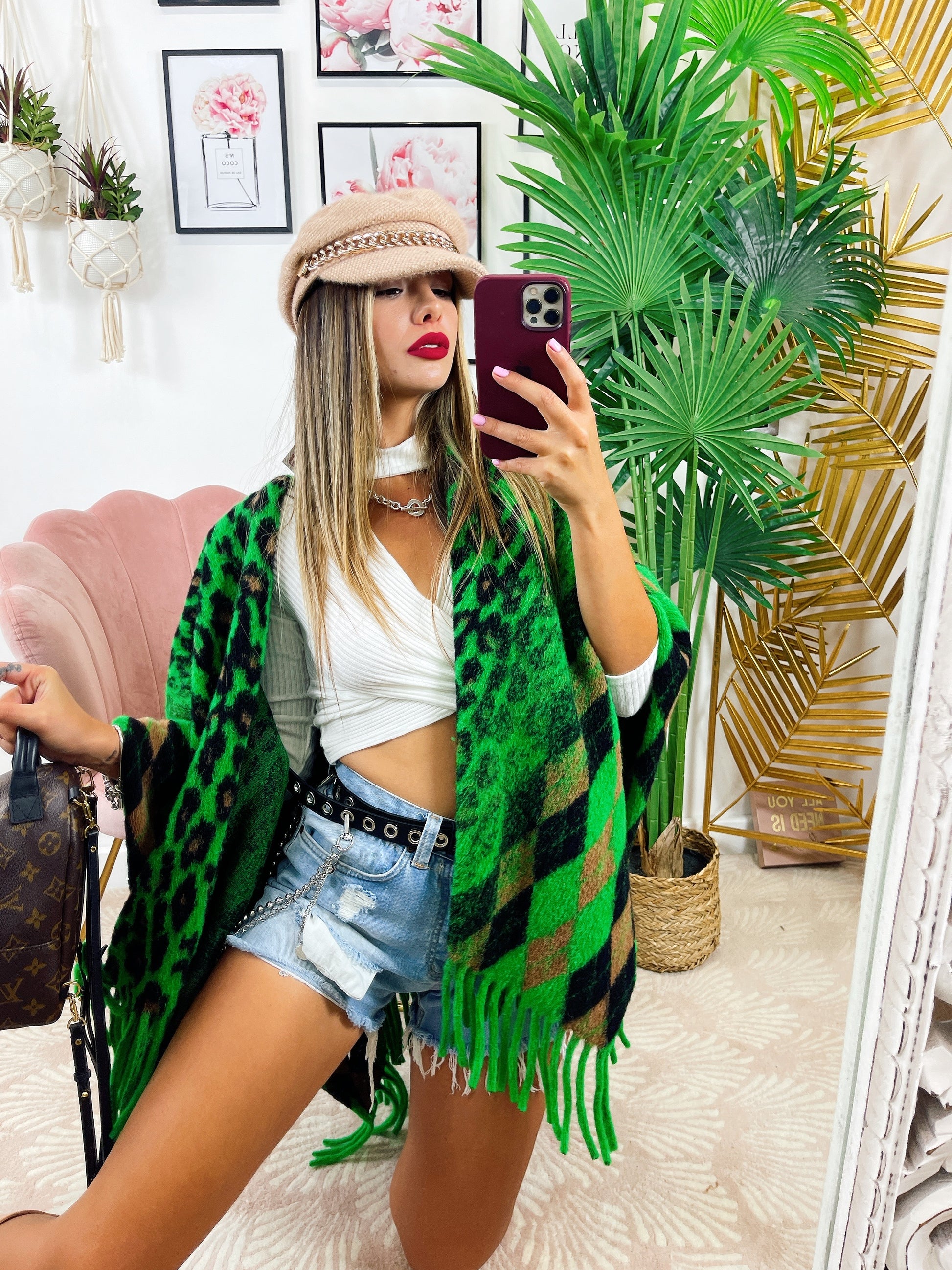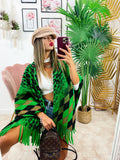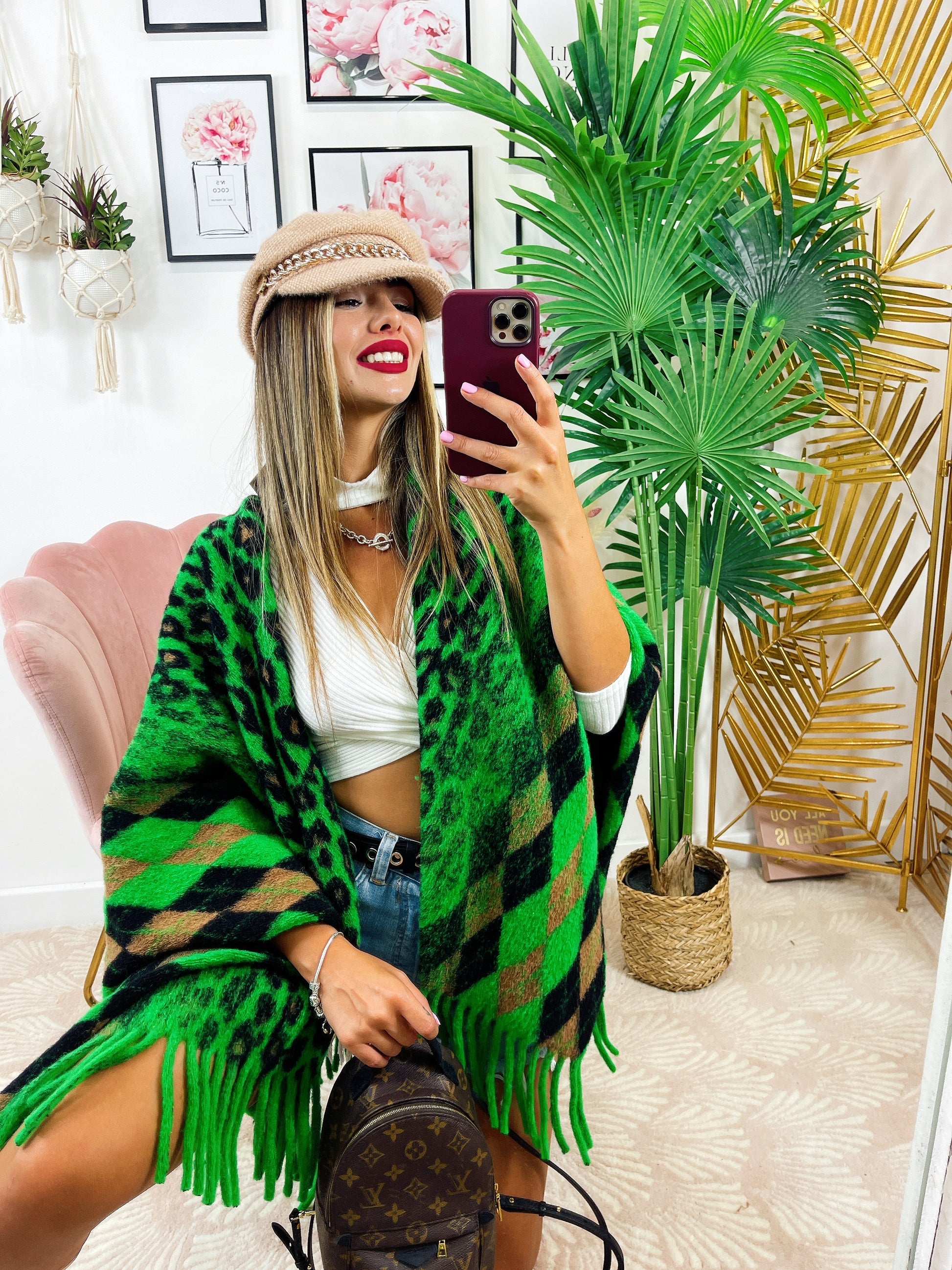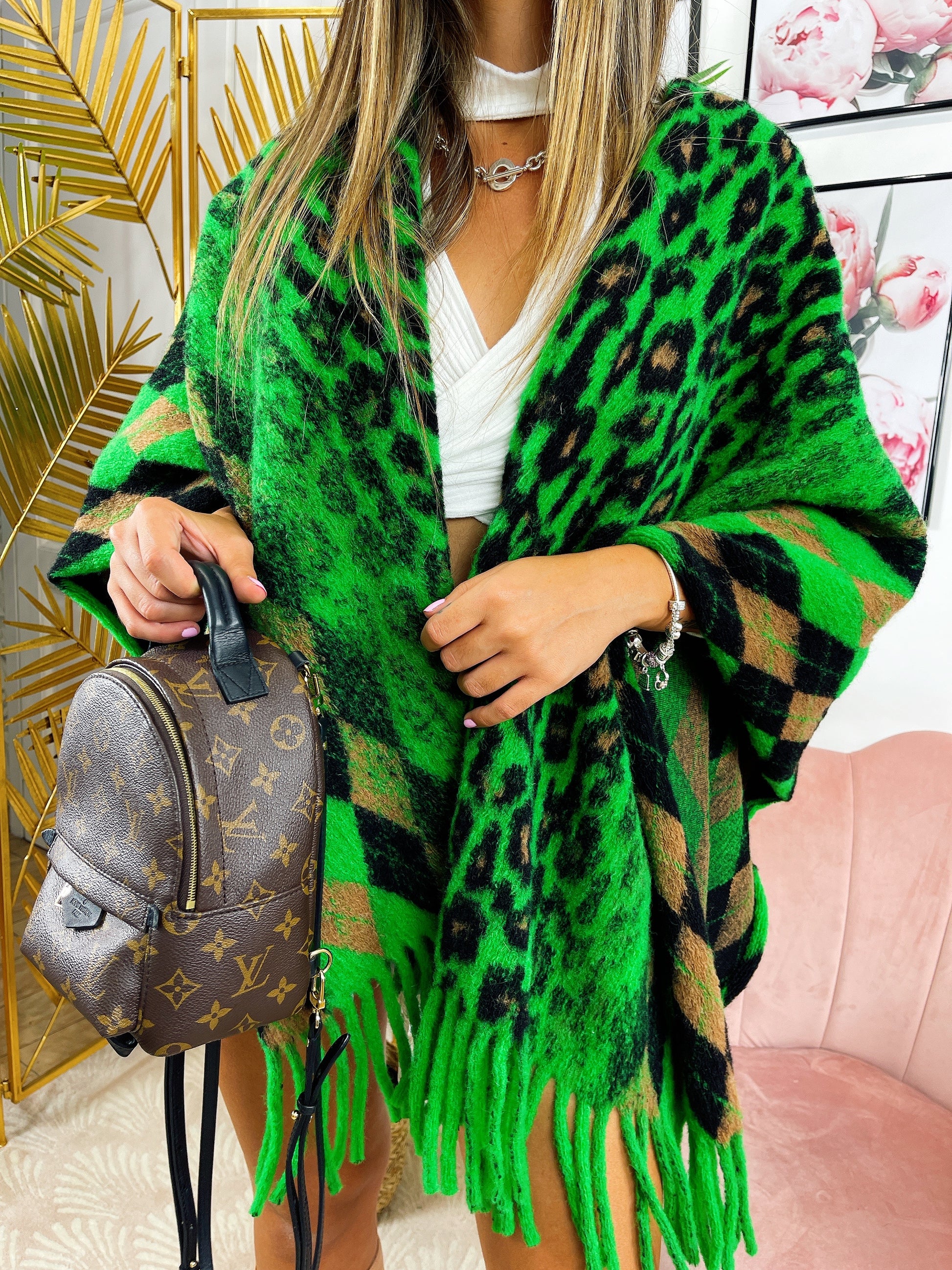 Peleryna z frędzlami z tkaniny przypominającej polar odpowiednia na nowy sezon, pasuje na wszystkie rozmiary