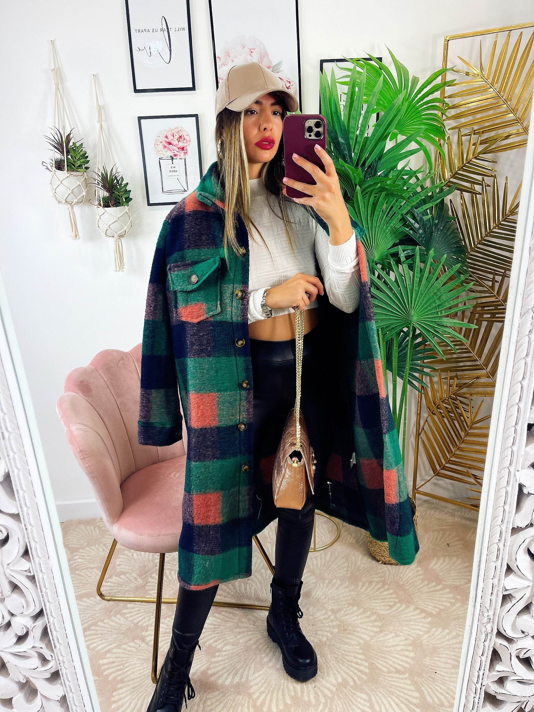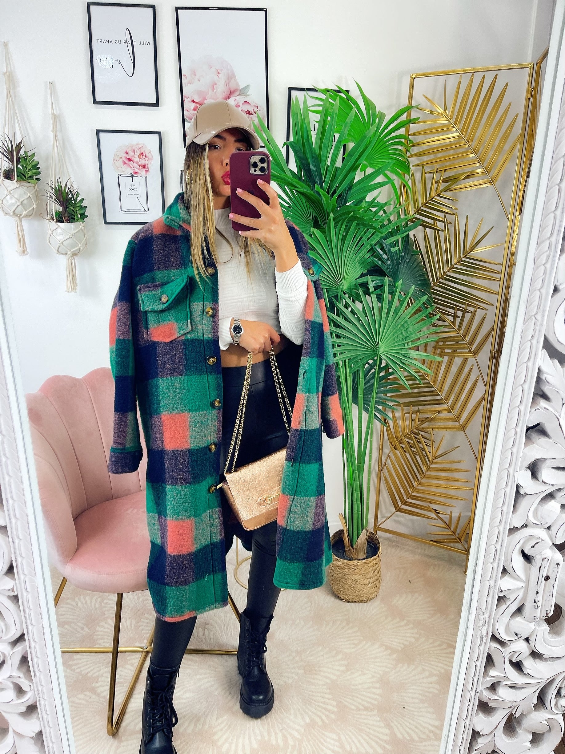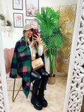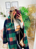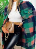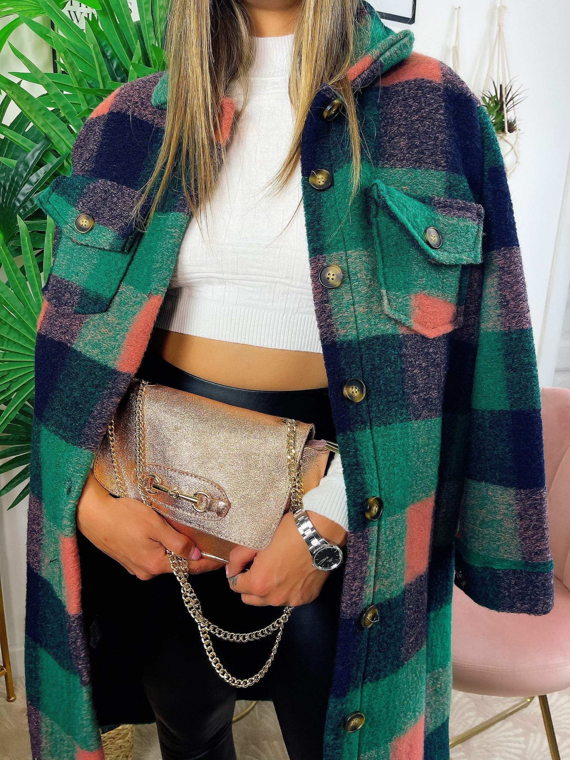 Koszula maxi w kratę z długim zielonym detalem