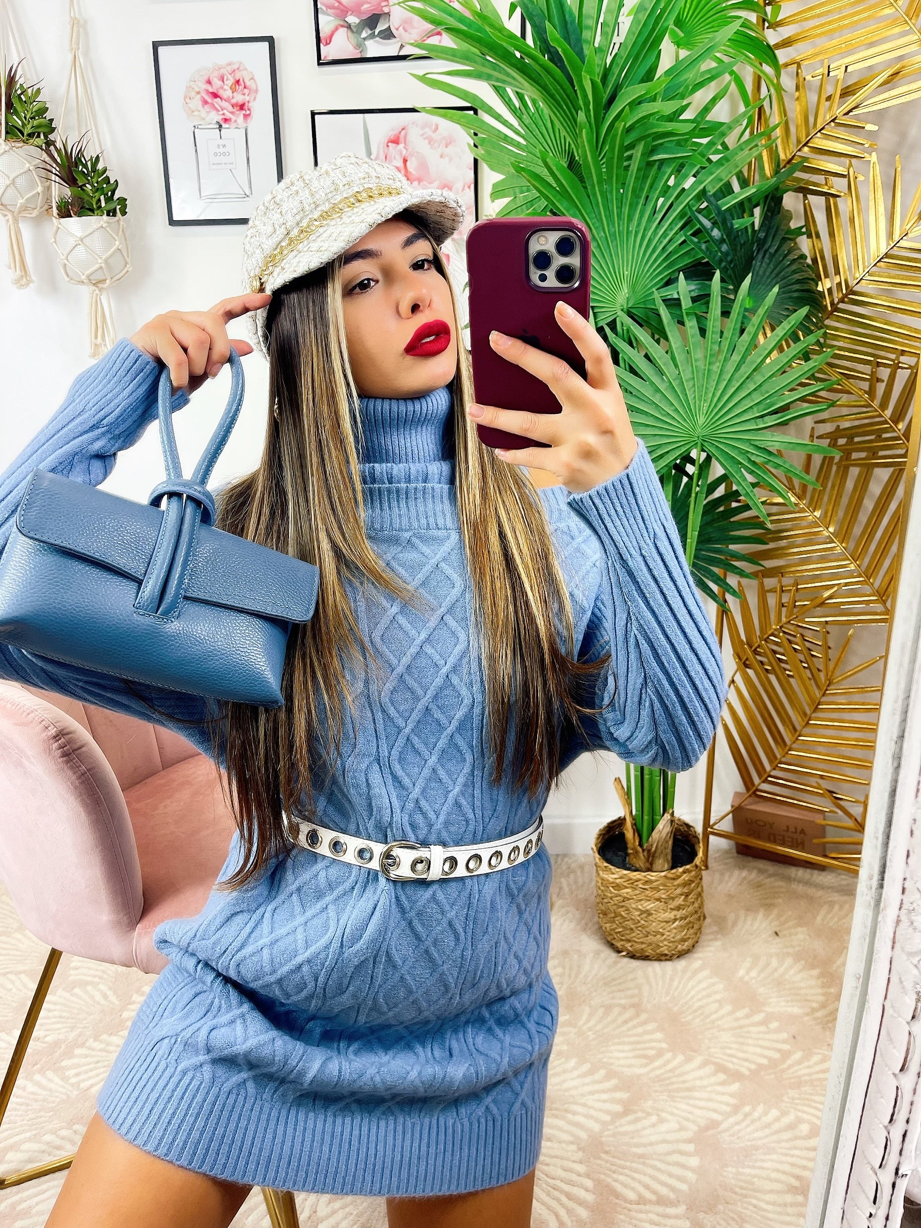 Sweter maxi z zabudowanym dekoltem z papieru cukrowego