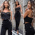 Bustino nero con stecche e coppe ricoperte di paillettes. Modello a fascia elasticizzato