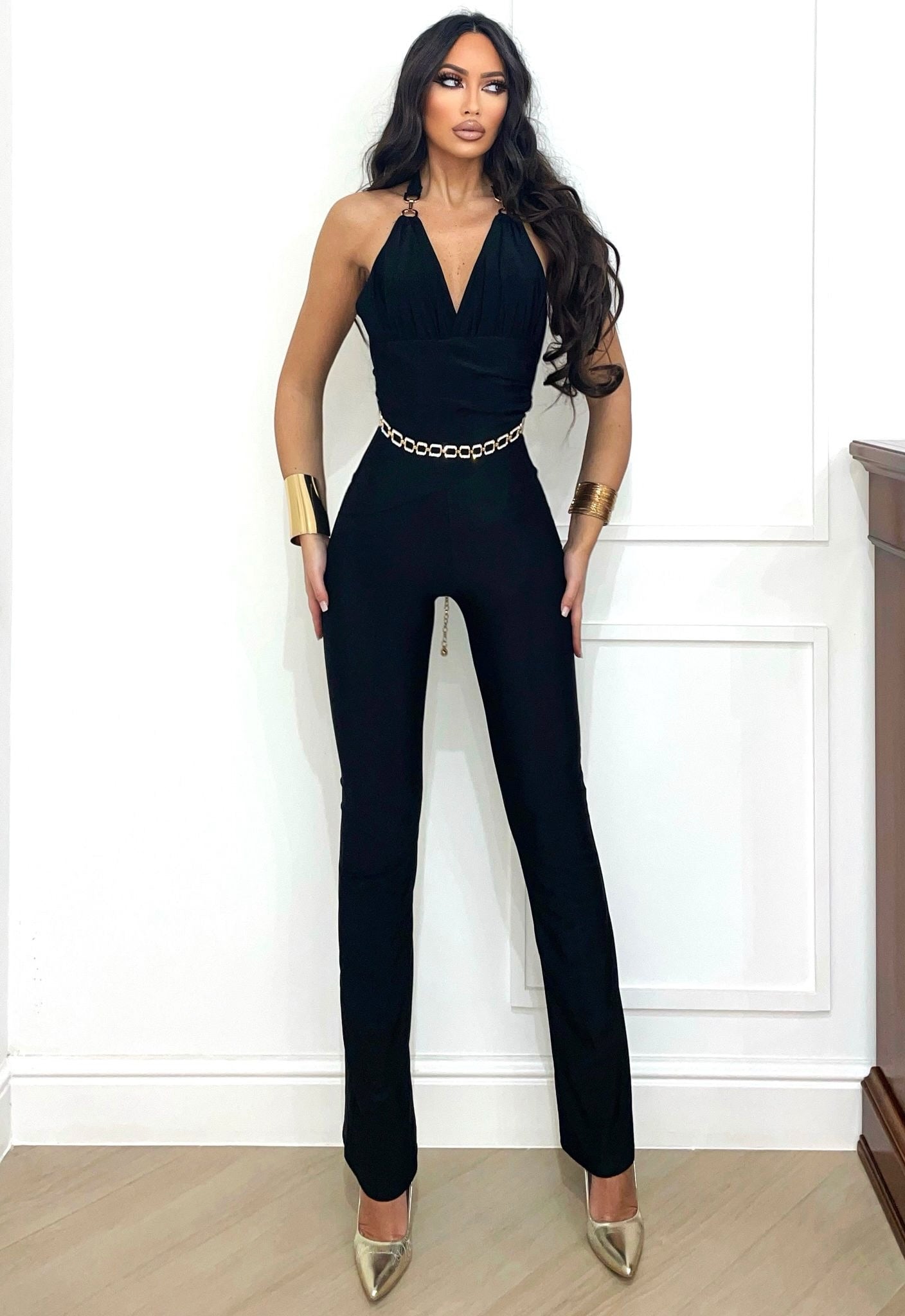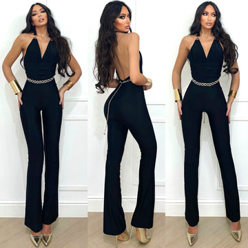 Tuta nera con catena sulle spalle