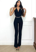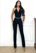 Tuta in tessuto aderente elasticizzato senza coppe con catena sulle spalle, attaccatura regolabile e schiena nuda