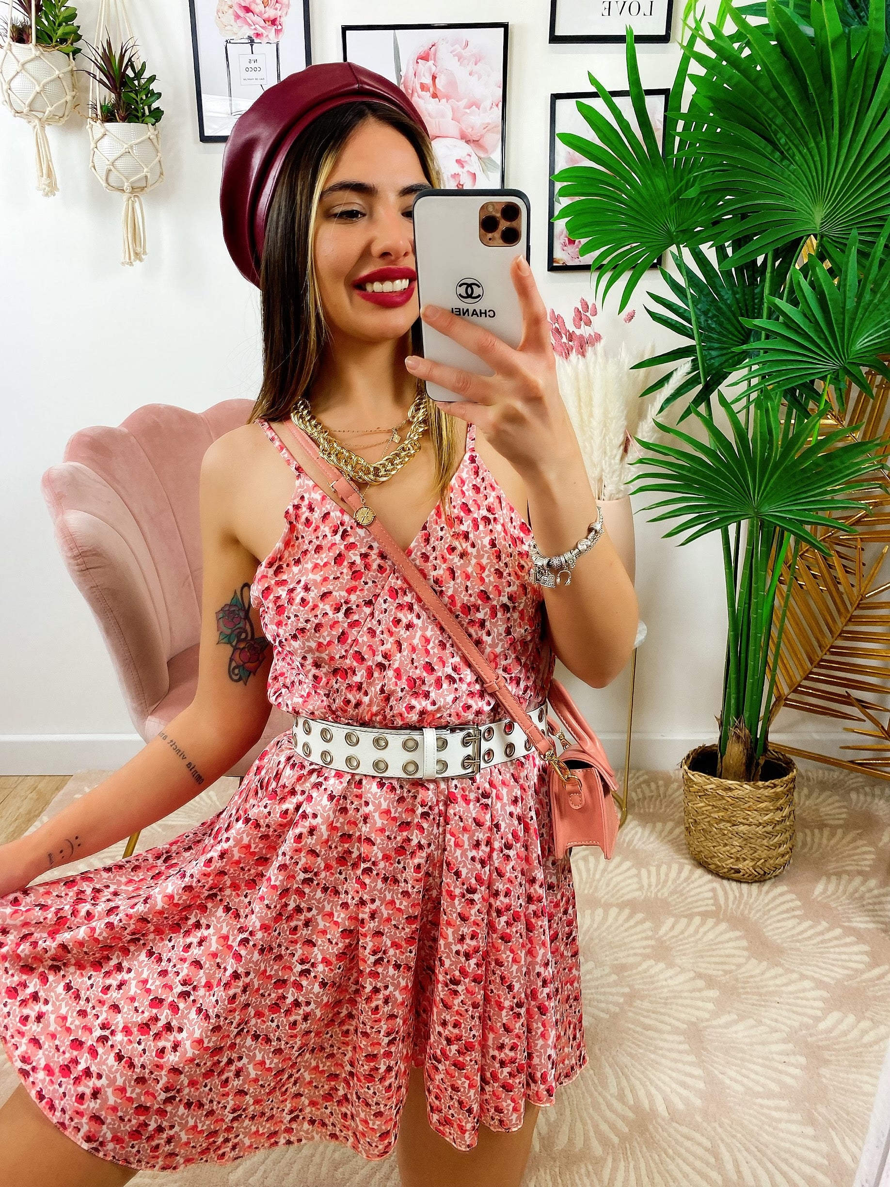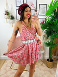 Abito a bretellina con fiorellini Fuxia