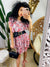 Abito leggero con fiori azzurrini in più sfumature. Taglio asimmetrico nei lati e elasticizzato in vita. Adatto a taglie piccole.