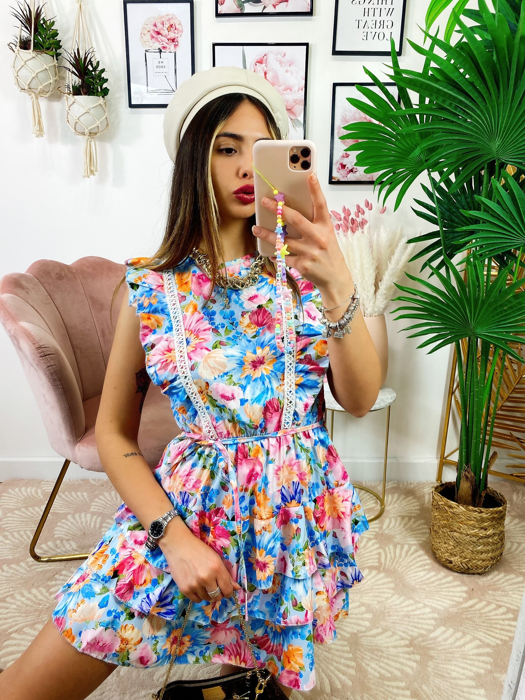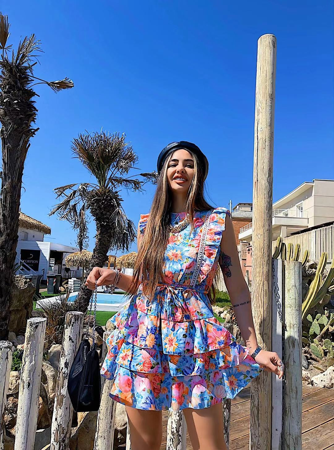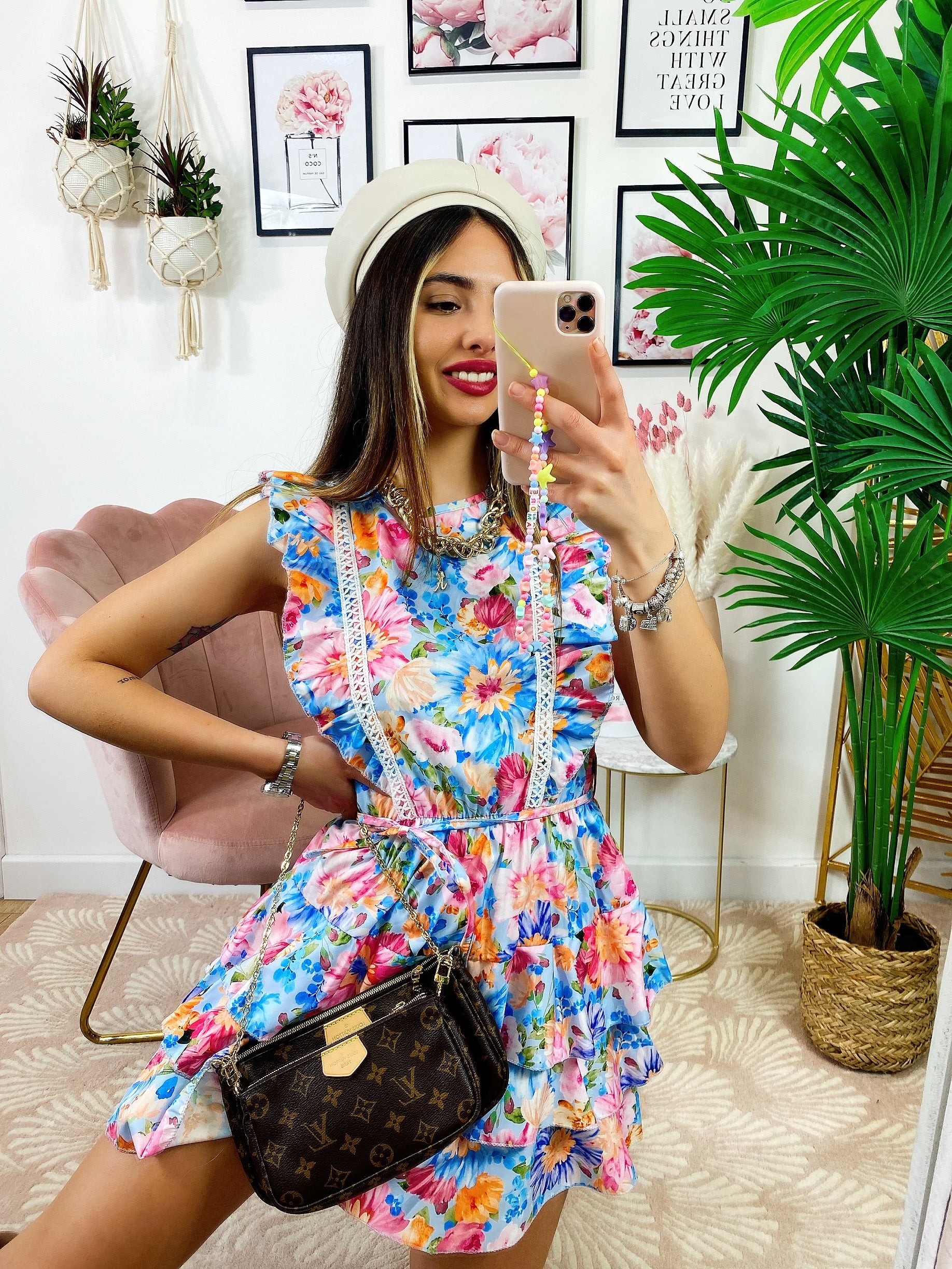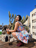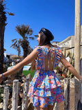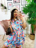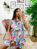 Abito a fiori azzurro schiena aperta