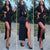 Abito in tessuto leggero elasticizzato con maxi spacco, manica lunga e incrocio sul davanti. Senza coppe