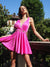 Abito in raso Fuxia con gonna a ruota e bretelle regolabili con bottone. Coppe incluse