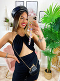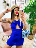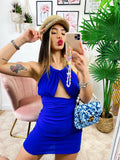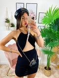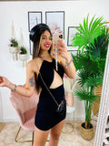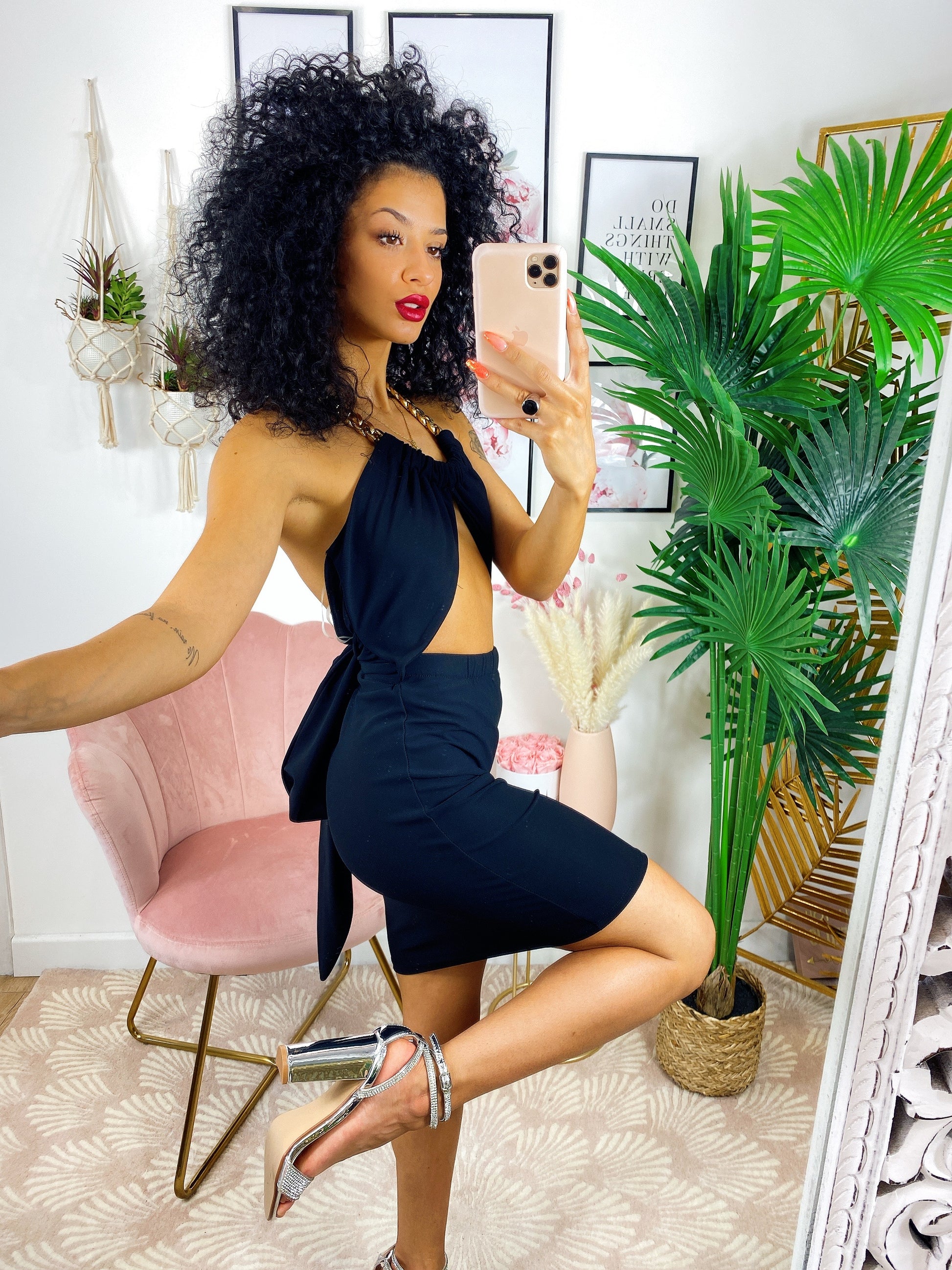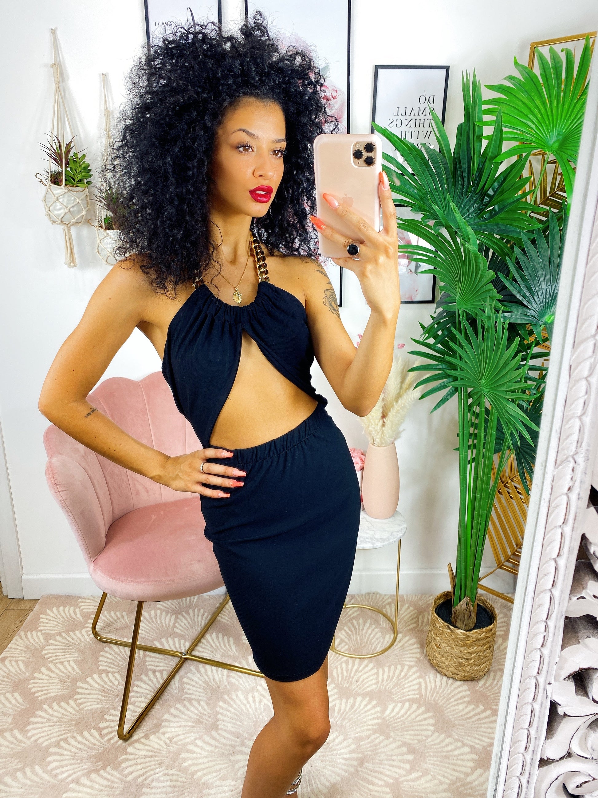 Abito con catena al collo compresa, presenta l’elastico in vita, tessuto elasticizzato.