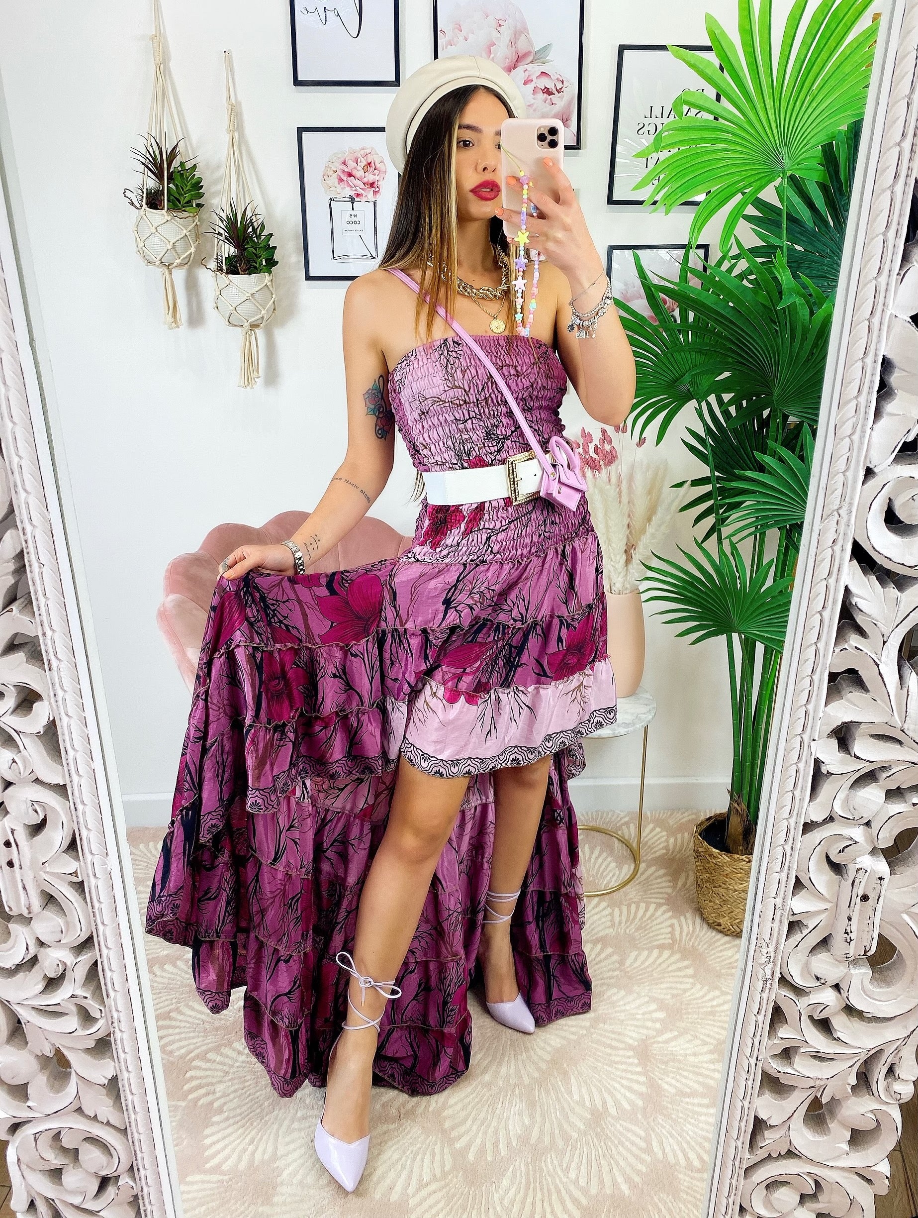 Abito con Gonna asimmetrica Estiva con elastico in vita e sul seno.