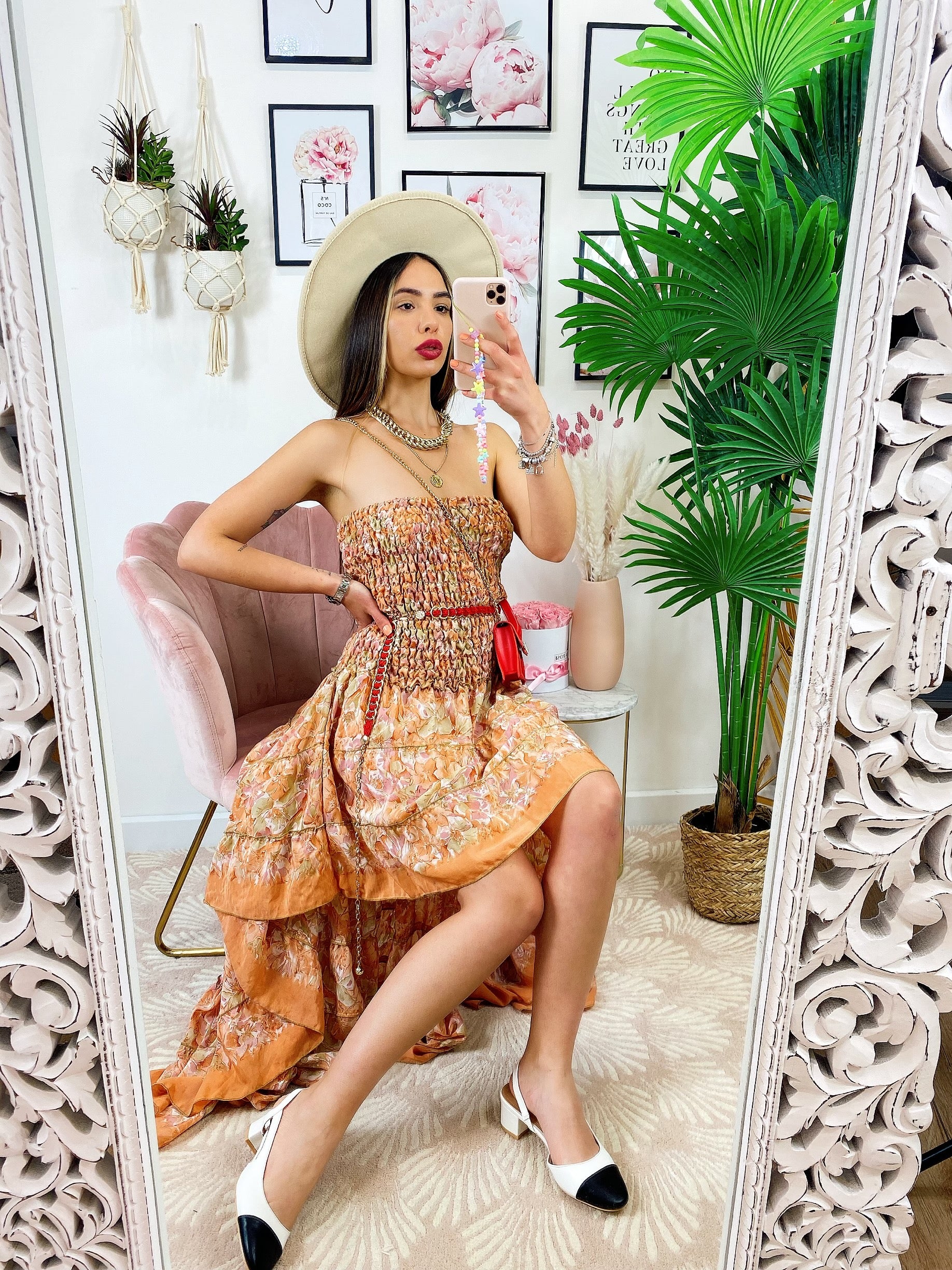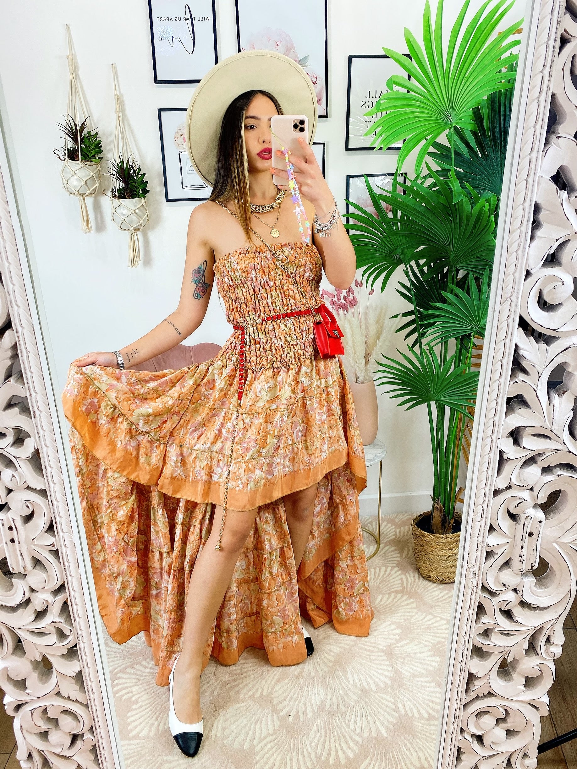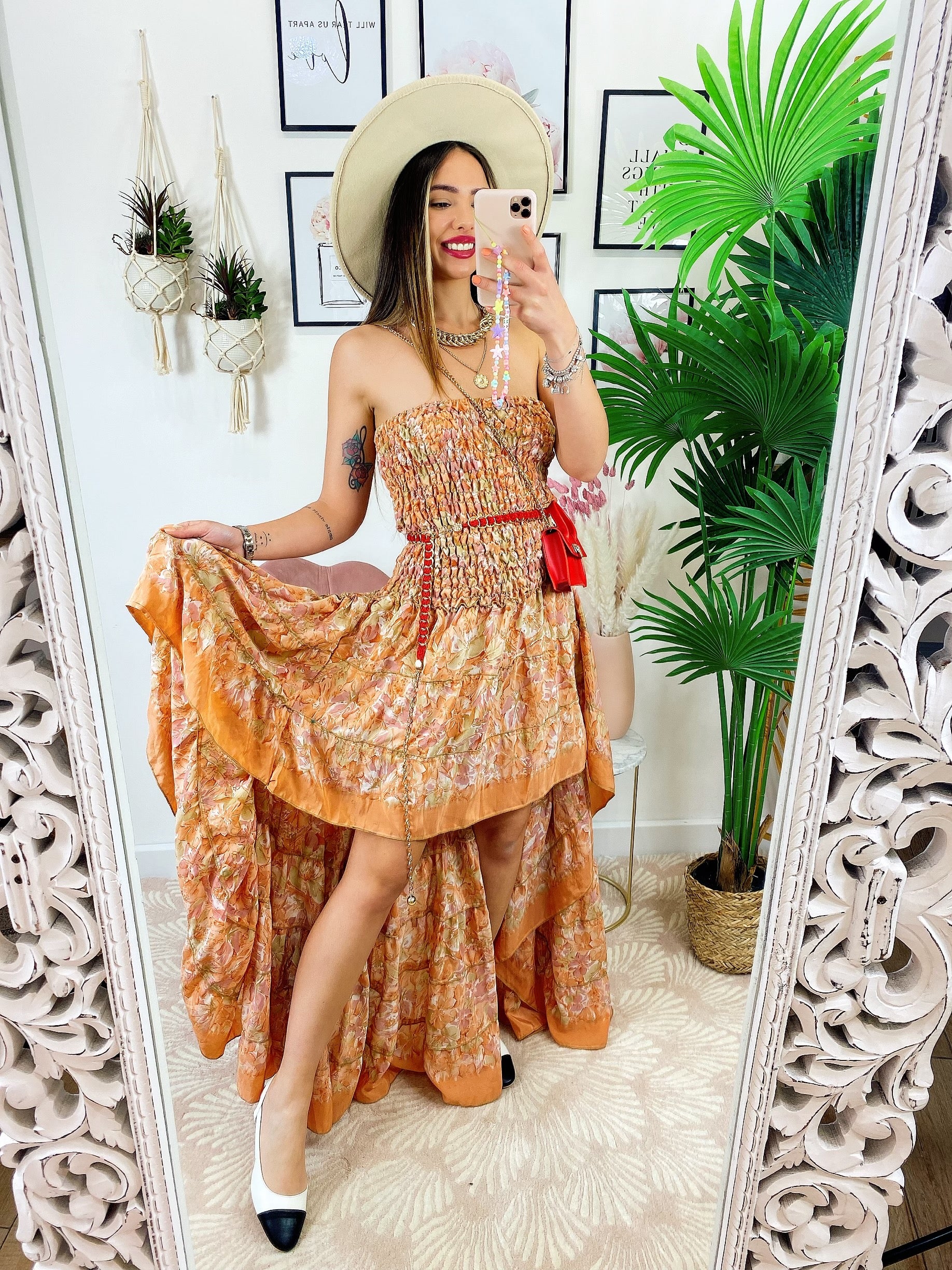 Abito con Gonna asimmetrica Estiva con elastico in vita e sul seno.