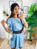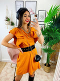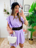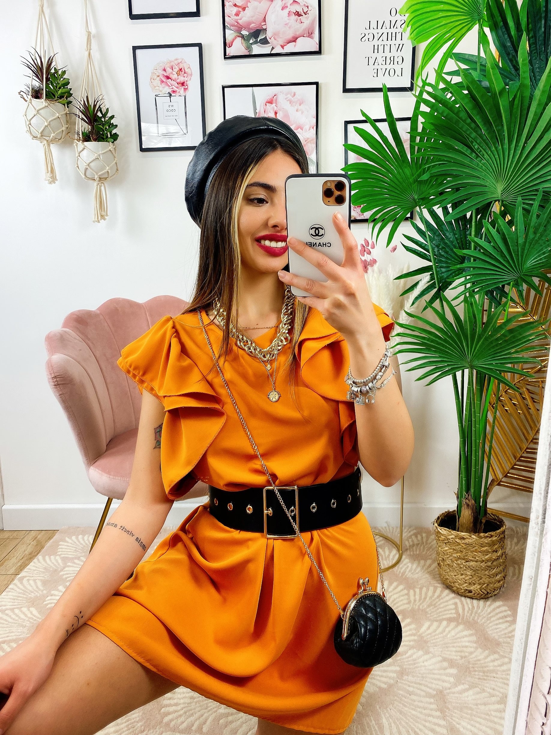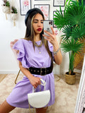 Abito con manica voilant e cintura in vita, elasticizzate e comode.