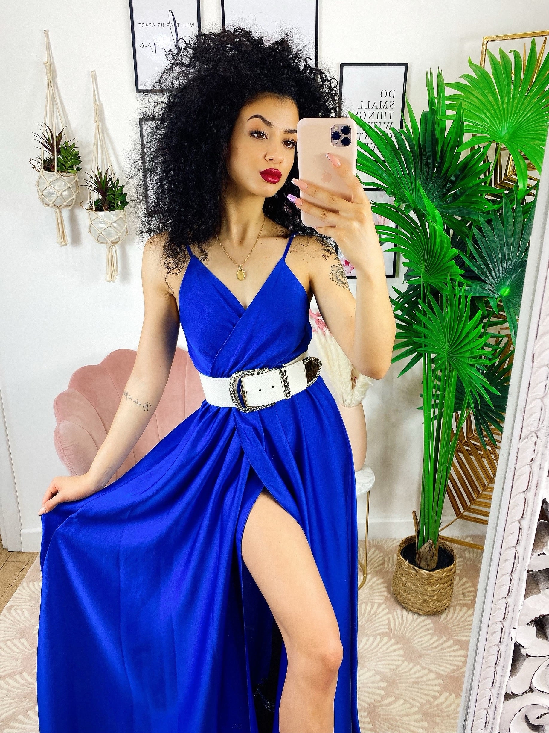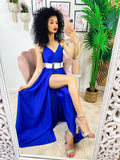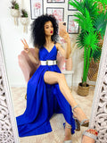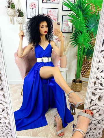 Abito con maxi spacco blu elettrico