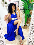 Abito con maxi spacco blu di alta qualità. Fantastico abito molto lungo da indossare con un bel tacco per le serate più glamour. Tira fuori la tua sensualità e voglia di essere donna, sarai la più amata della serata !!