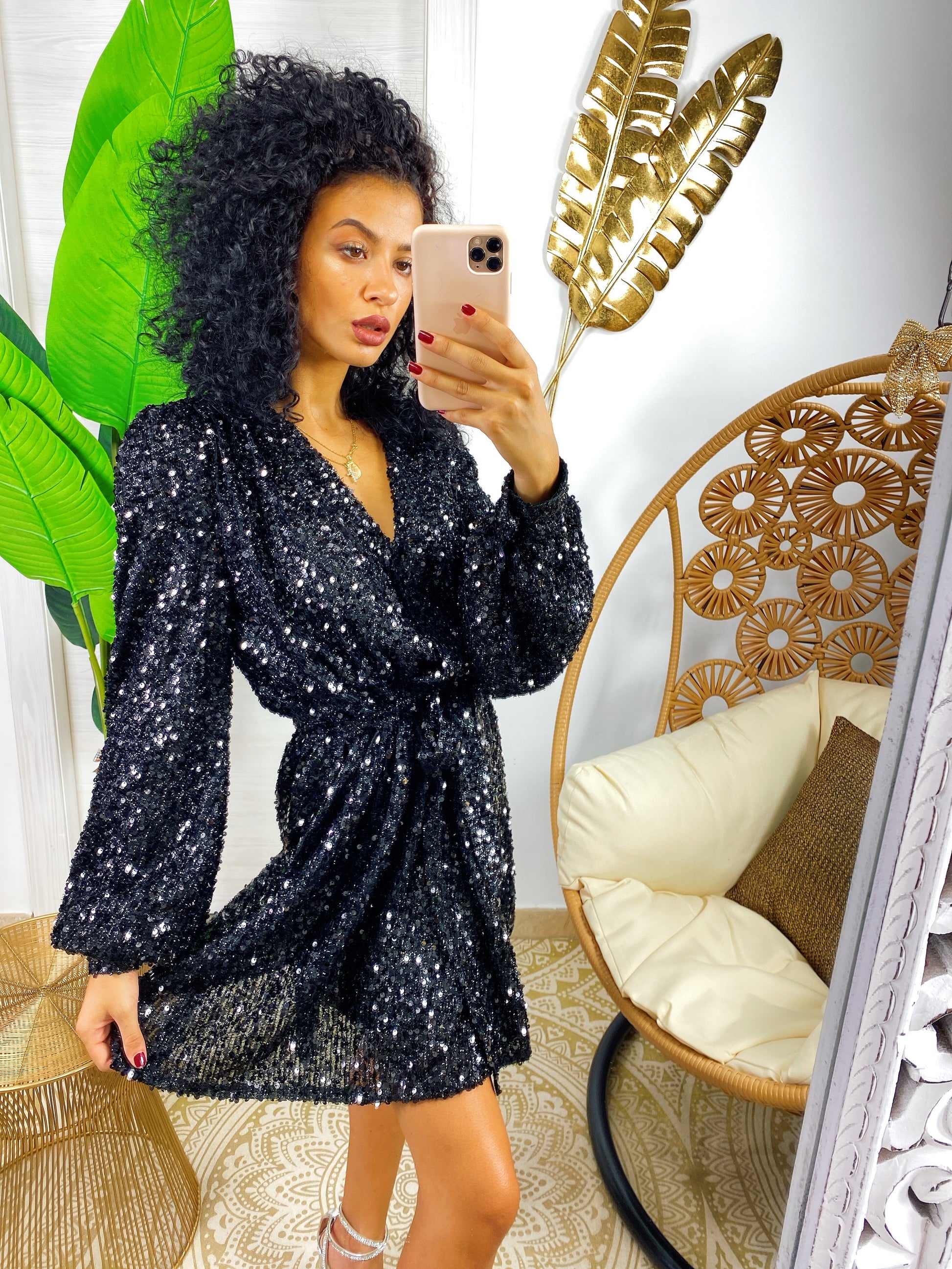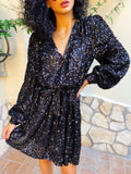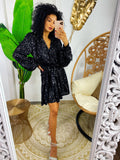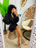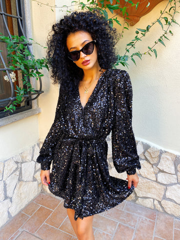 Abito con paillettes manica lunga nero
