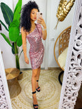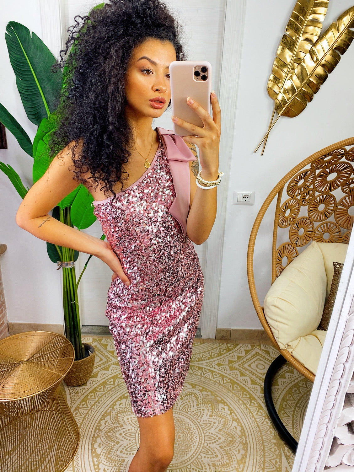 Abito con paillettes morbido monospalla con fiocco in raso. Perfetto fa una 38 a una 42