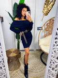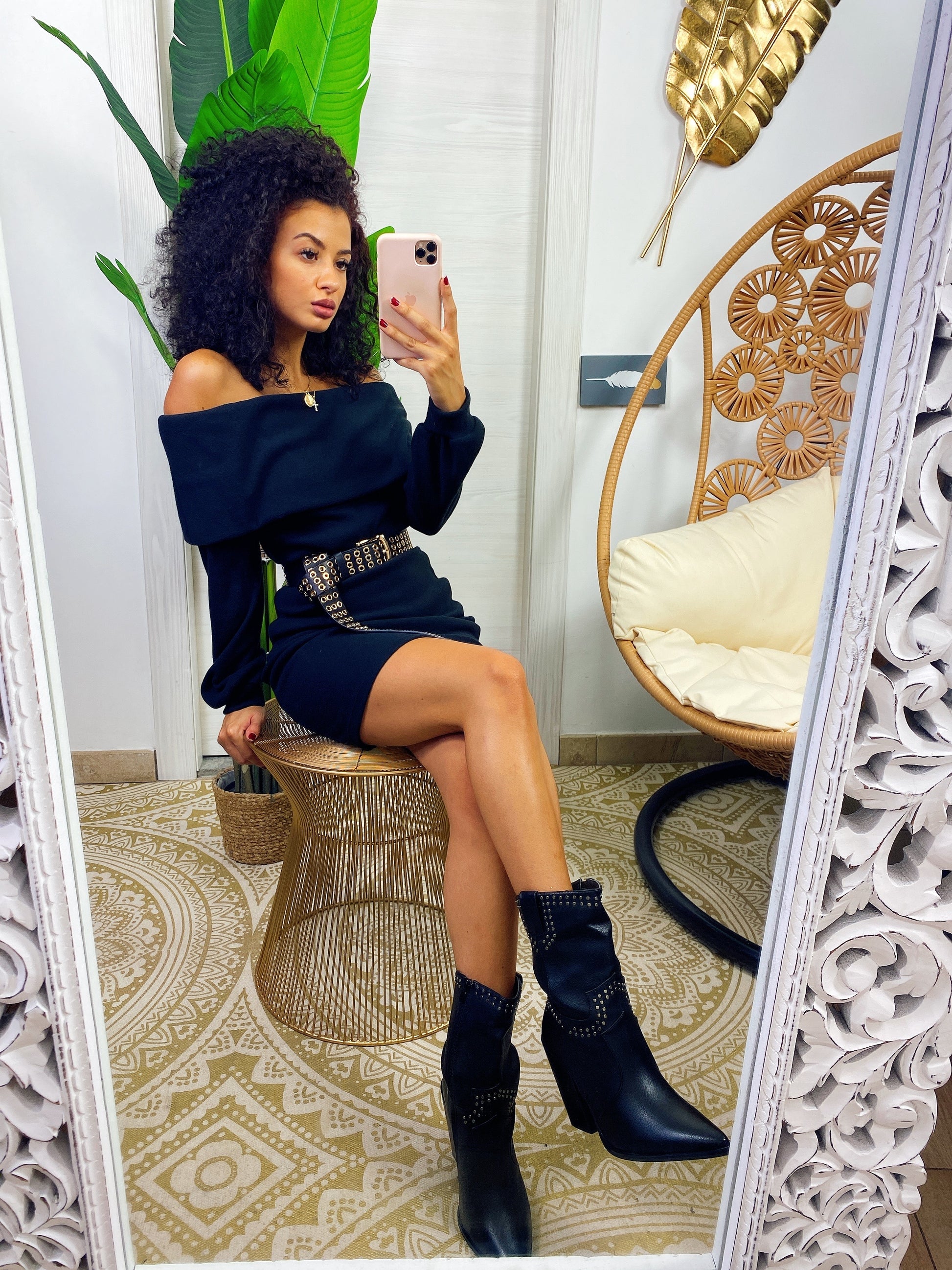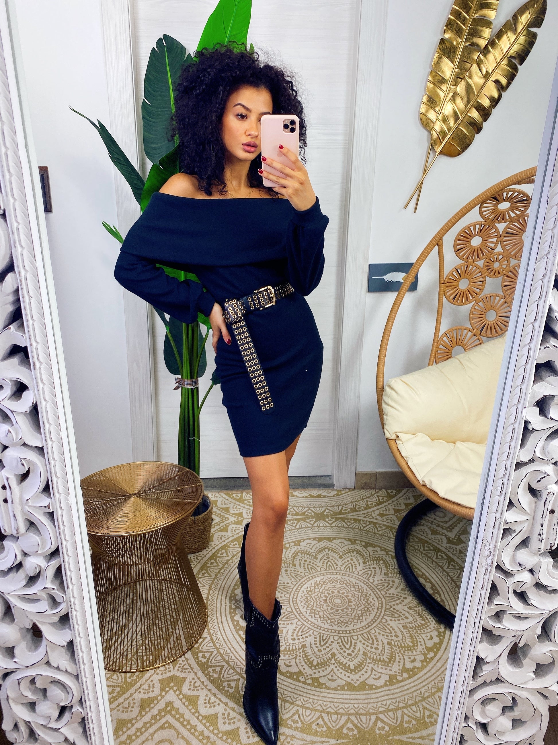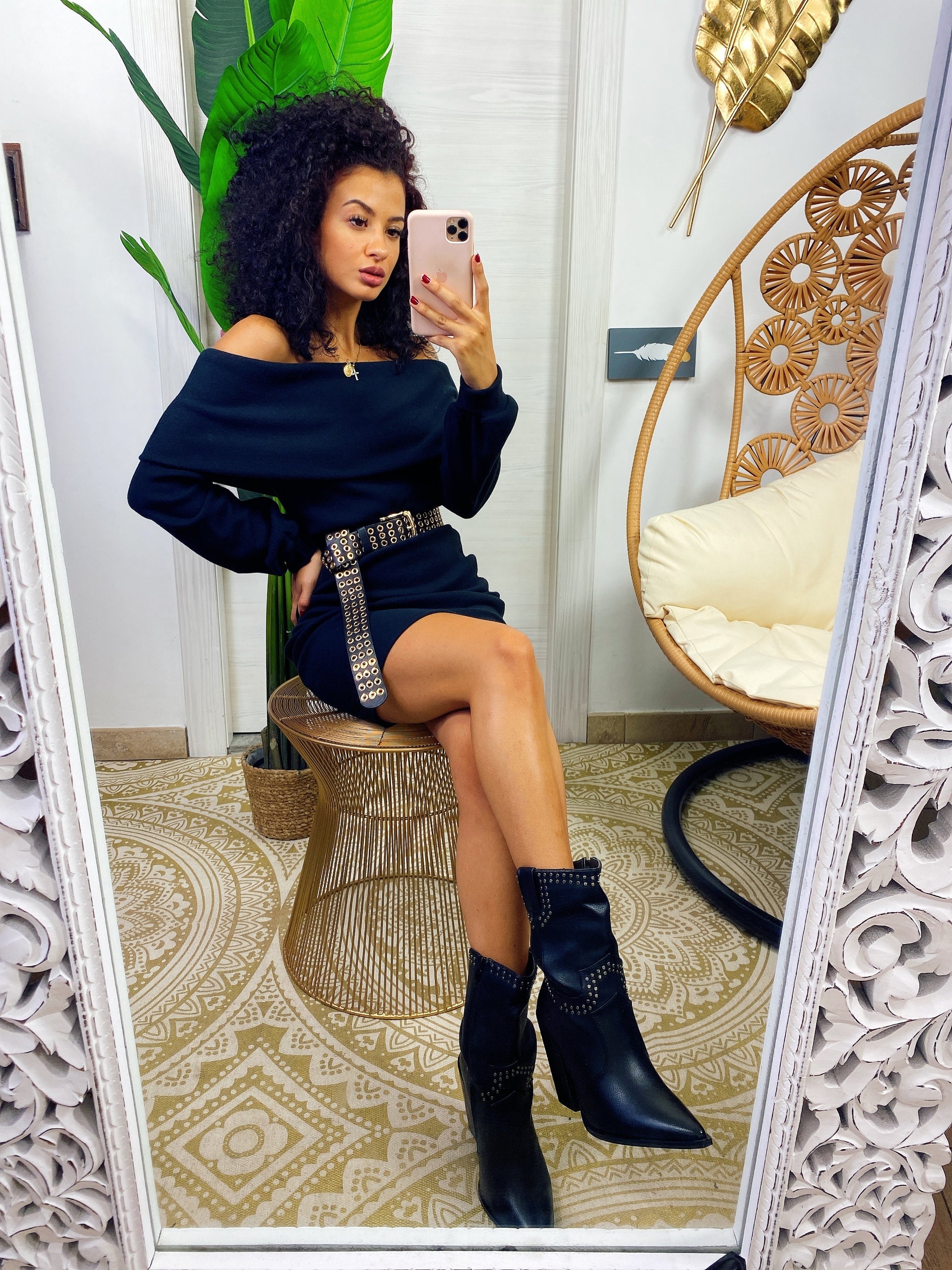 Abito in panno morbidissimo con scollo a barchetta. Manica lunga e polsini.