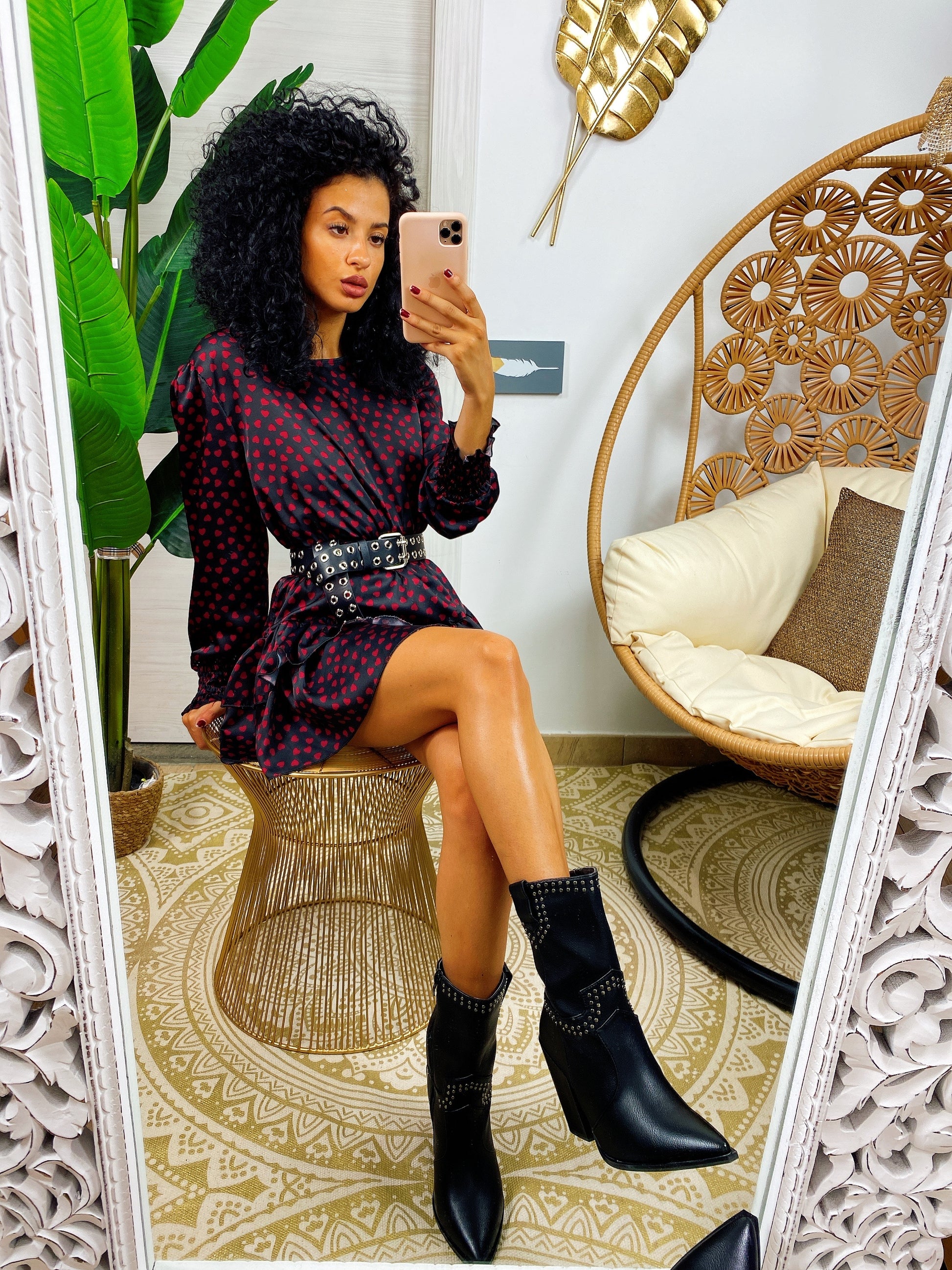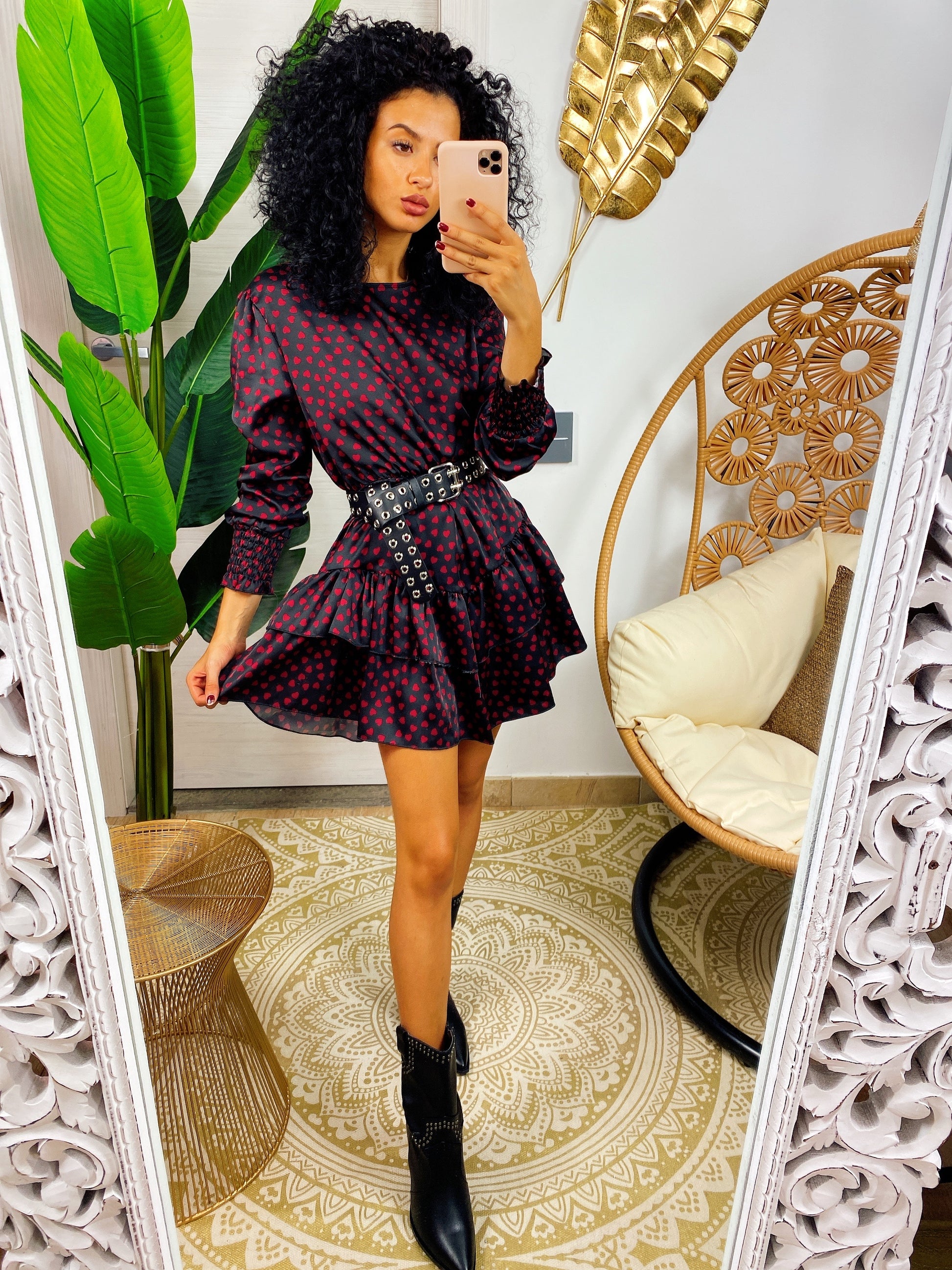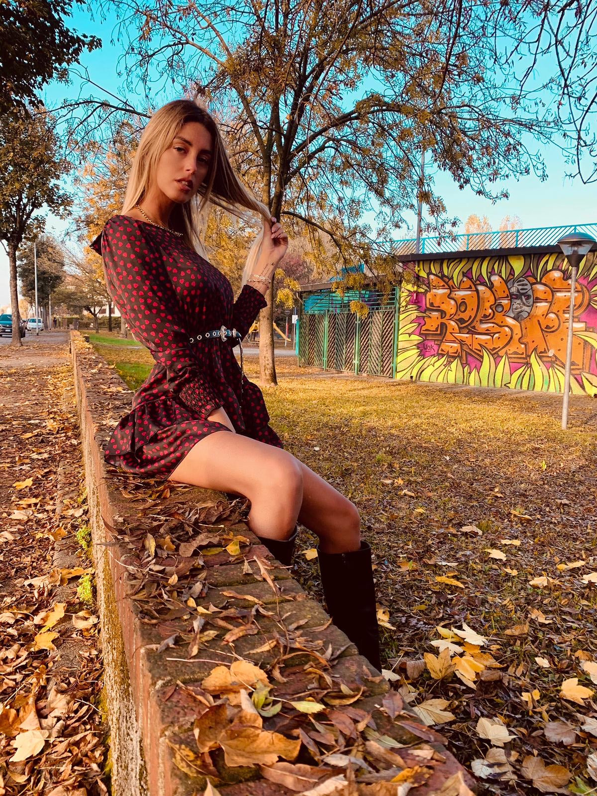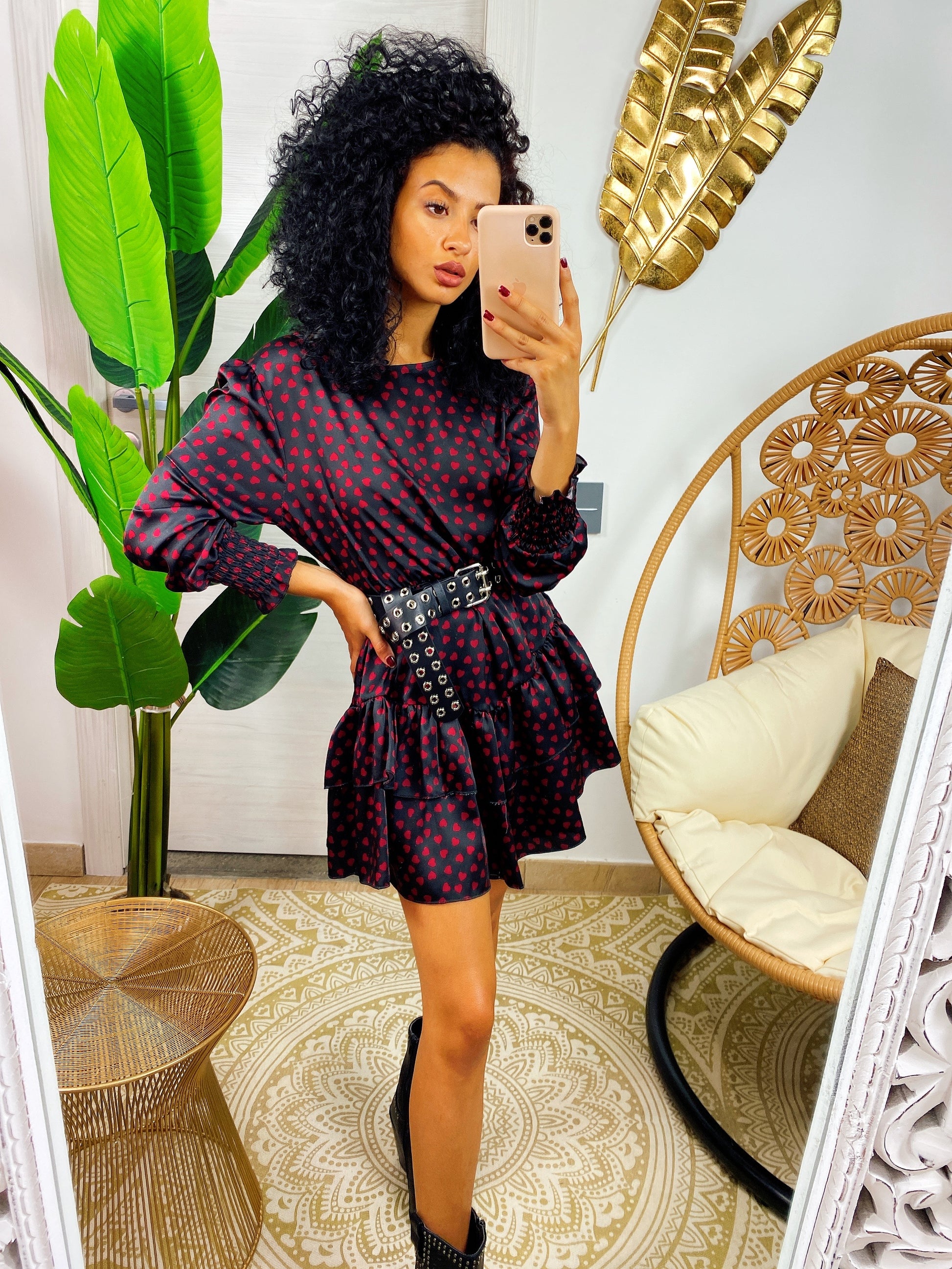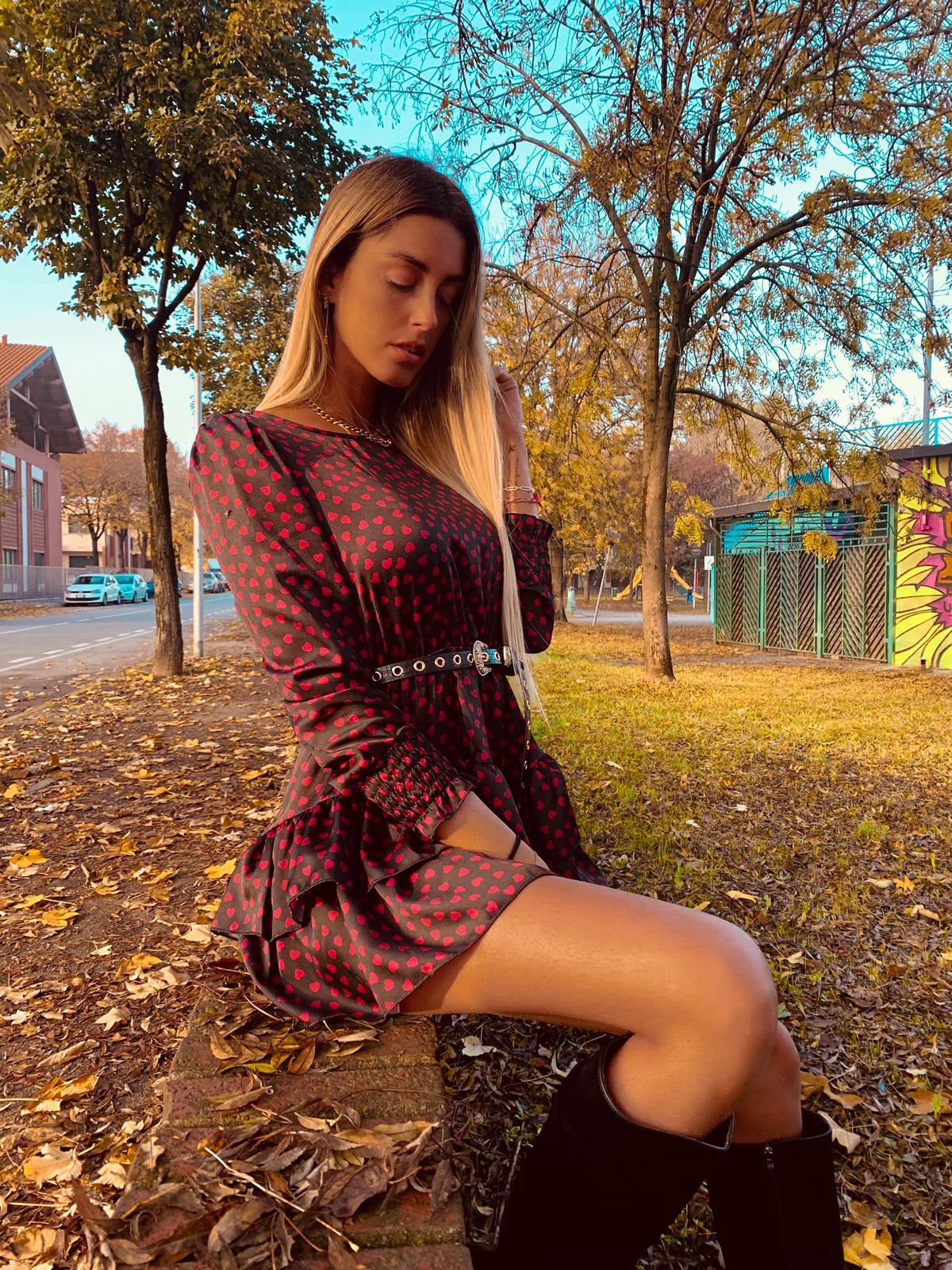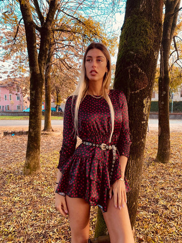 Abito cuori rossi con gonna asimmetrica