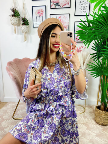Abito etnico con sfumature in tessuto liscio con cintura.