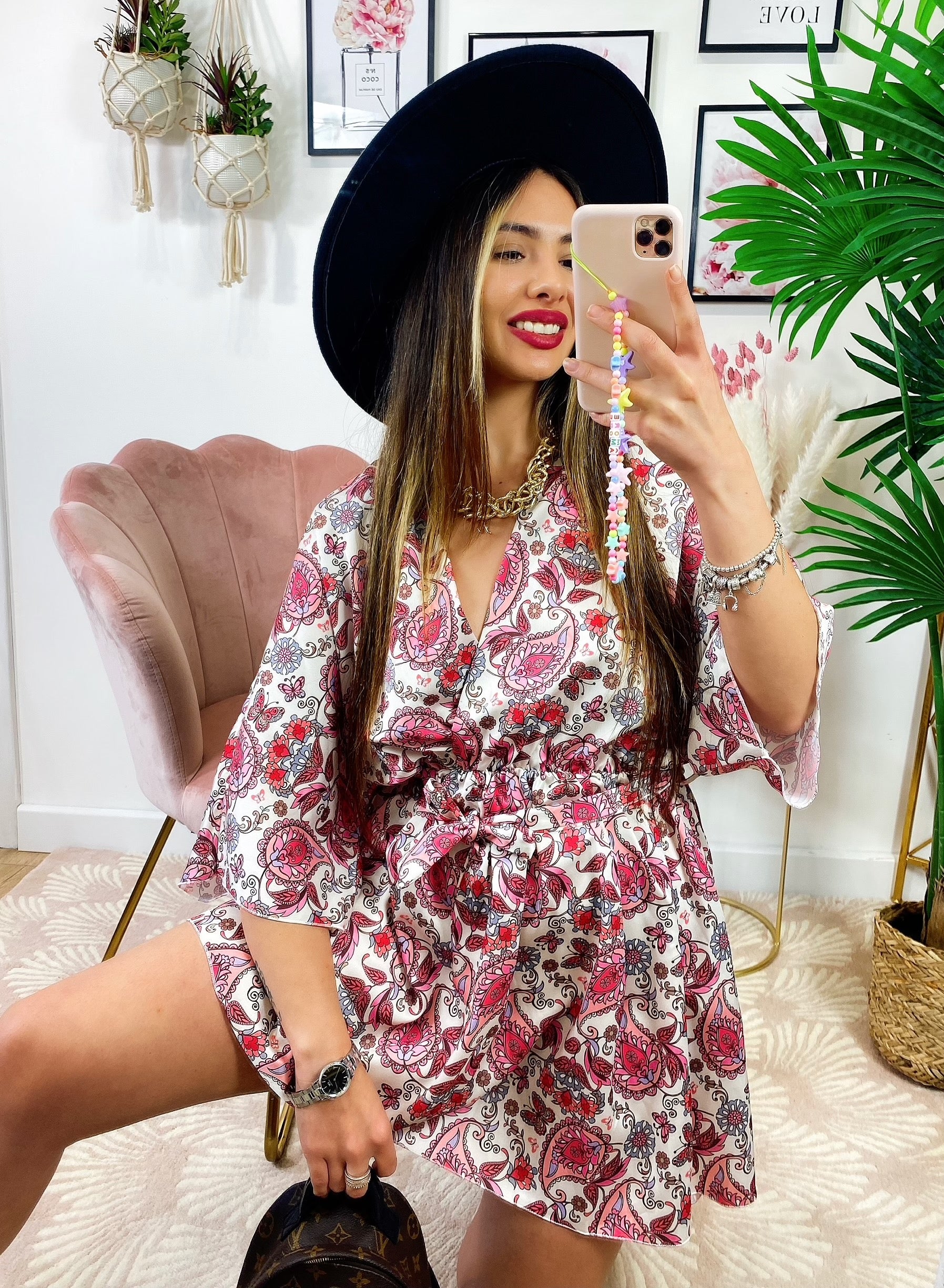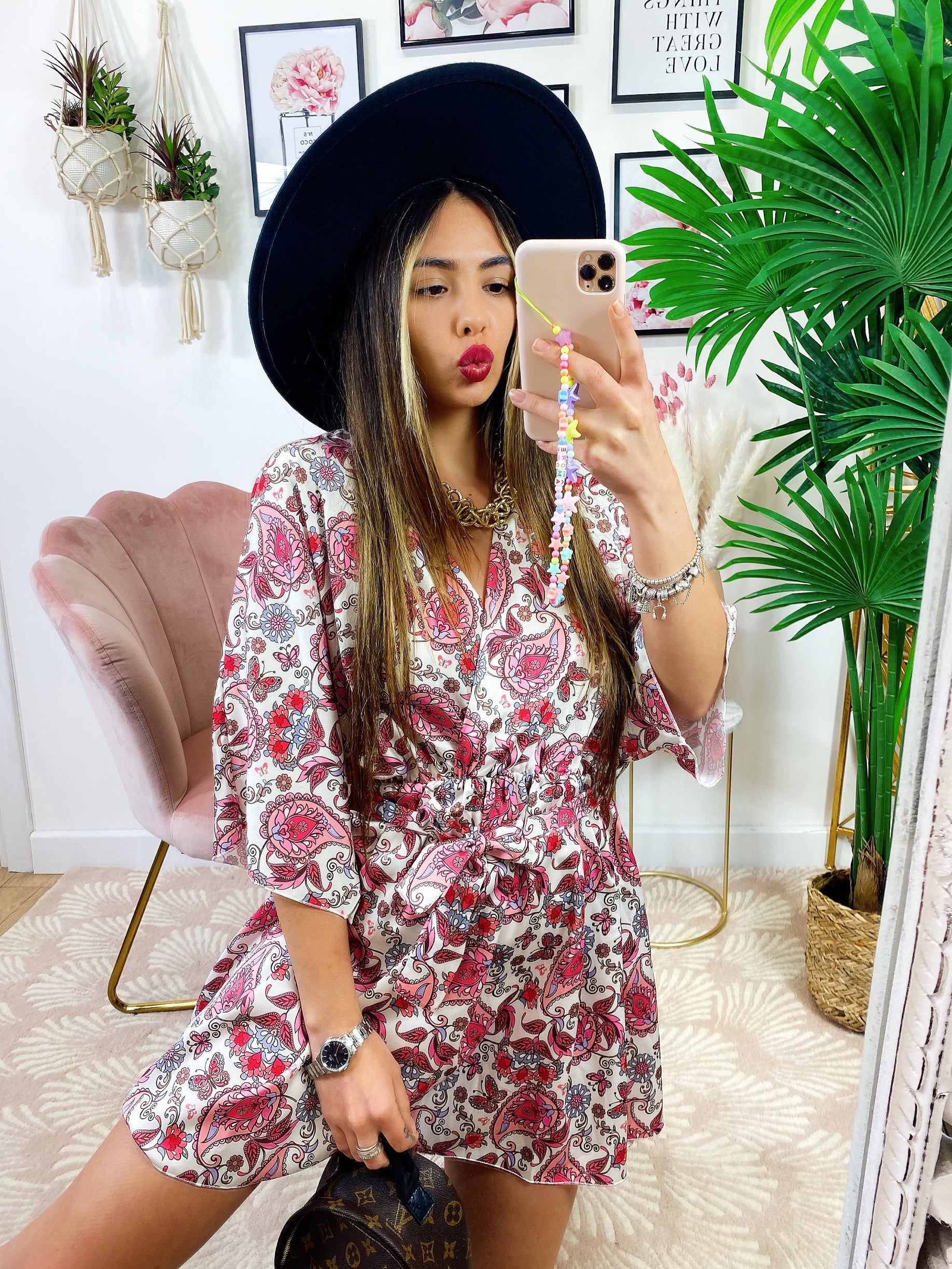 Abito etnico con sfumature in tessuto liscio con cintura.