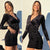 Abito in velluto con scollo a V in tessuto glitterato con due drappeggiatura.
