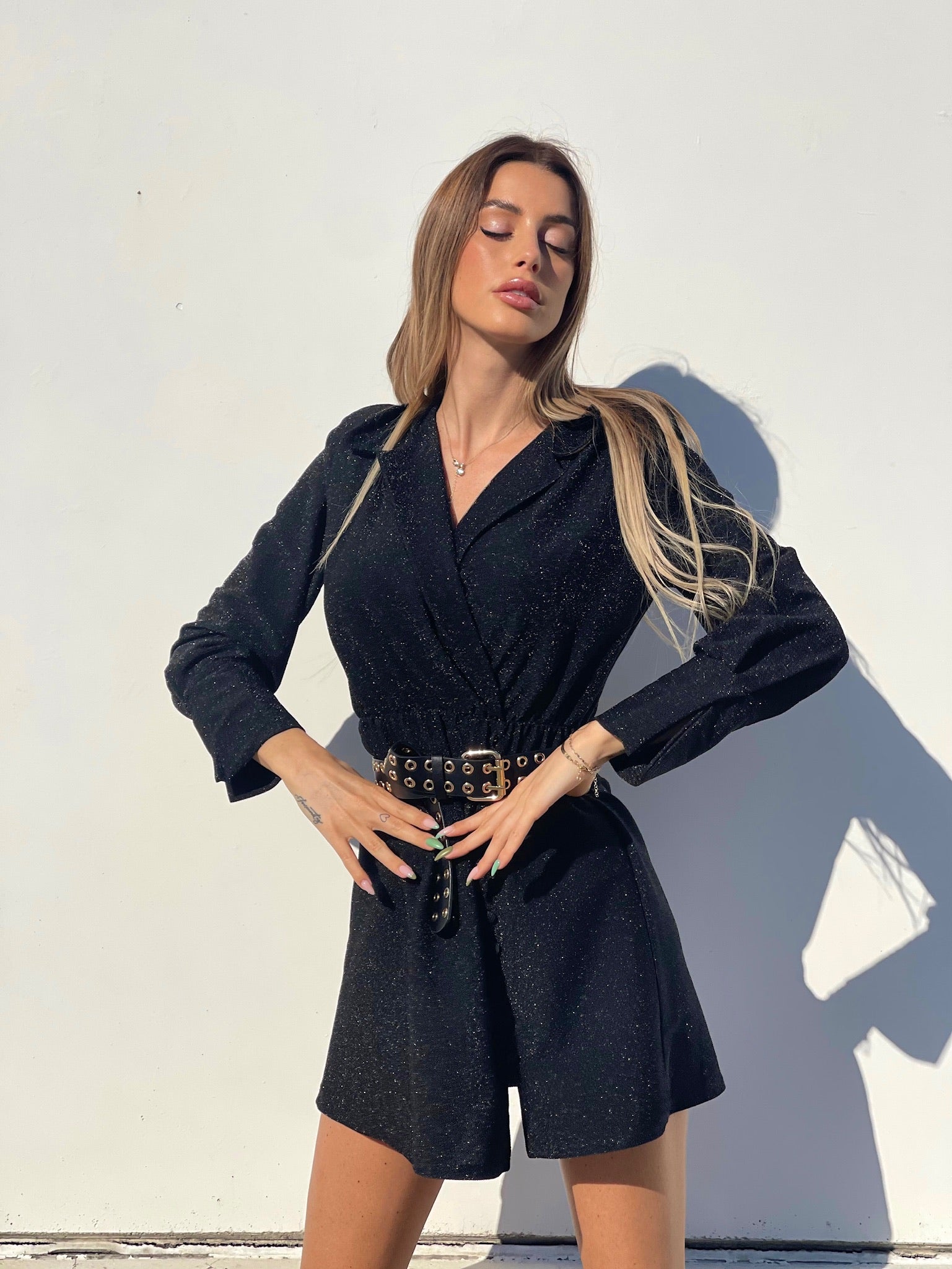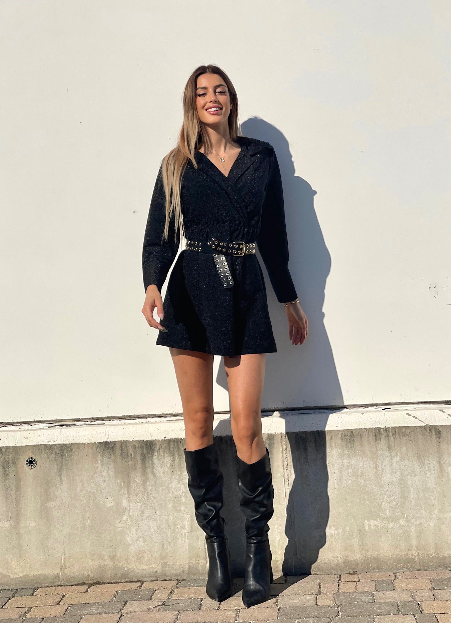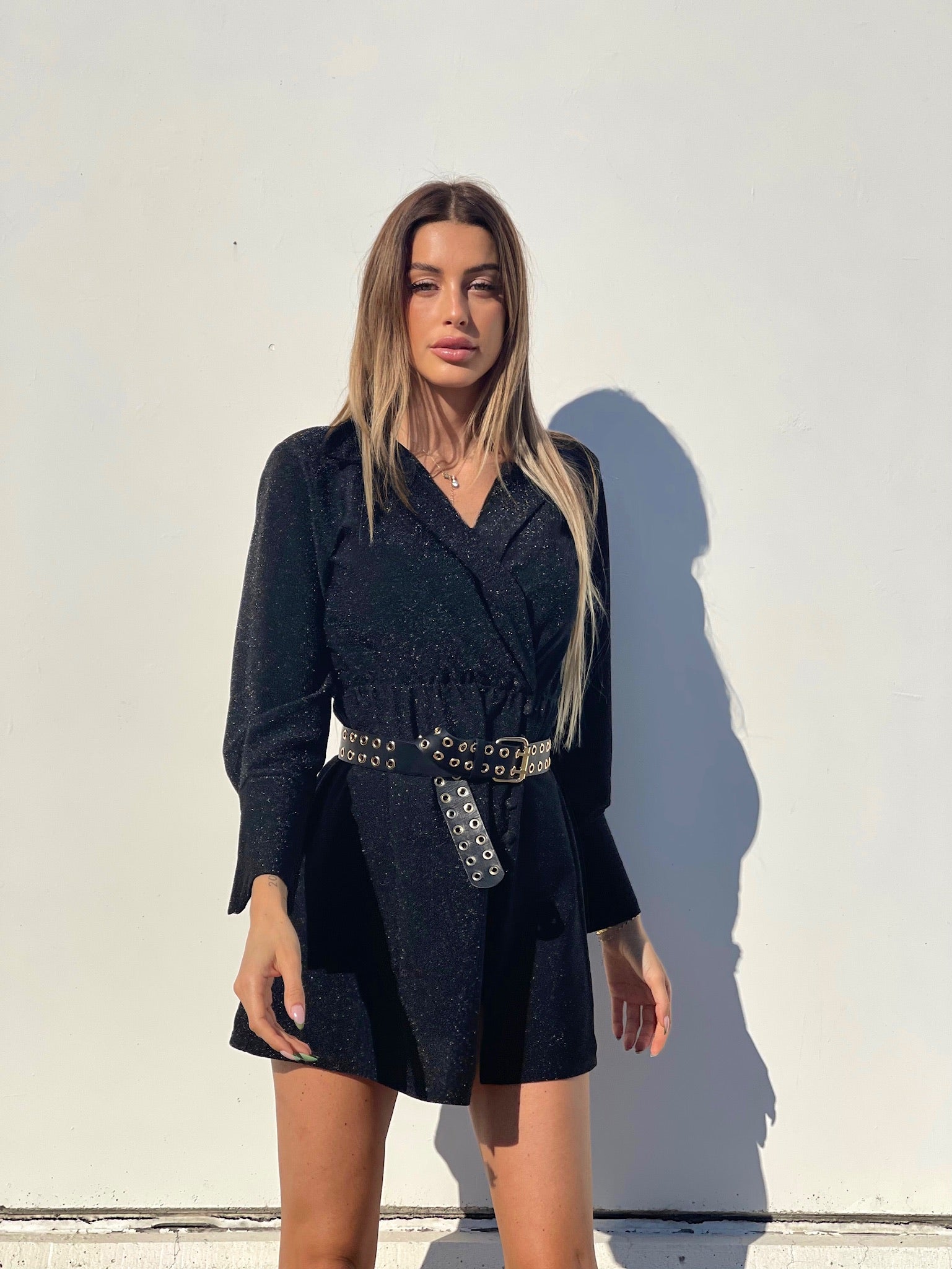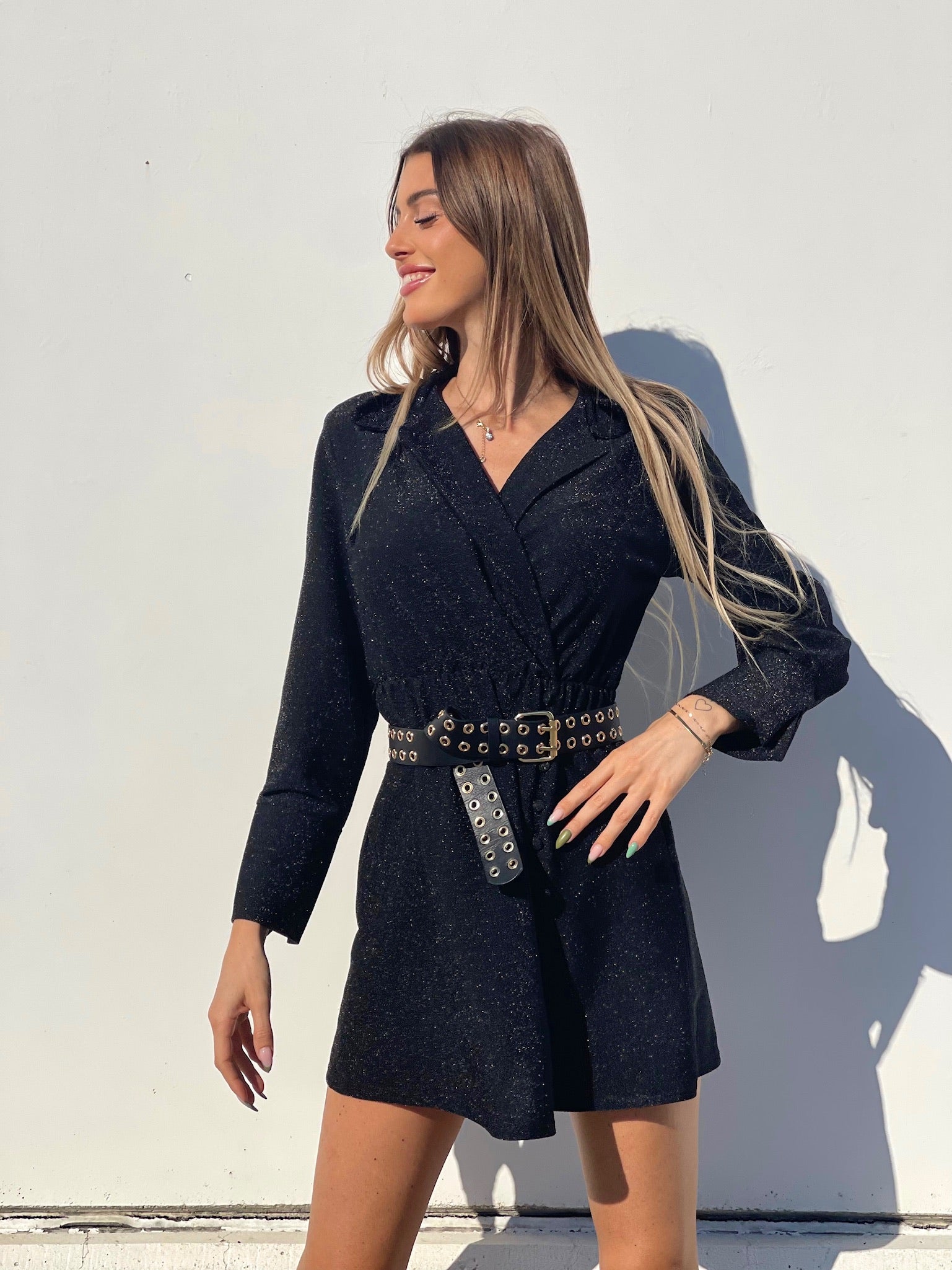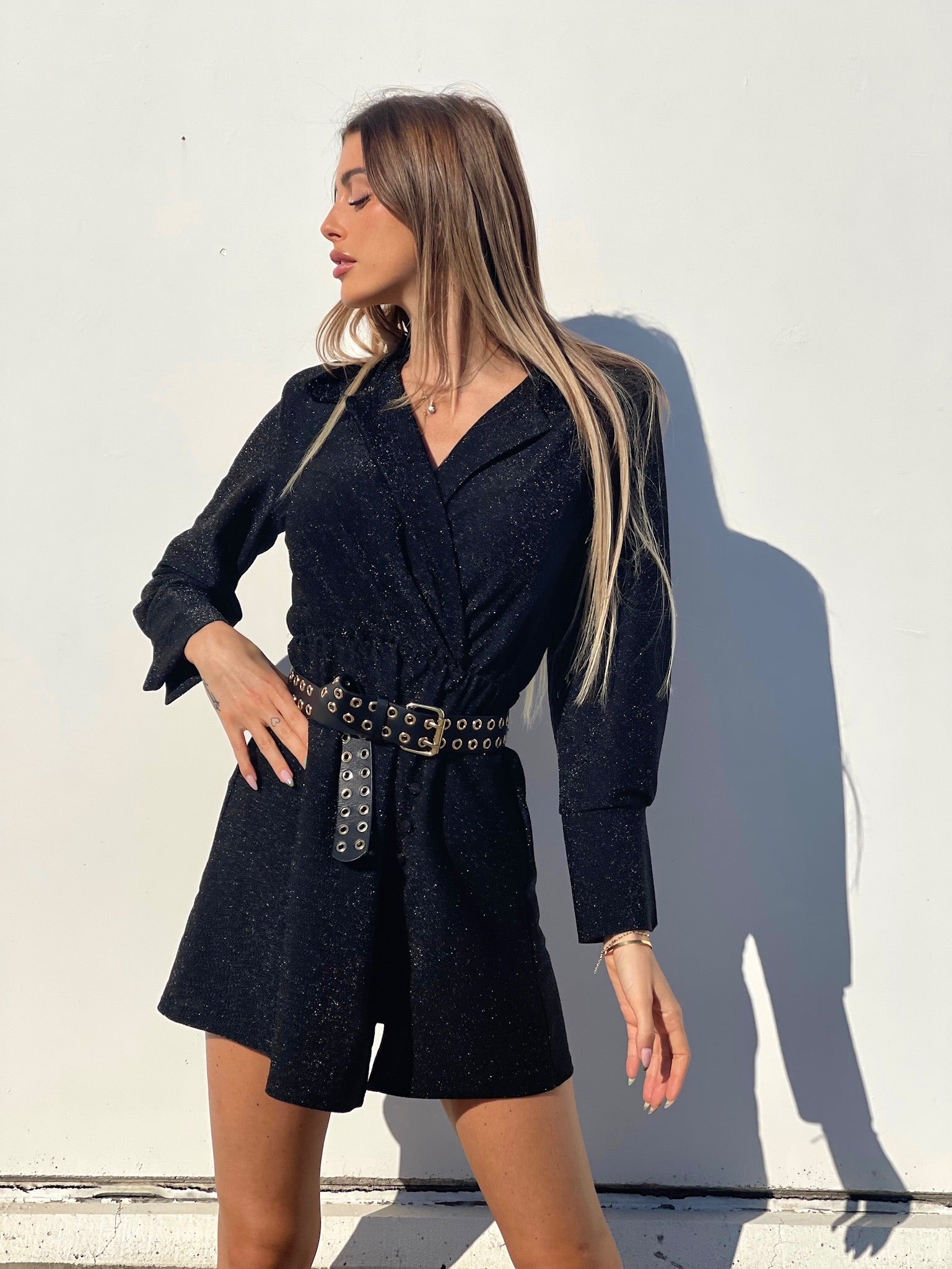 Abito glitter nero con colletto