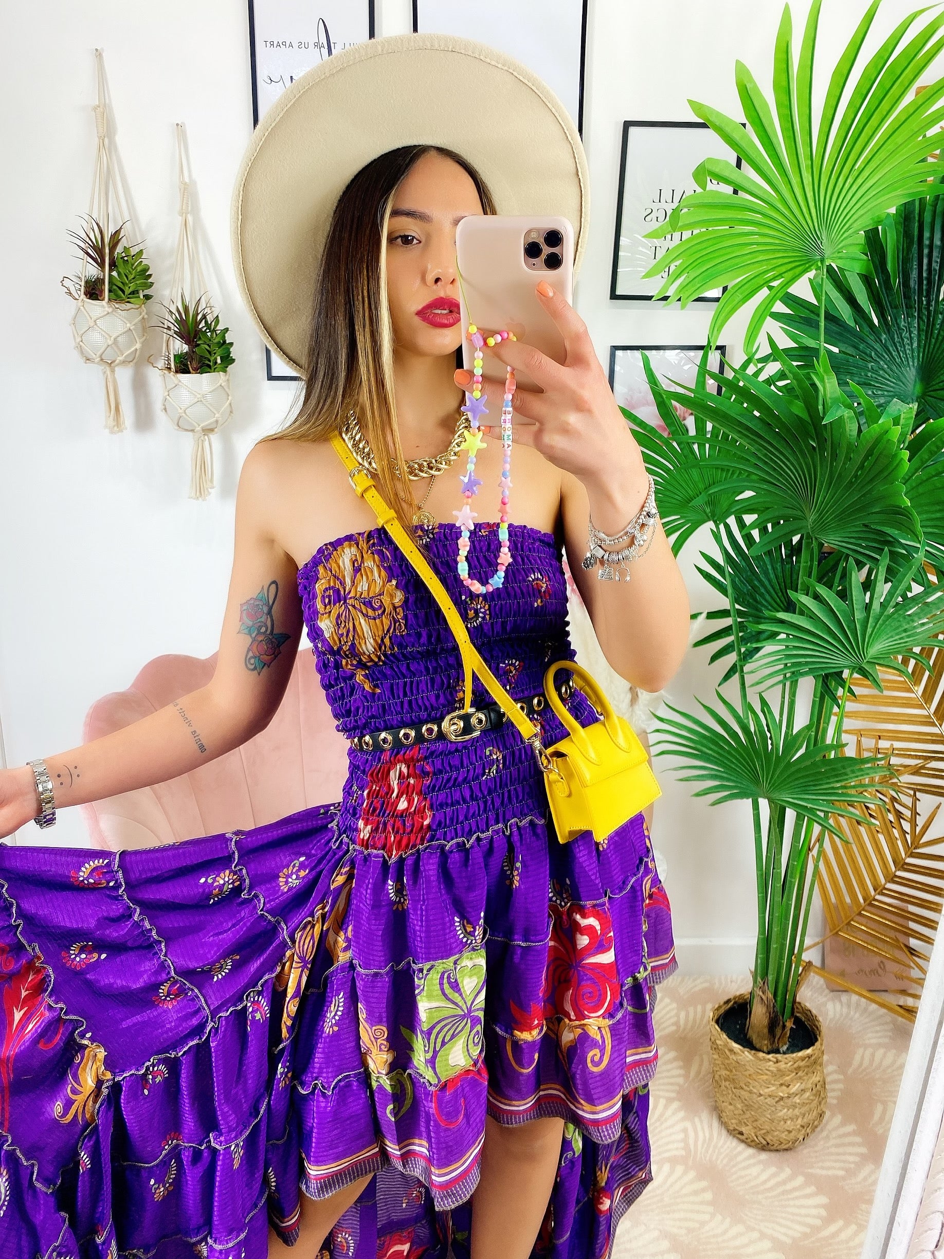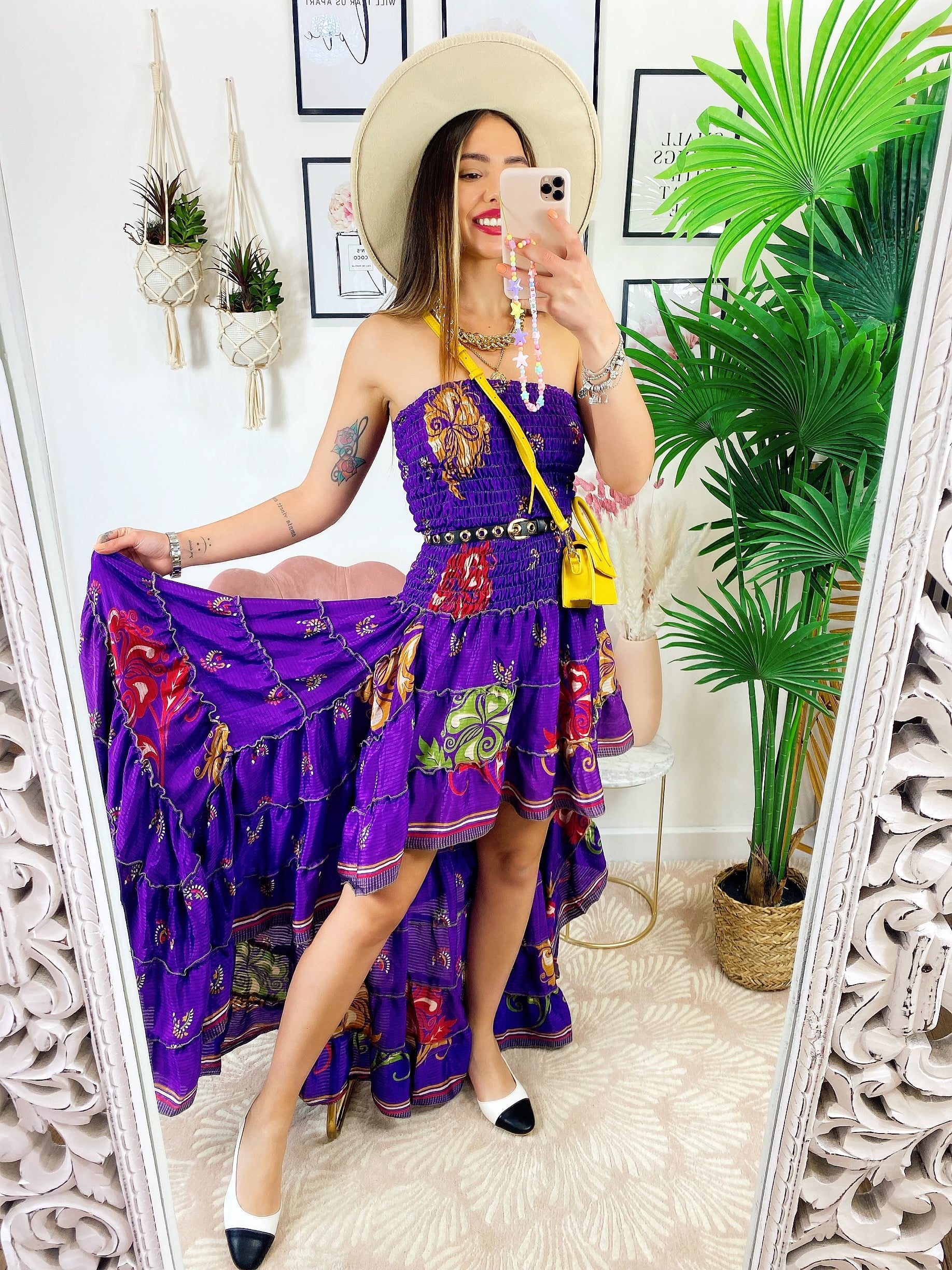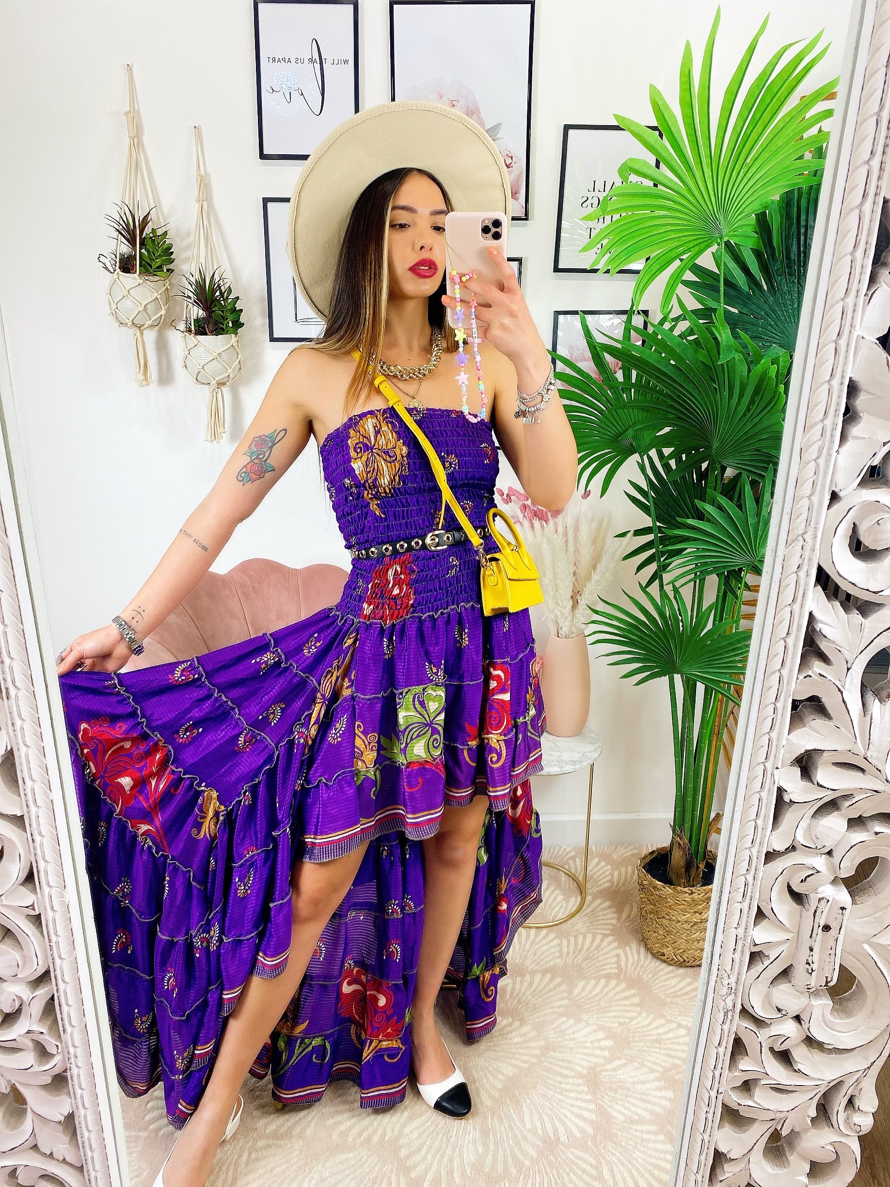 Abito con Gonna asimmetrica Estiva con elastico in vita e sul seno.