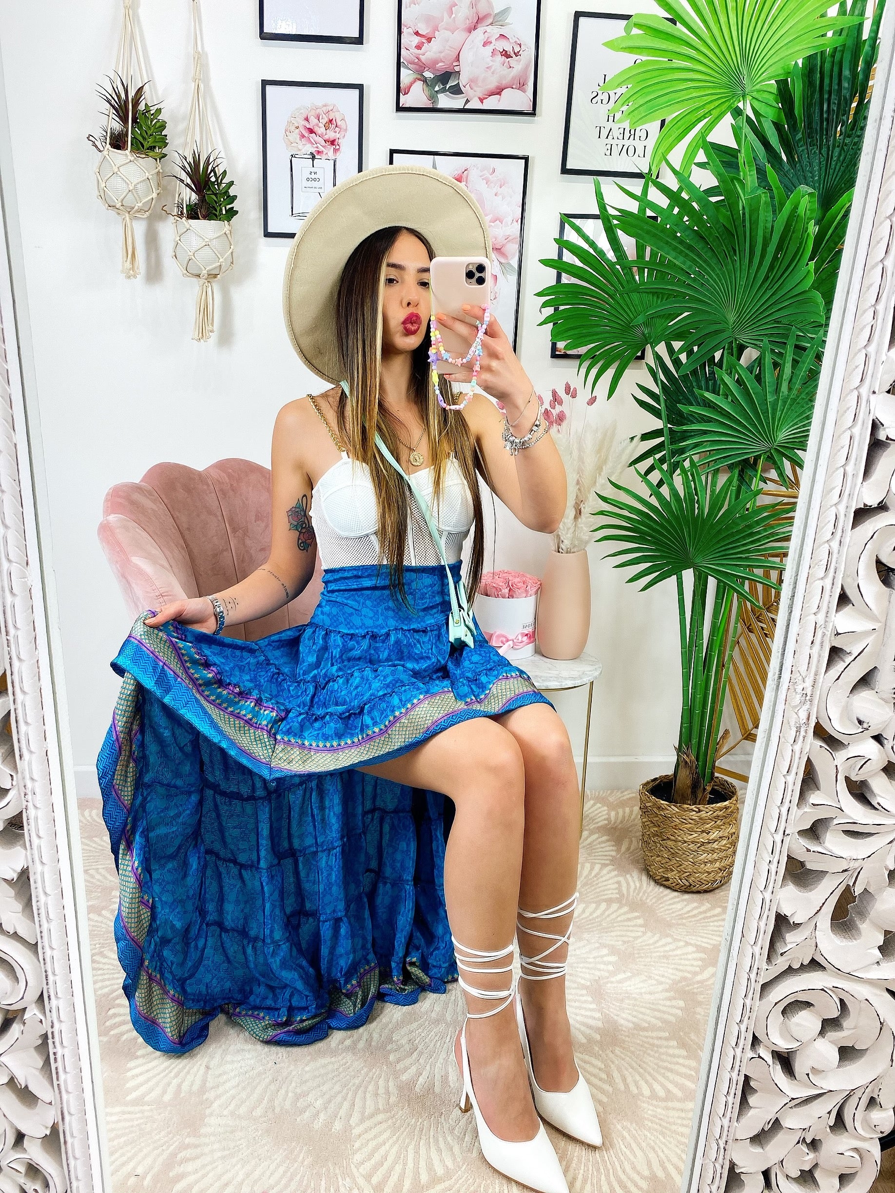 Gonna asimmetrica Estiva con elastico in vita e sul seno.