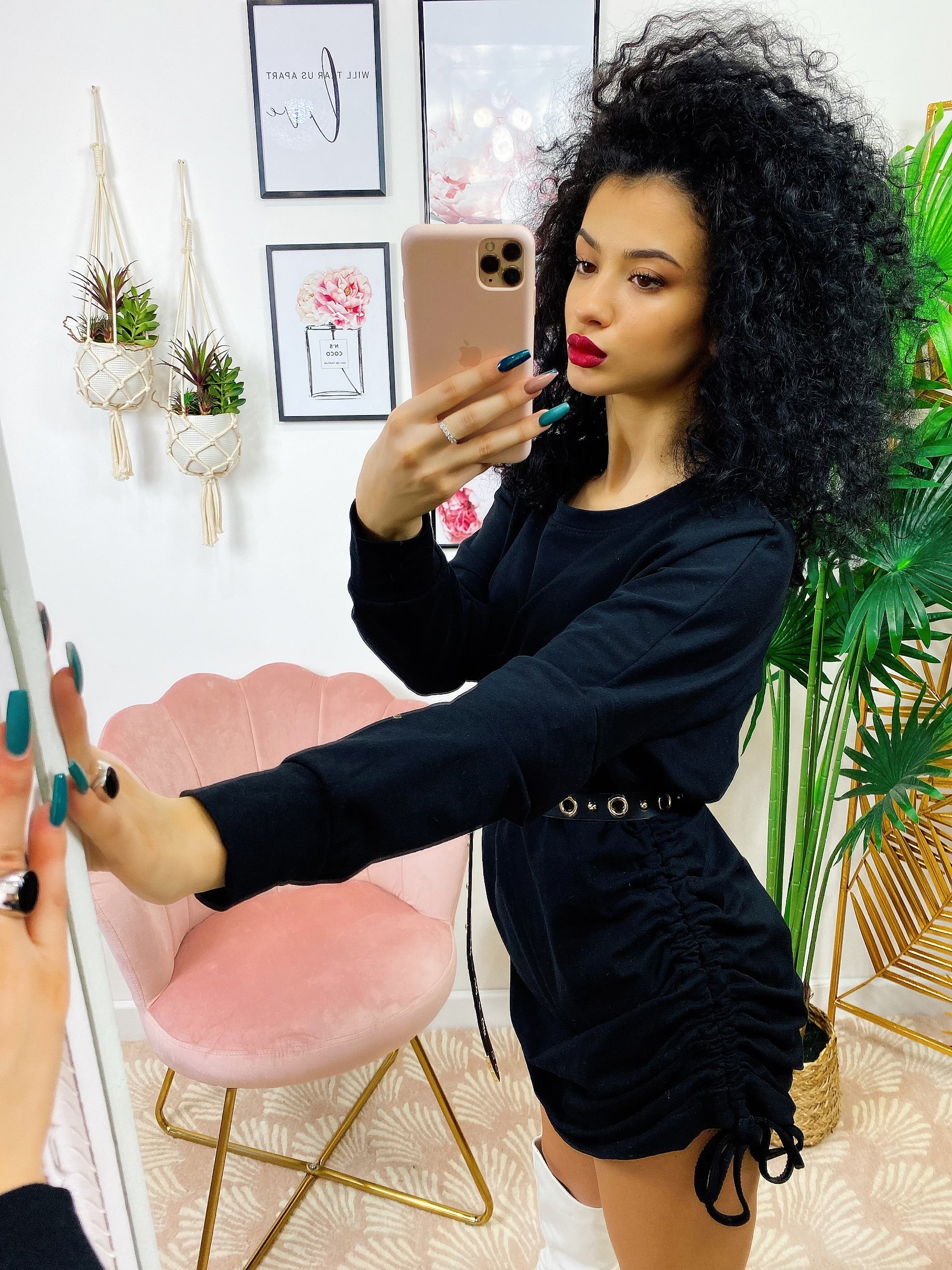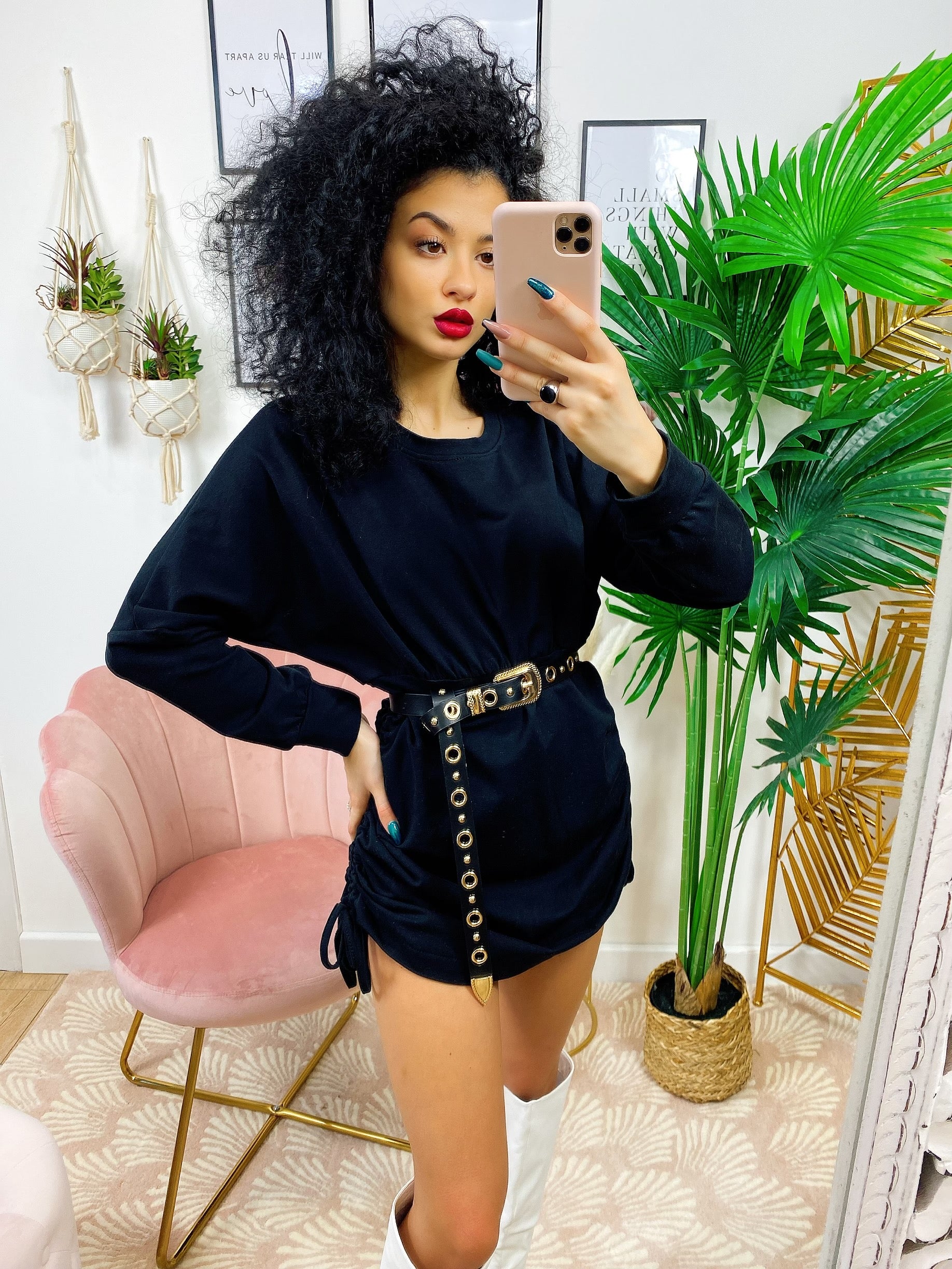 Abito in felpa arricciato sui lati nero