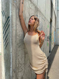 Abito aderente in tessuto elasticizzato con arricciatura e maxi scollo sul dietro. Taglia unica