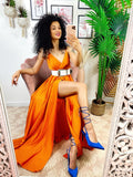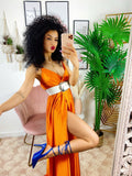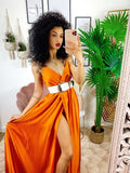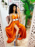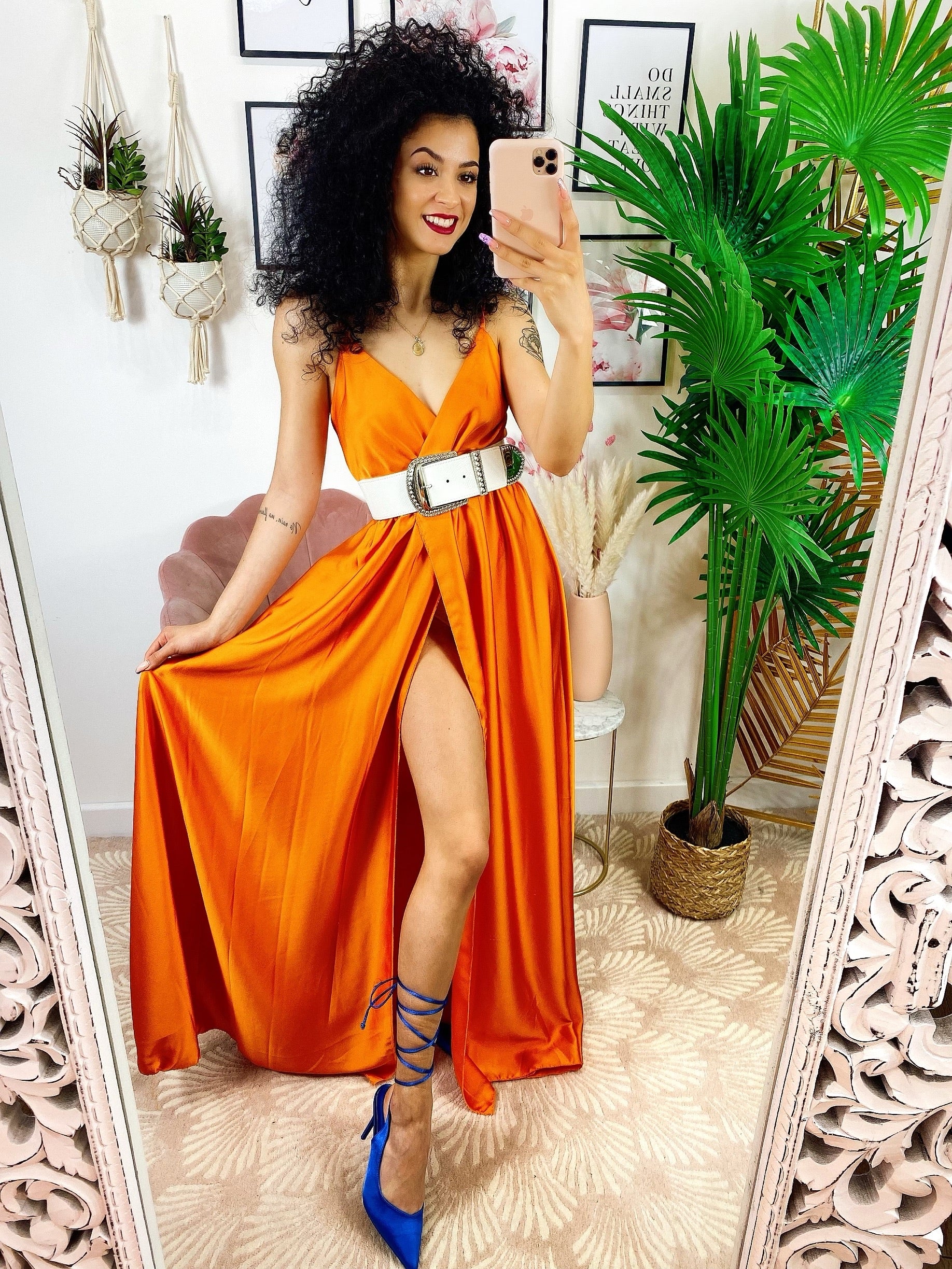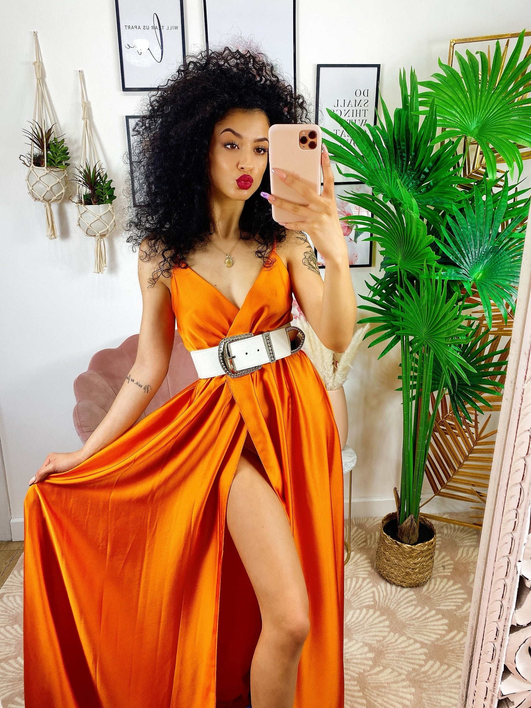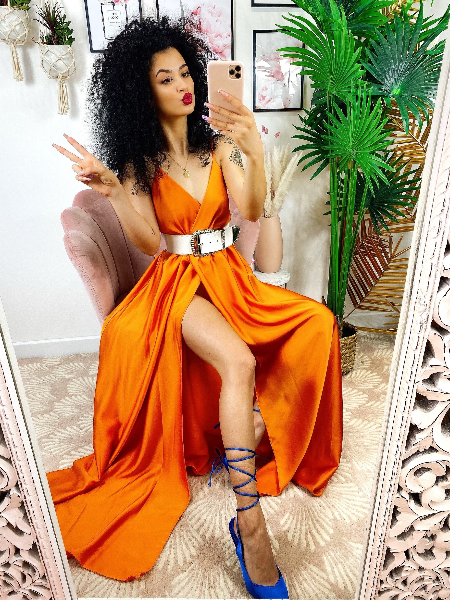 Abito in raso con maxi spacco arancione - R.a. Boutique