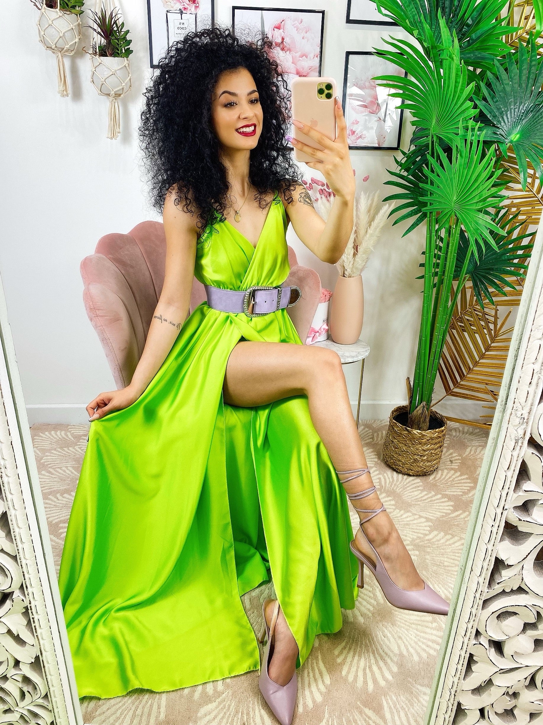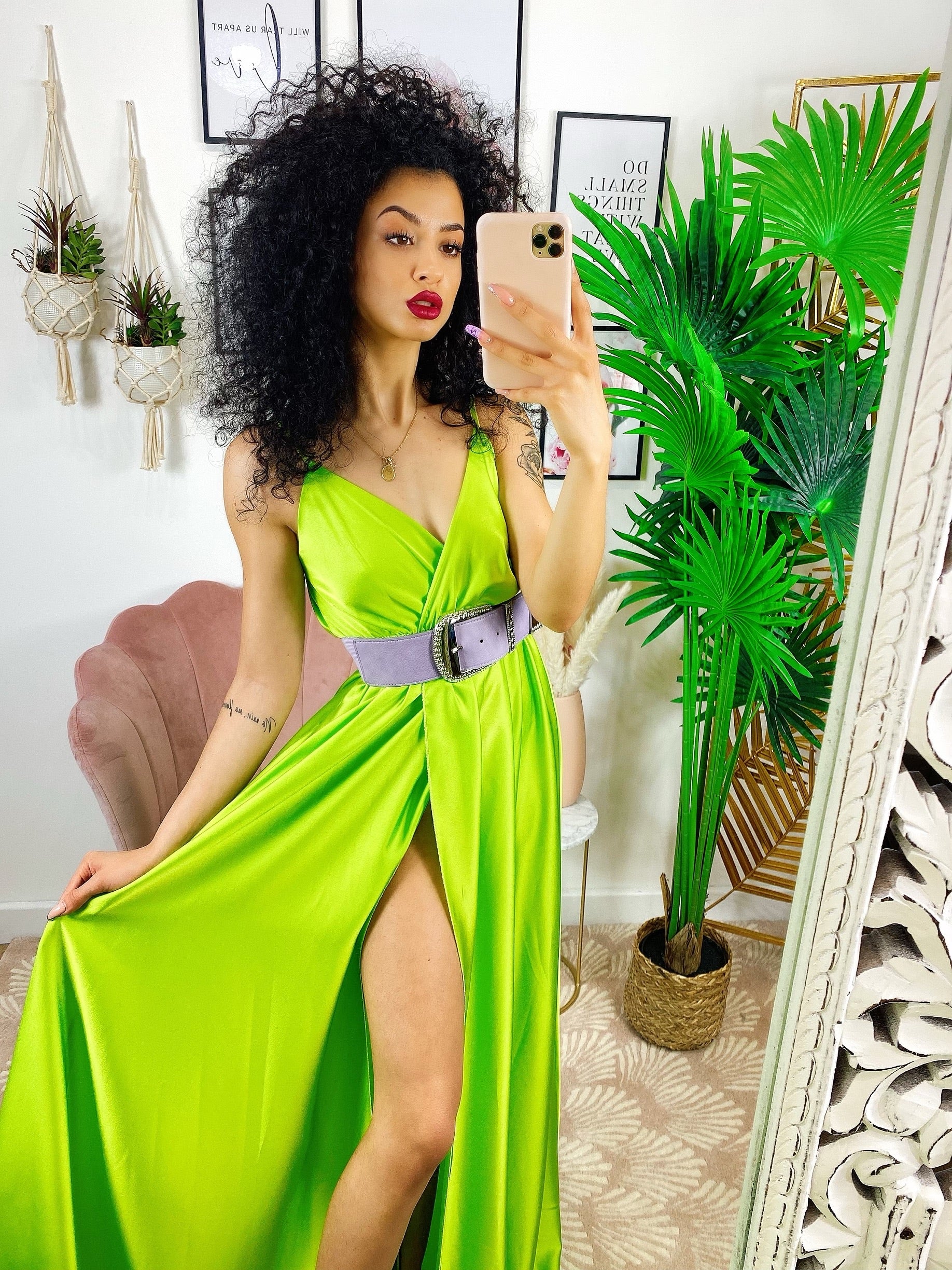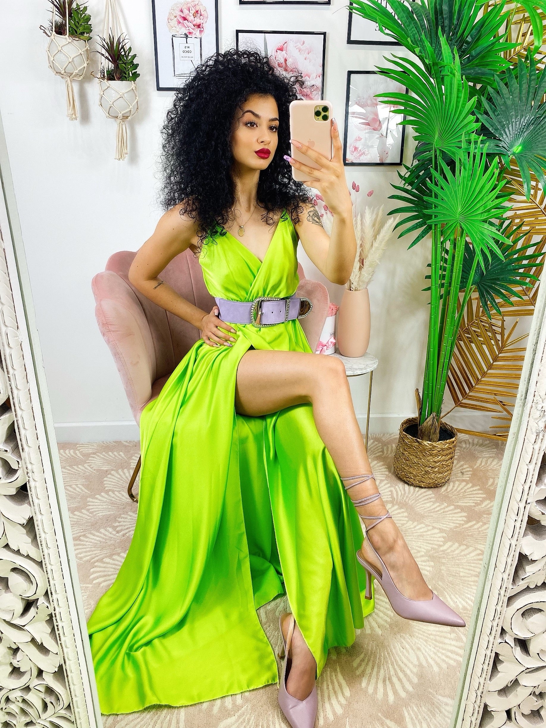 Dress a bretellina in raso di alta qualità con spacco. Fantastico abito molto lungo da indossare con un bel tacco per le serate più glamour. Tira fuori la tua sensualità e voglia di essere donna, sarai la più amata della serata !!