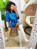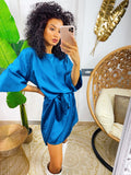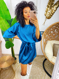 Abito in morbido raso con manica lunga. Chiusura con bottoncini dietro al collo. Abbinalo con un paio di stivali alti o un tacco aperto.