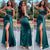 Abito in raso verde bottiglia con drappeggio