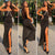 Abito lungo nero in tessuto elasticizzato con dettaglio sul collo con punto luce argento