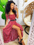 Abito lungo rosso con scollo a barchetta arricciato elasticizzato. Maxi spacco sul davanti. Fresco e comodo sia da giorno che da sera con una cinturina.