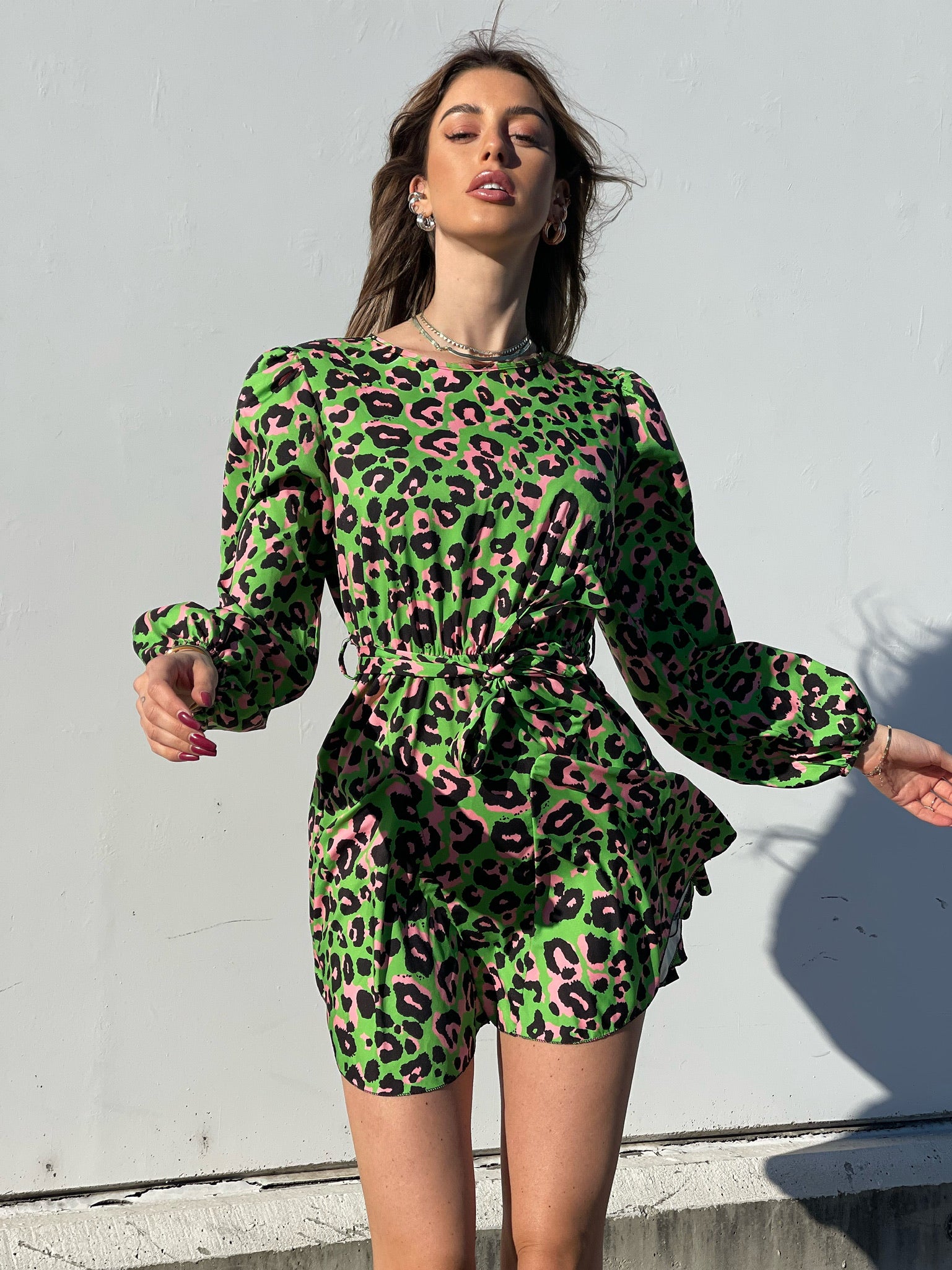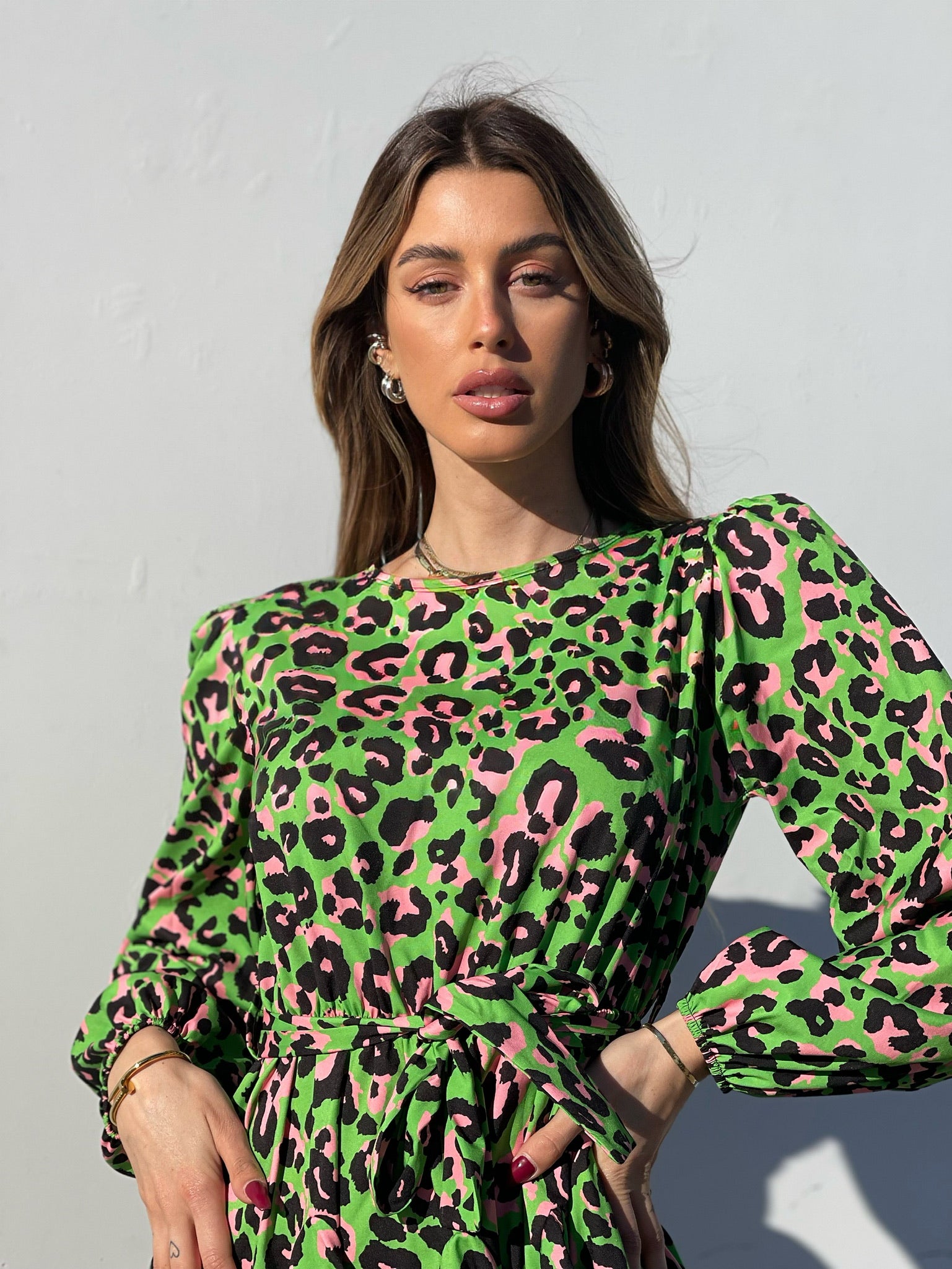 Abito maculato verde e rosa