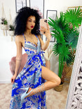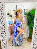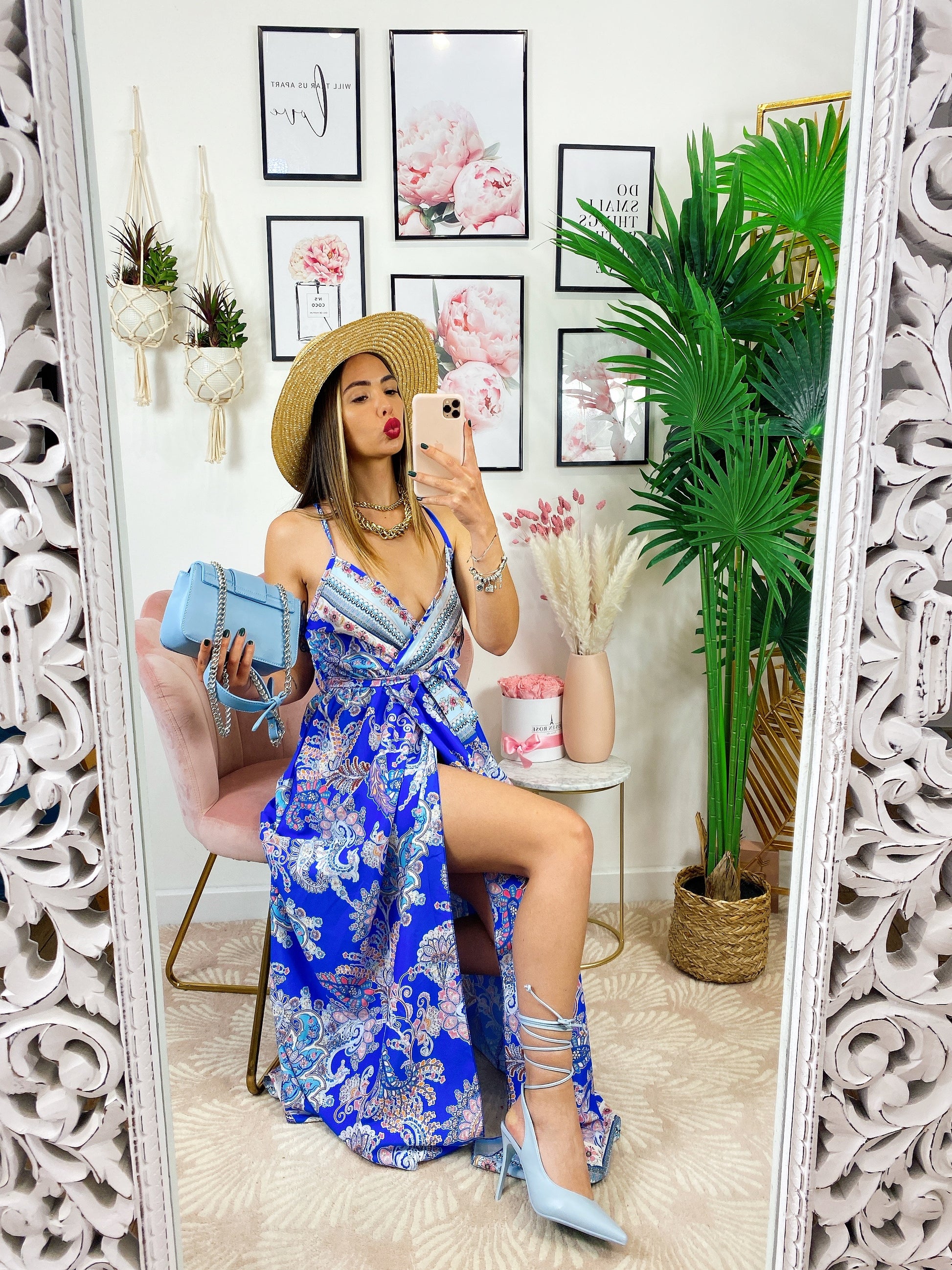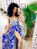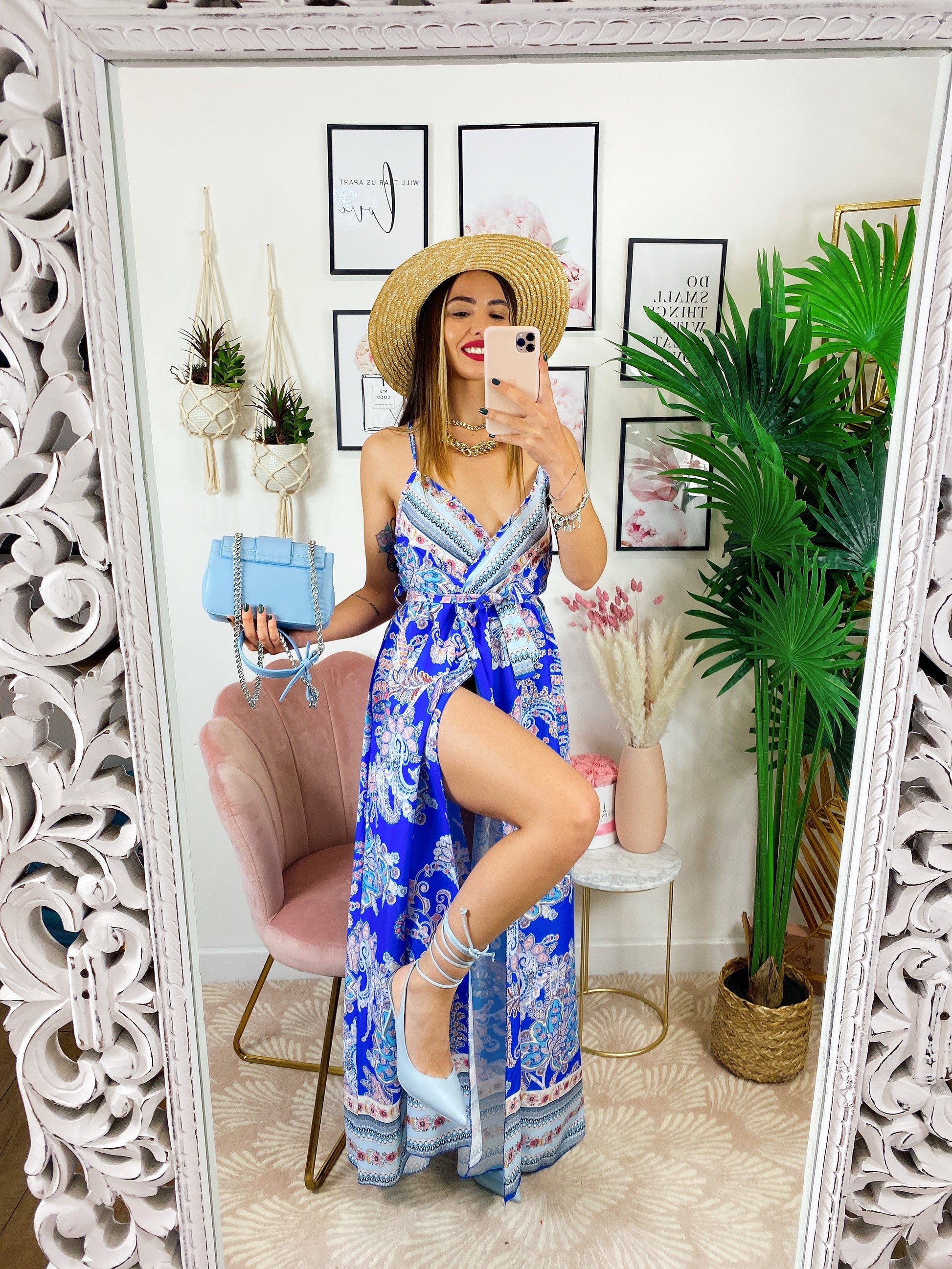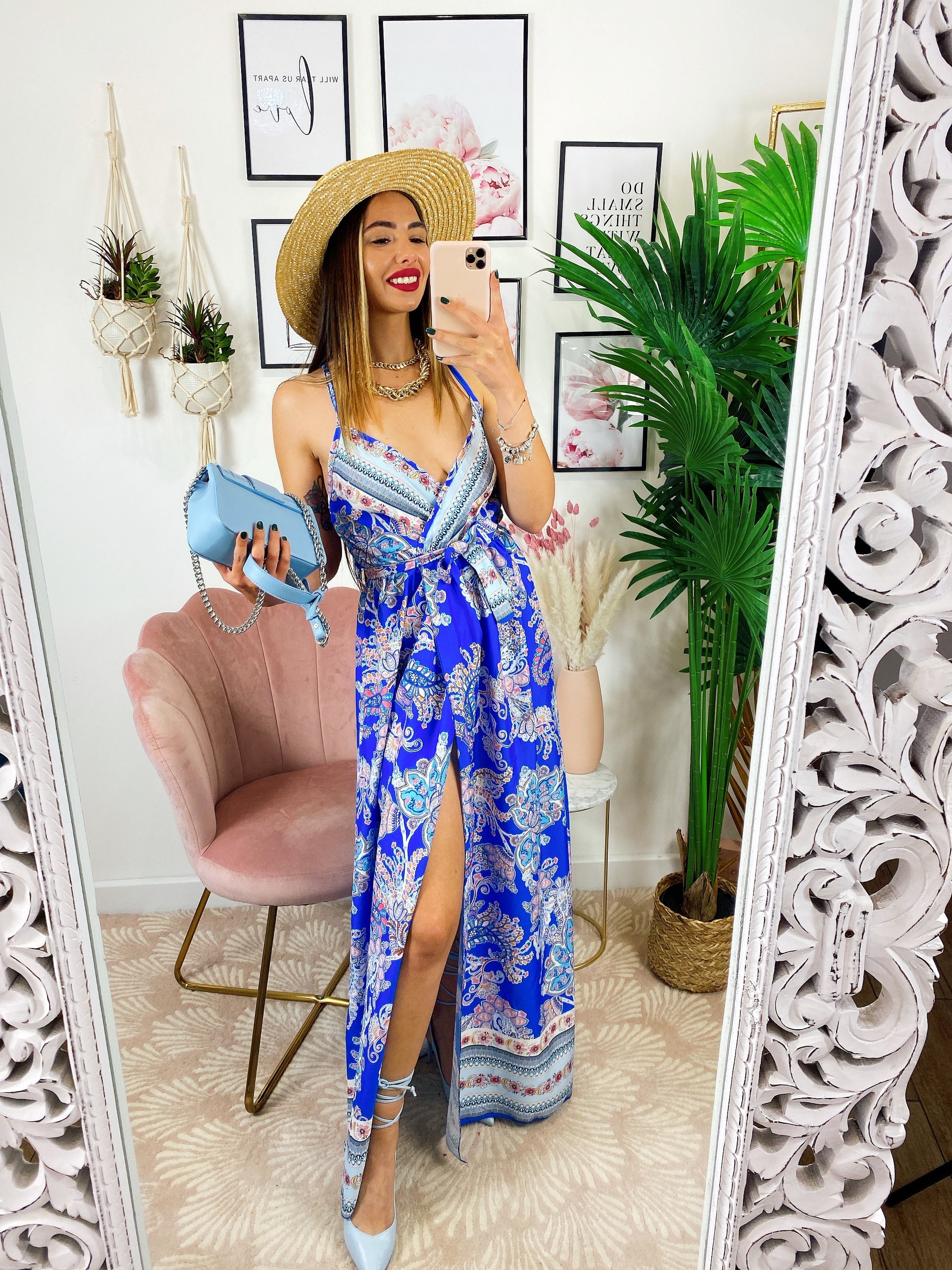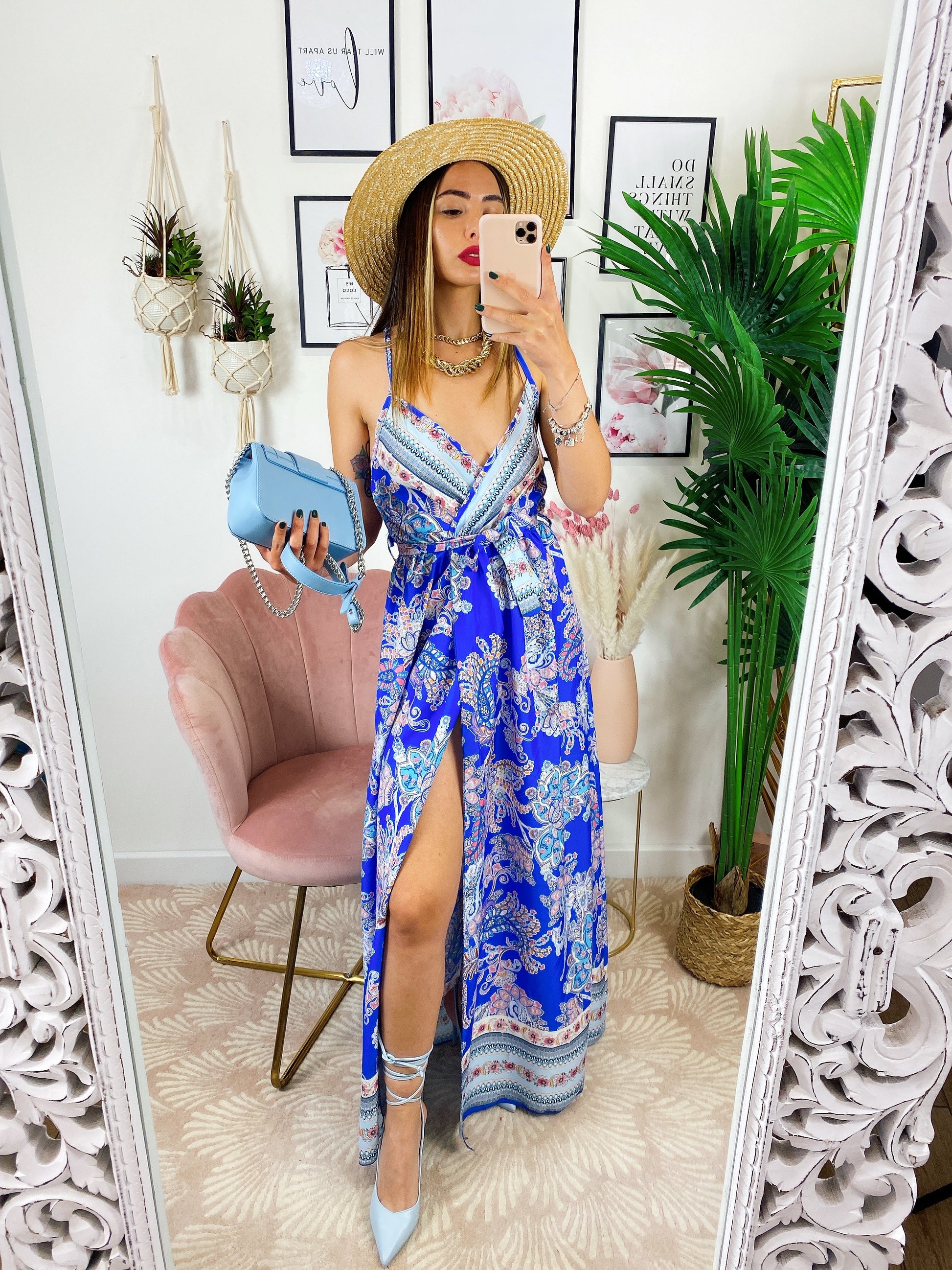 Abito maxi spacco fantasia blu - R.a. Boutique