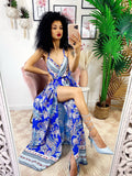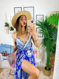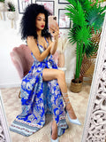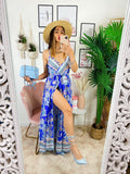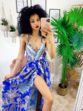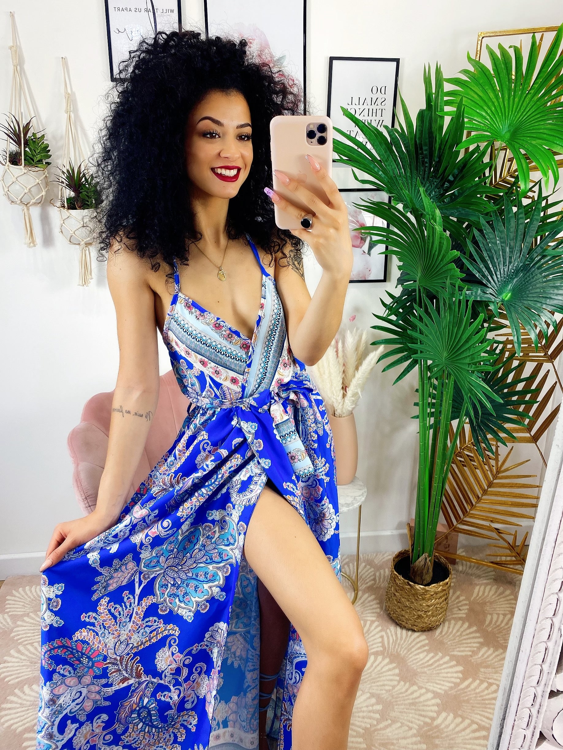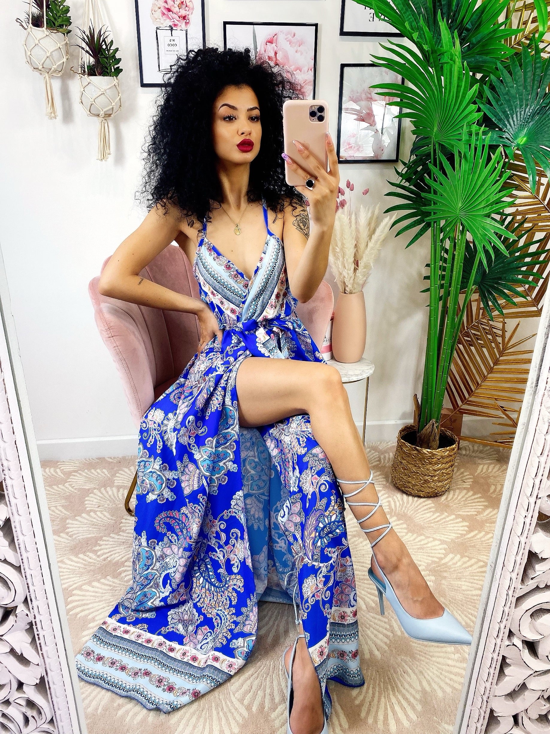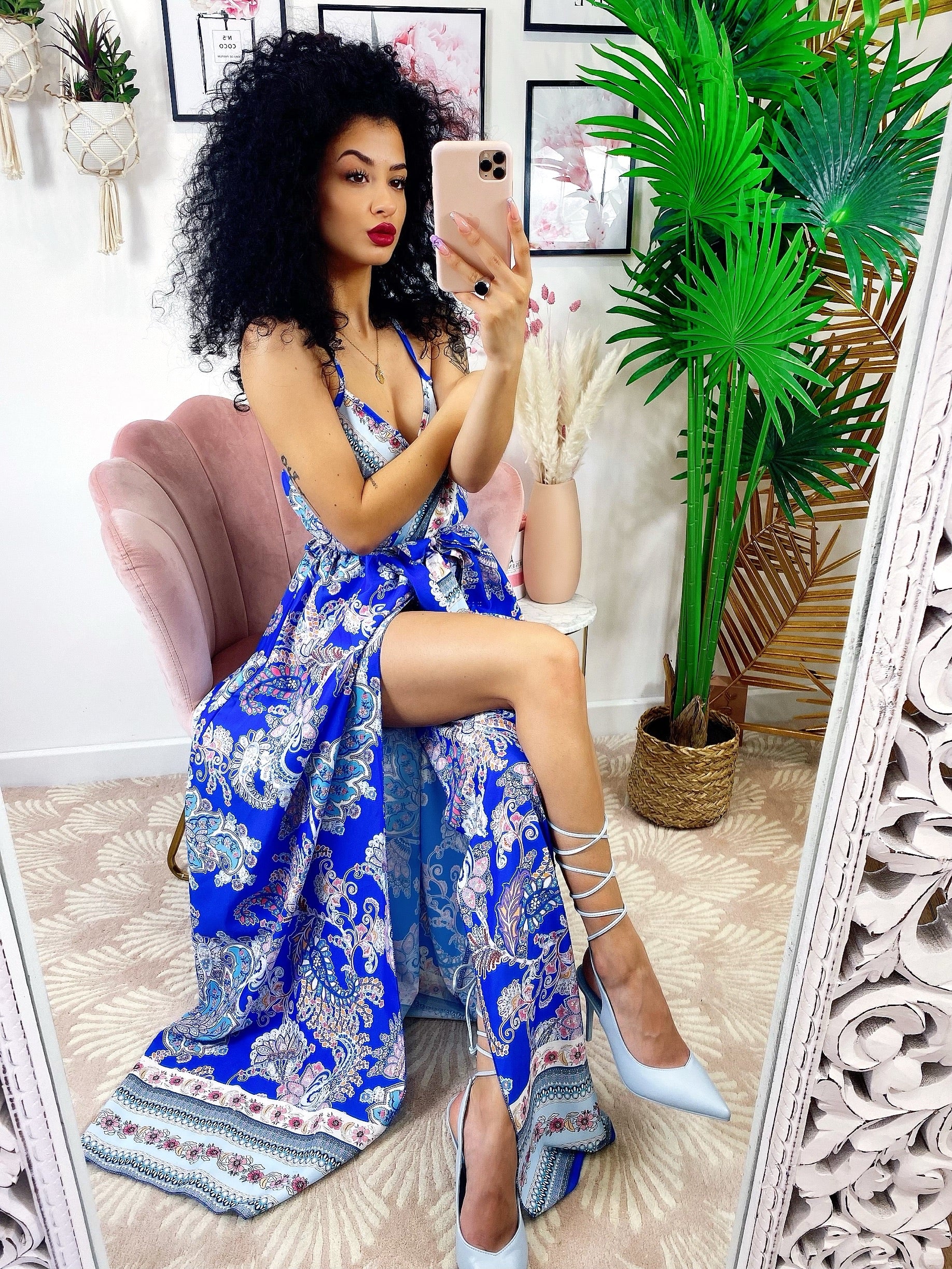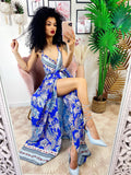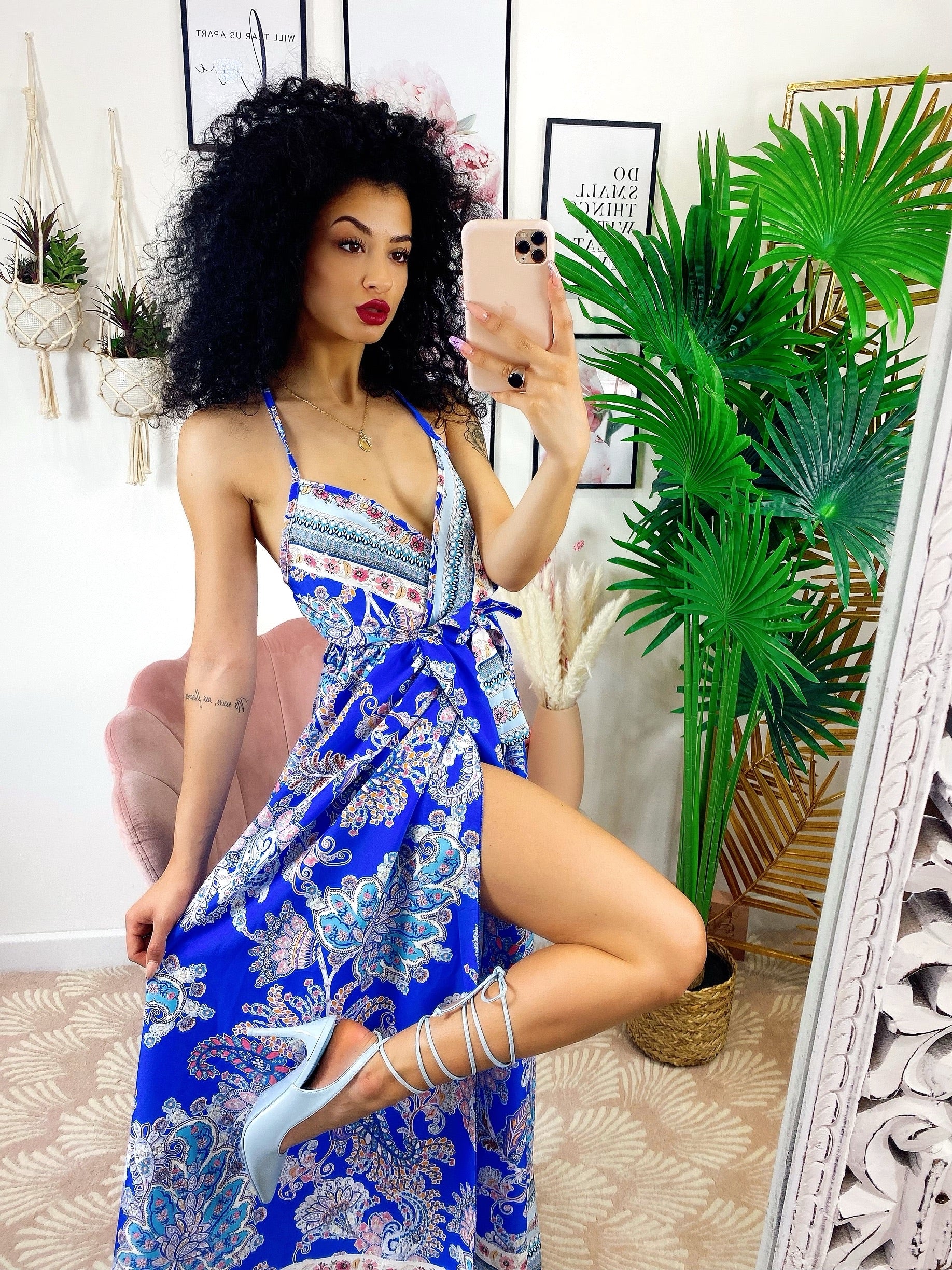 Abito maxi spacco fantasia blu - R.a. Boutique