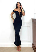 Abito in lycra aderente e elasticizzato con scollo a barchetta con coppe e scollo a U con accessorio