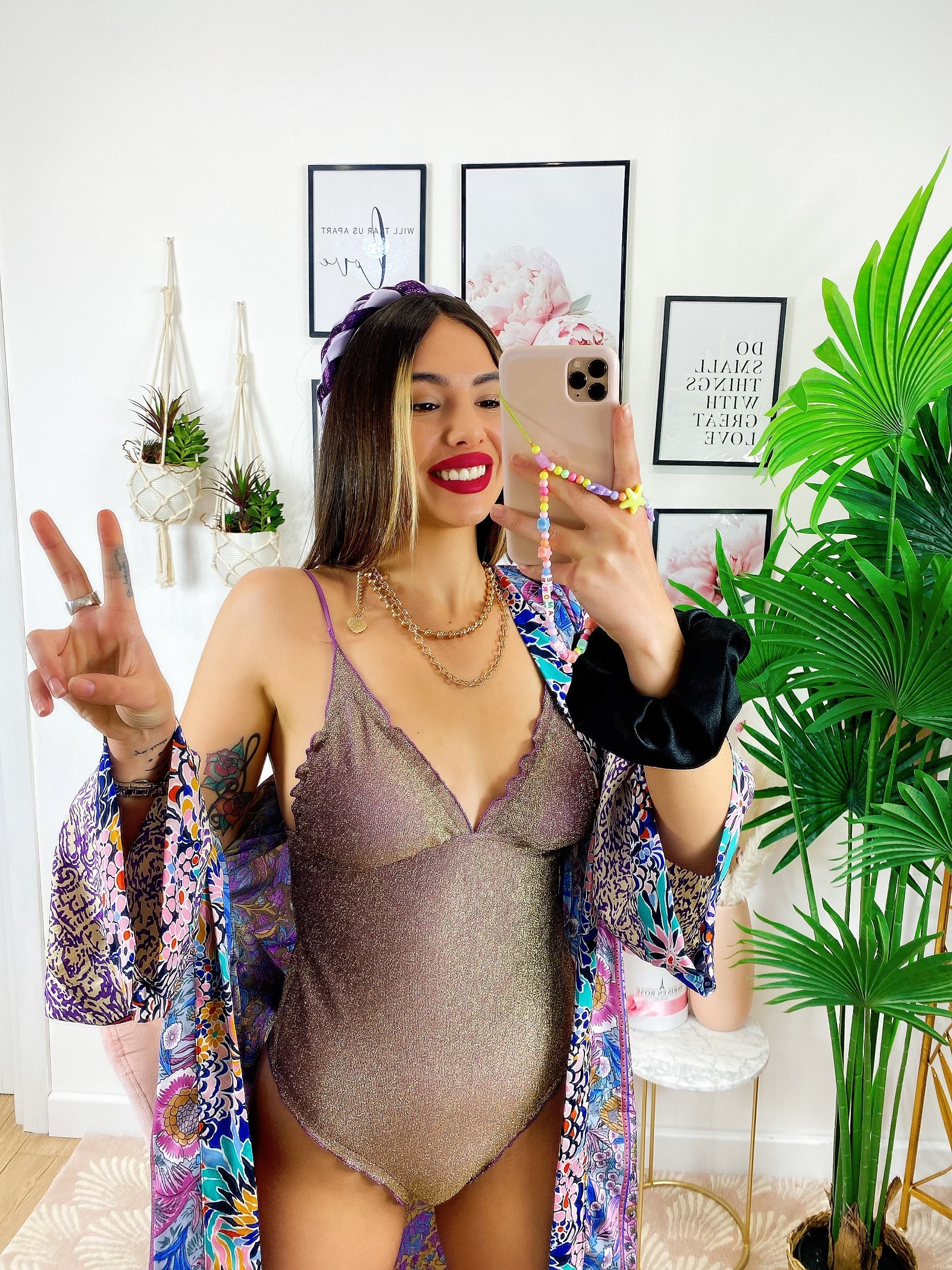 Bikini intero glitter con arricciature , comodo, elasticizzato, ottima qualità