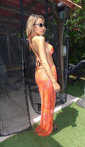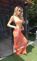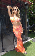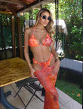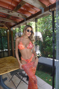 Bikini tre pezzi, top senza coppe , gonna in velo e mutande regolabili.