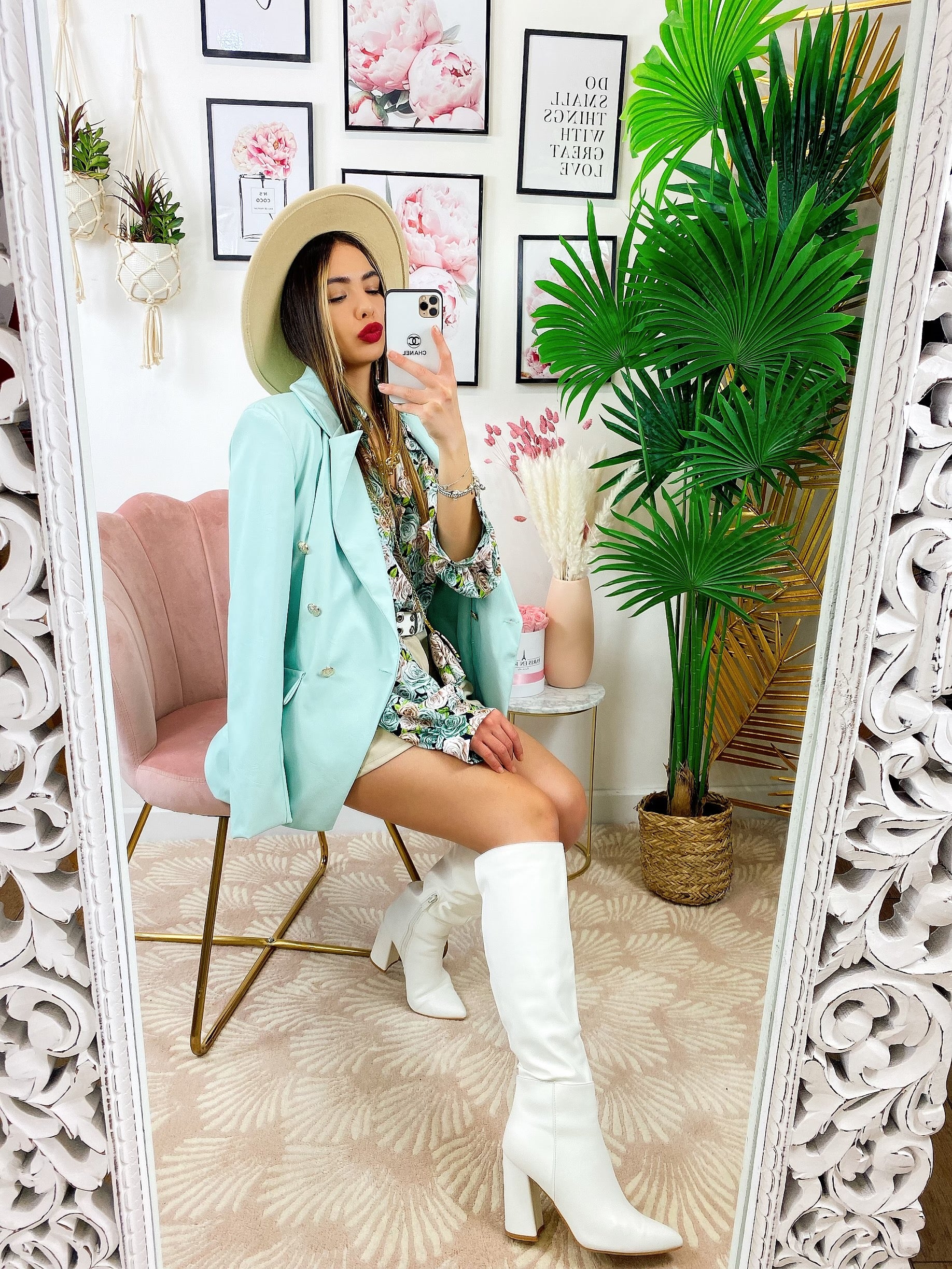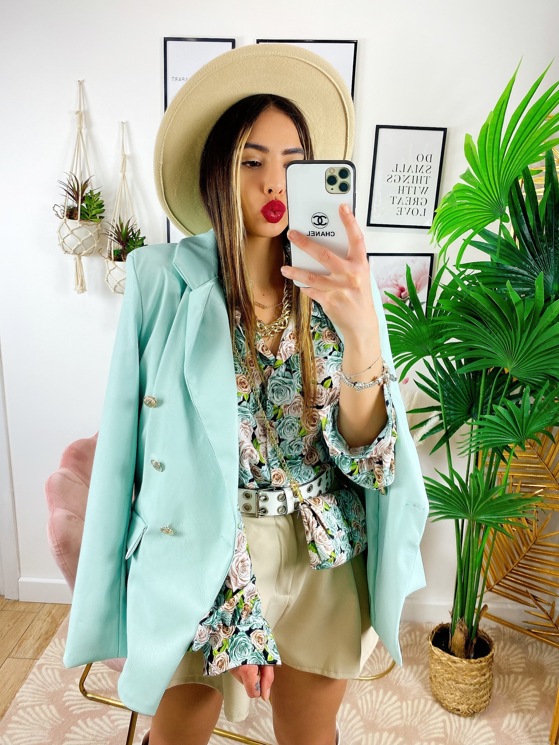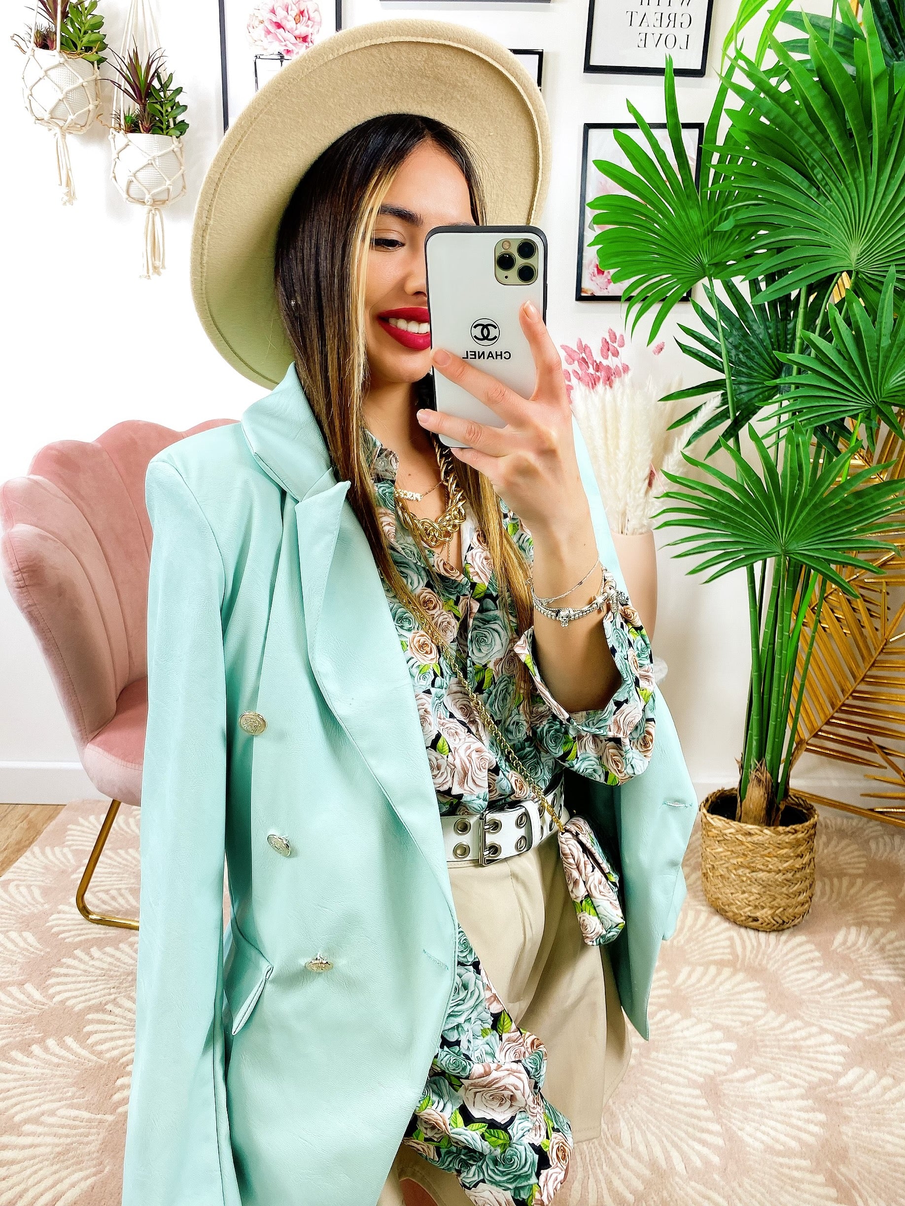Blazer in ecopelle tiffany Con bottoni e tasche.