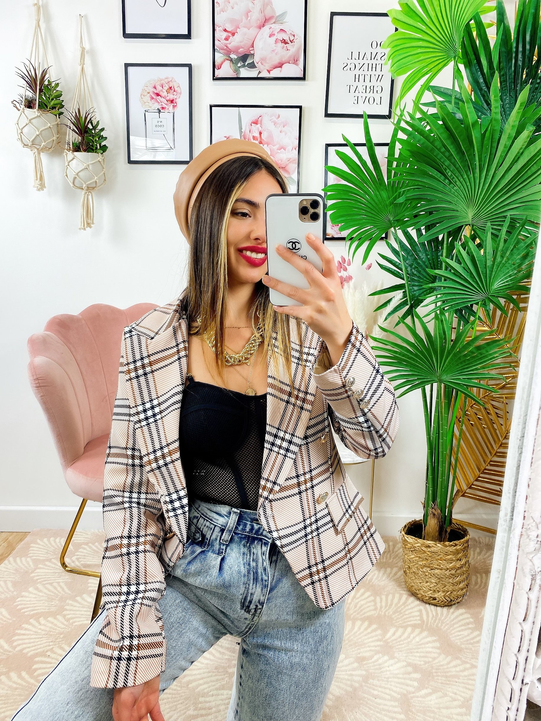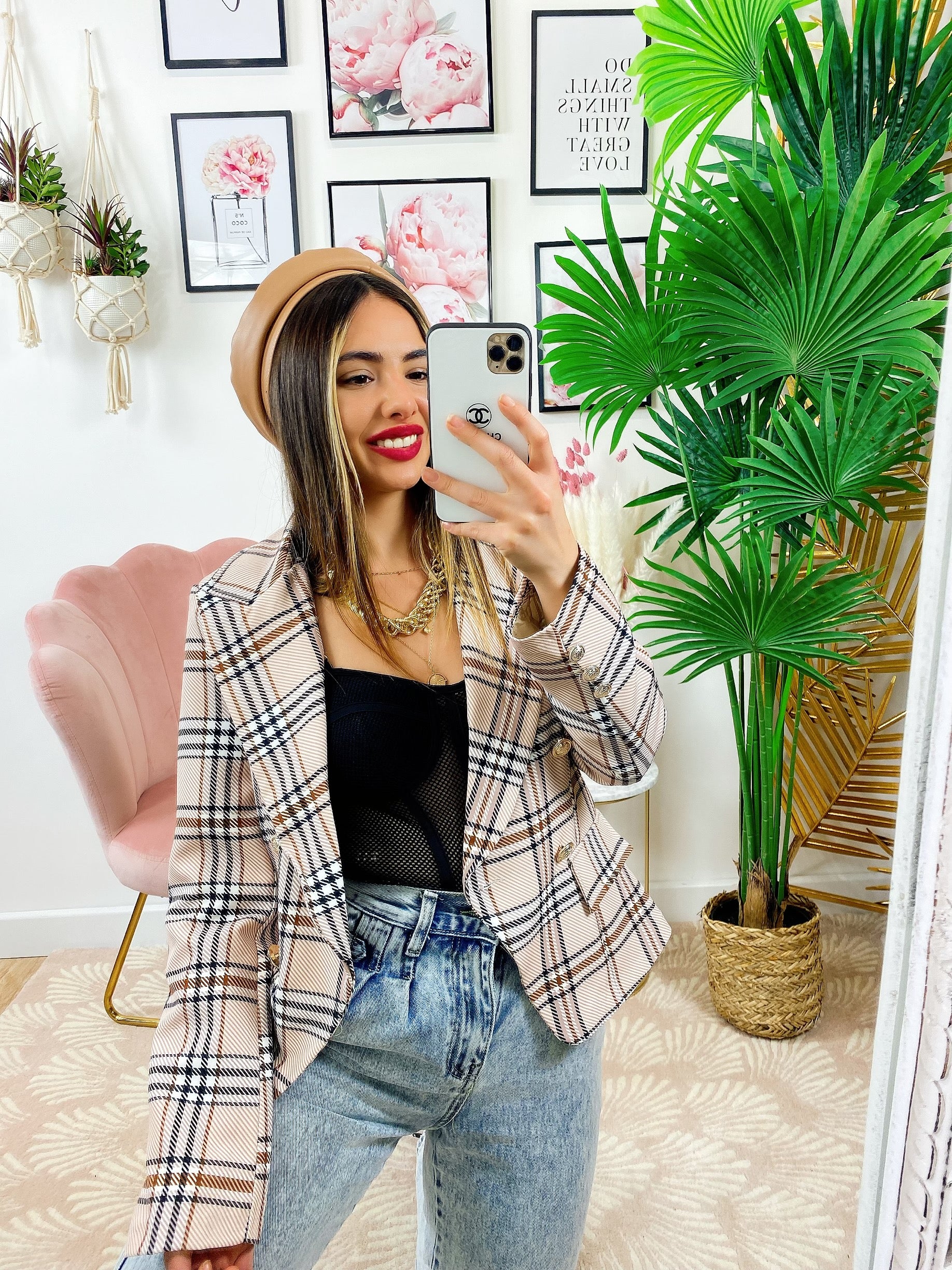 Giacca check foderata con bottoni oro. Vestibilità regolare